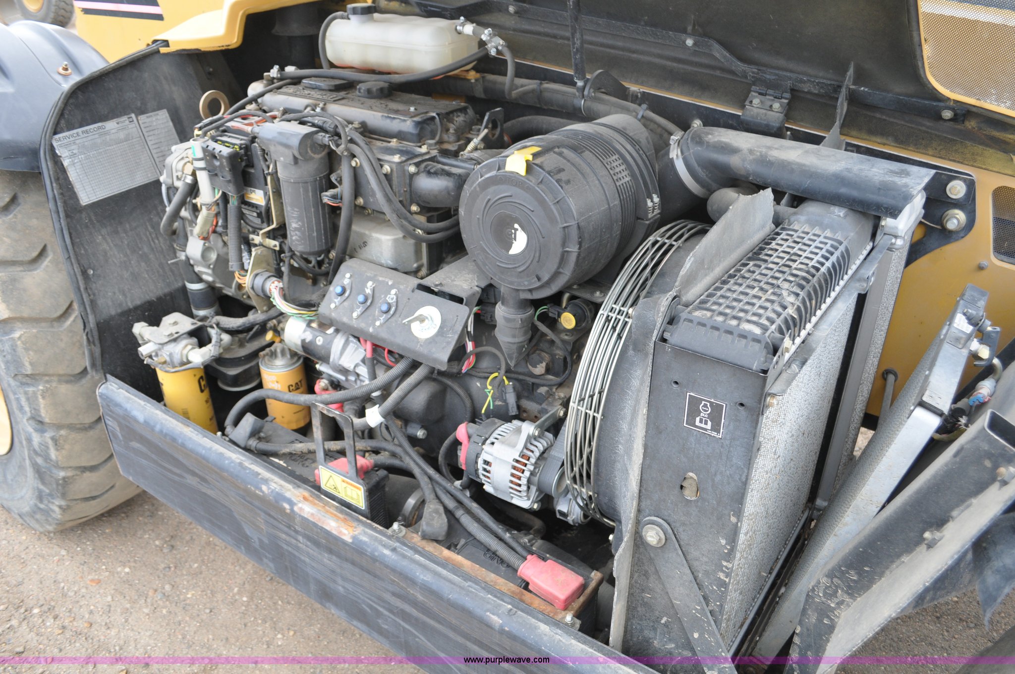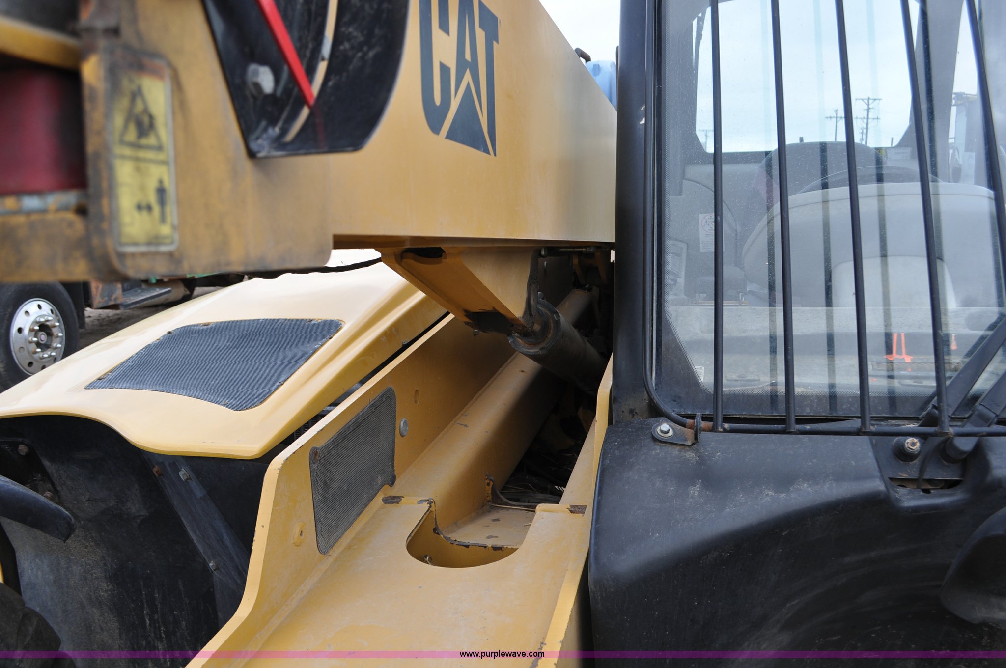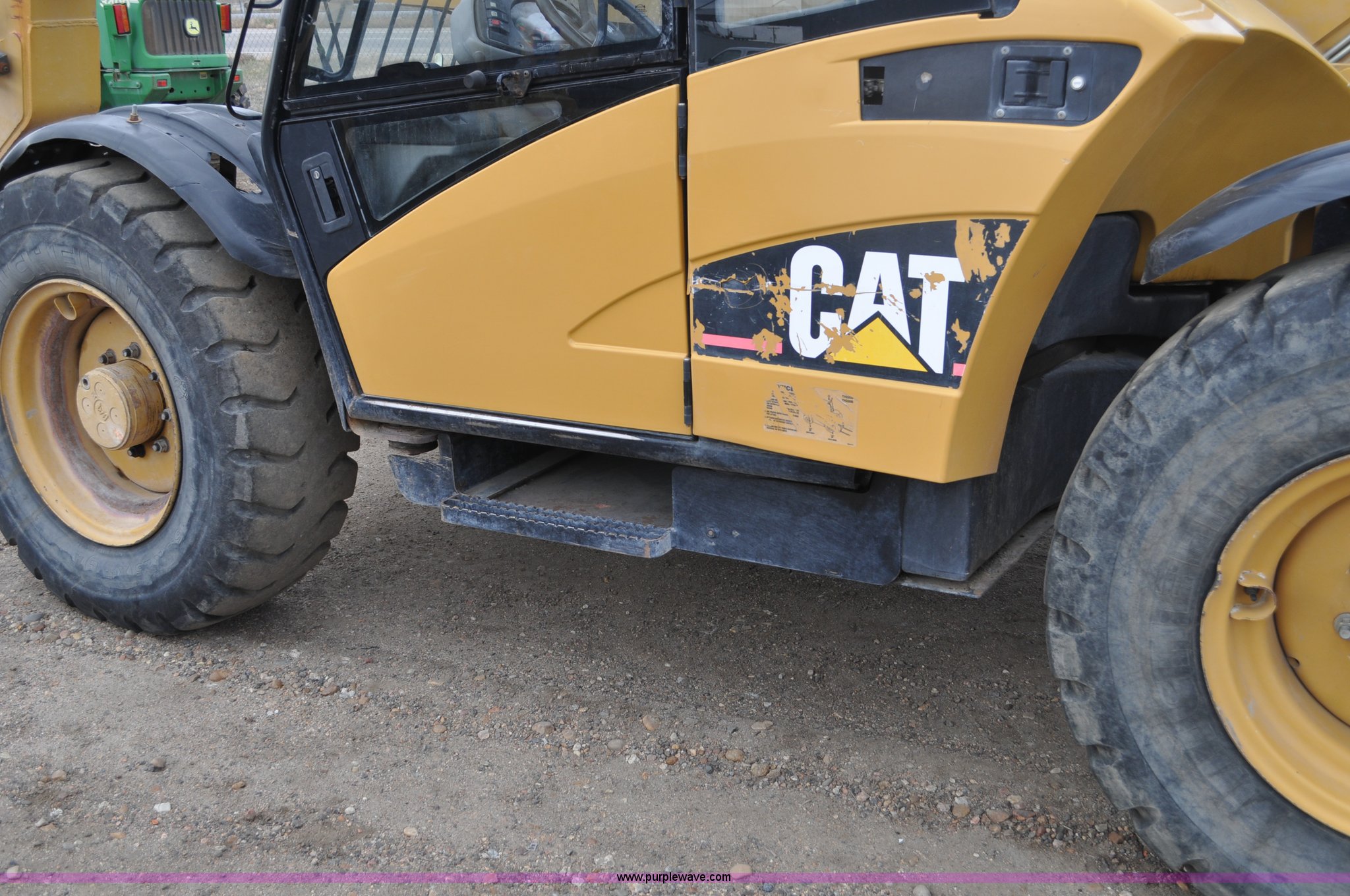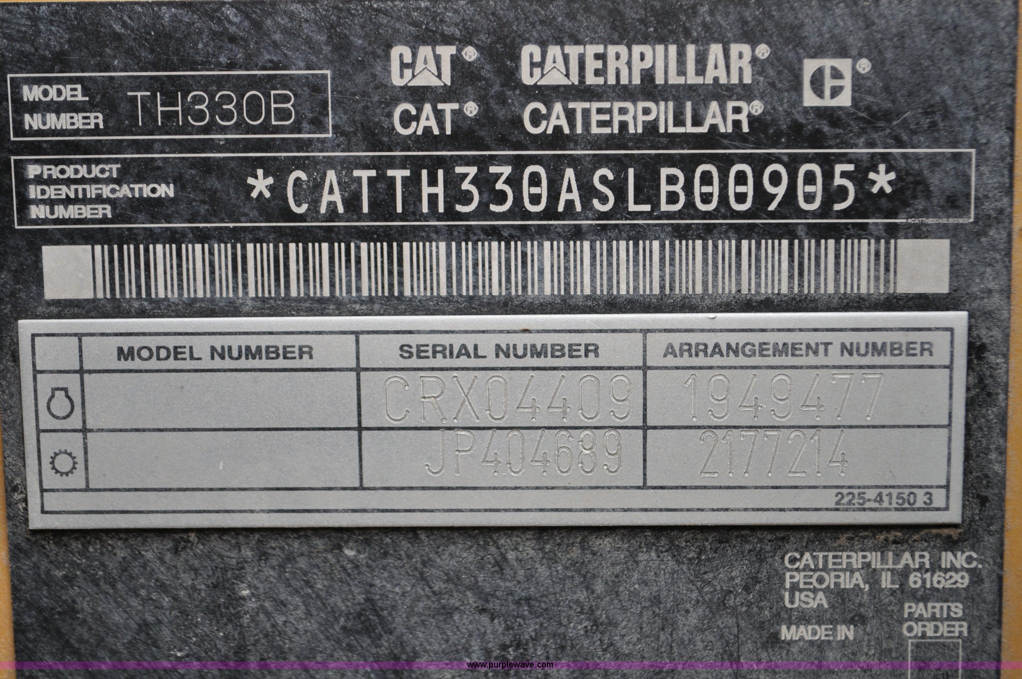 Purple Wave is selling a used Telehandler in Colorado. This item is a 2005 Caterpillar TH330B telehandler with the following: 9,353 hours on meter, Caterpillar 3054E four cylinder diesel engine, 99 HP, Serial CRX04409, Powershift transmission, 4F-3R gears, Four wheel drive, Differential lock, Crab steer, Circle steer, Enclosed cab, AC and heat, Air suspension seat, 7,000 lbs lift capacity, 12.5'L reach, Auxiliary hydraulics, Hydraux manlift, Quick attach, 1,000 lbs capacity, Hydraulic angle, 4' x 10" basket, Bale forks, 26 gallon fuel tank, 15.5x25 tires, 15,476 lbs. base operating weight, Bucket is not included, Serial CATTH330ASLB00905