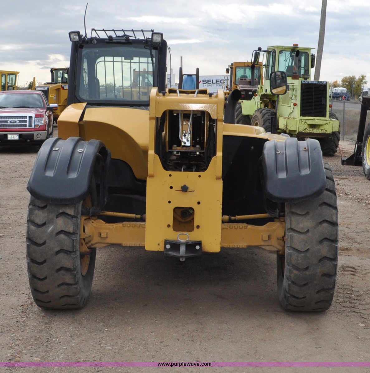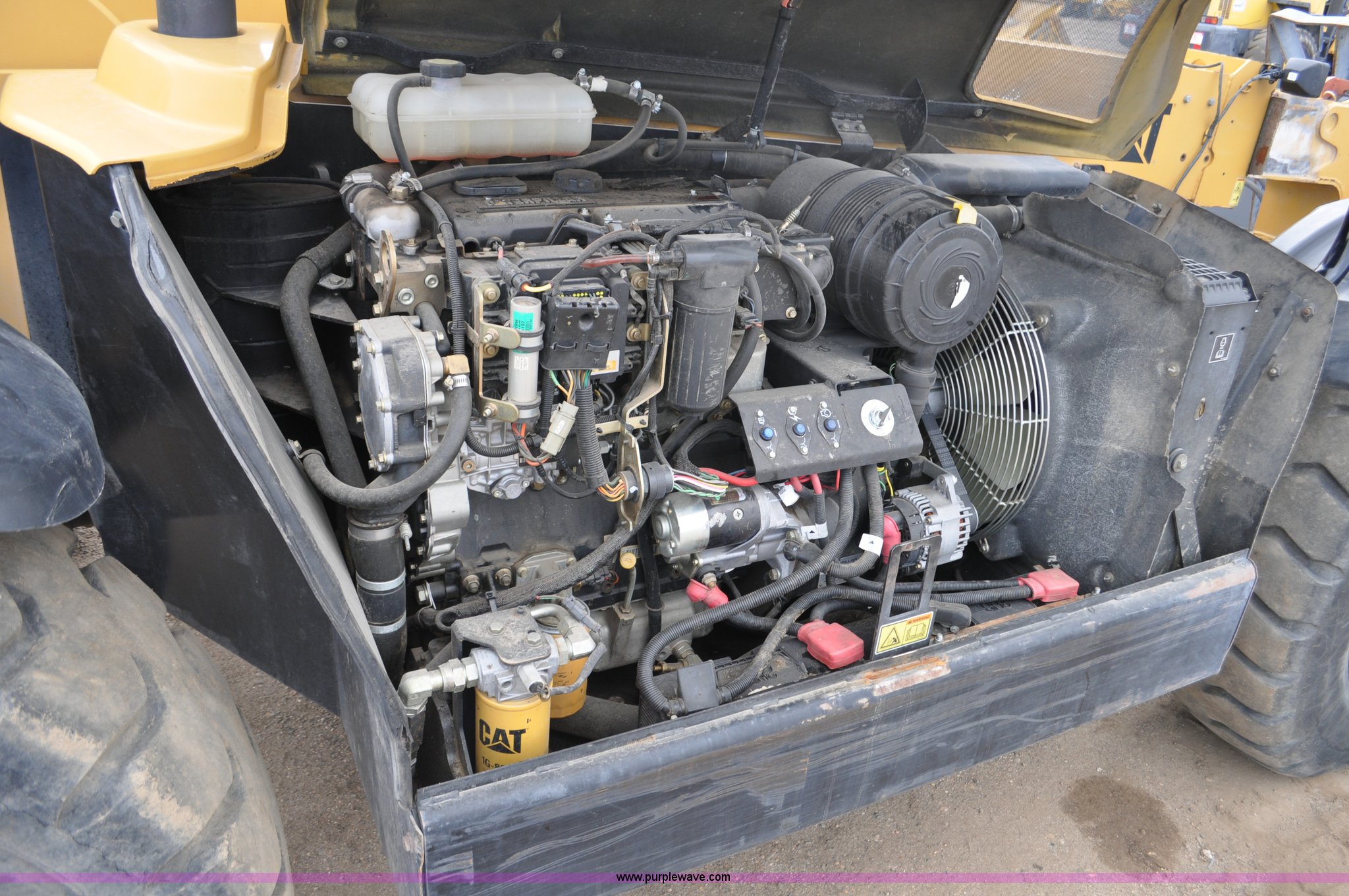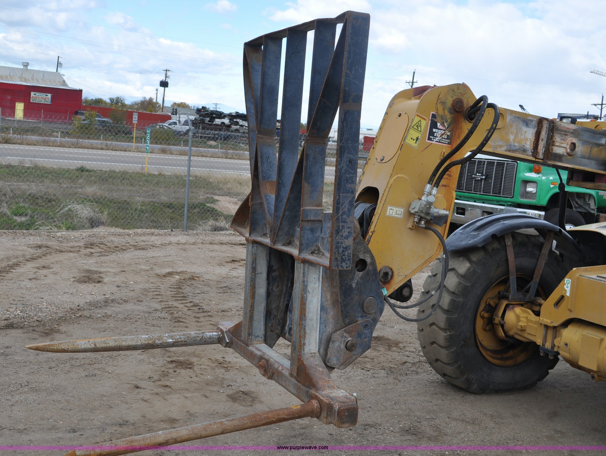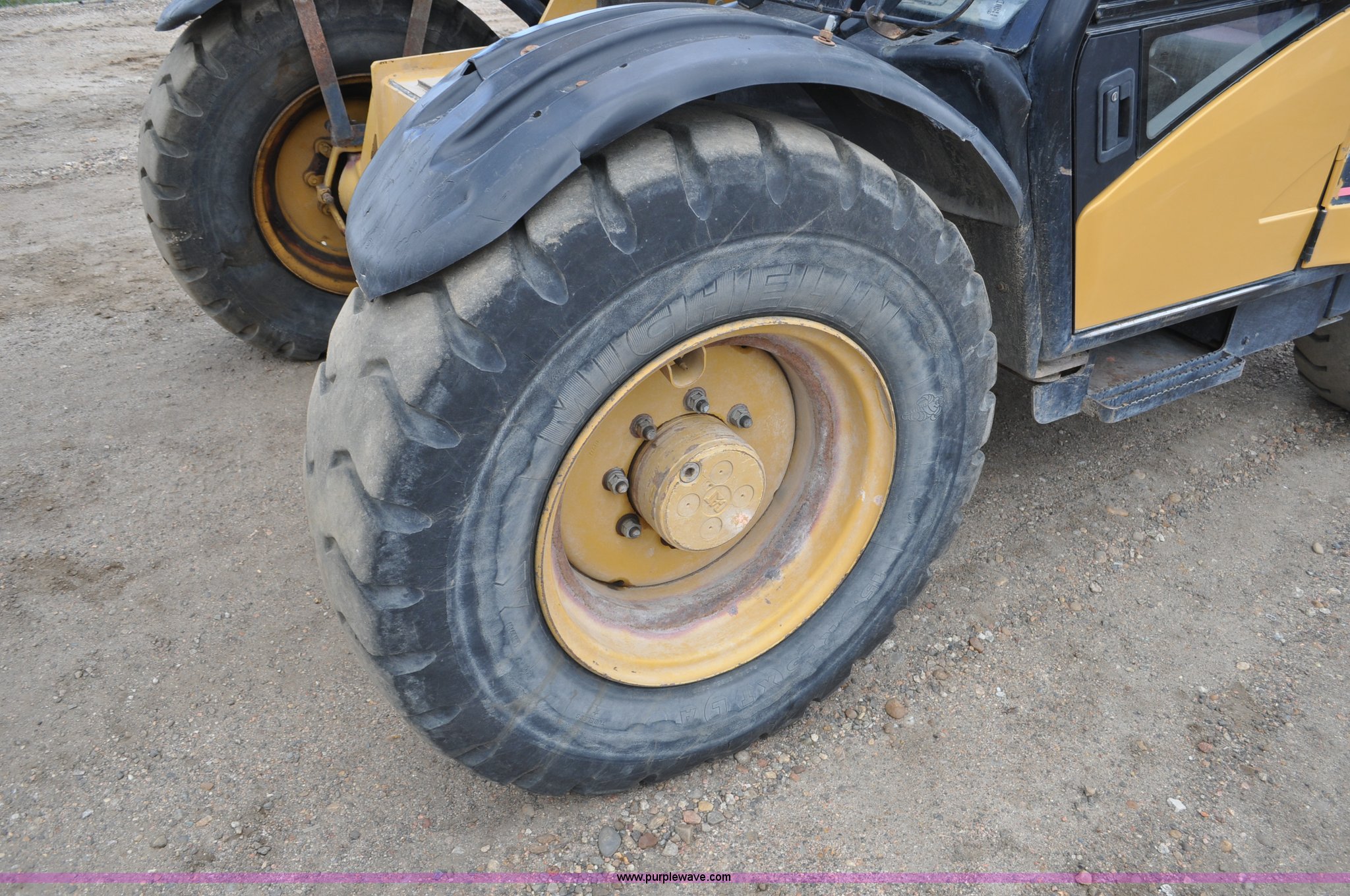Purple Wave is selling a used Telehandler in Colorado. This item is a 2005 Caterpillar TH330B telehandler with the following: 9,353 hours on meter, Caterpillar 3054E four cylinder diesel engine, 99 HP, Serial CRX04409, Powershift transmission, 4F-3R gears, Four wheel drive, Differential lock, Crab steer, Circle steer, Enclosed cab, AC and heat, Air suspension seat, 7,000 lbs lift capacity, 12.5'L reach, Auxiliary hydraulics, Hydraux manlift, Quick attach, 1,000 lbs capacity, Hydraulic angle, 4' x 10" basket, Bale forks, 26 gallon fuel tank, 15.5x25 tires, 15,476 lbs. base operating weight, Bucket is not included, Serial CATTH330ASLB00905