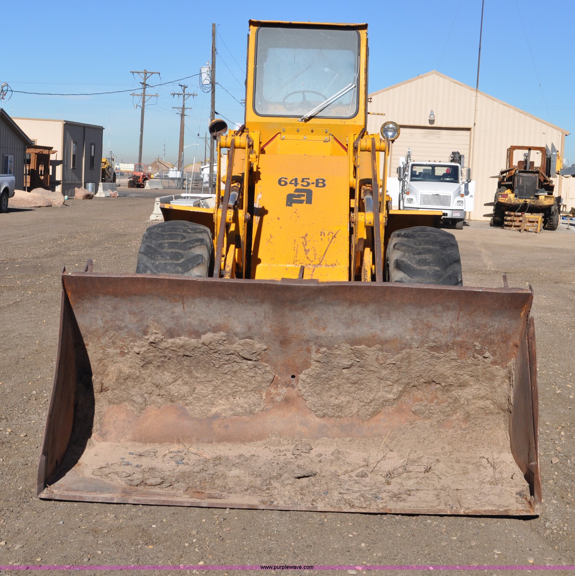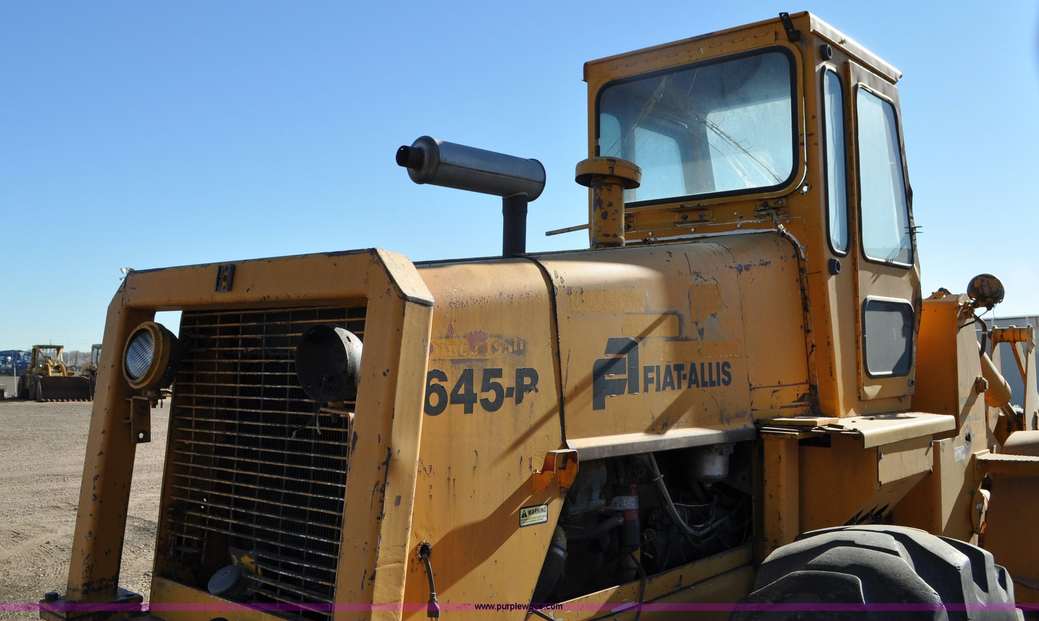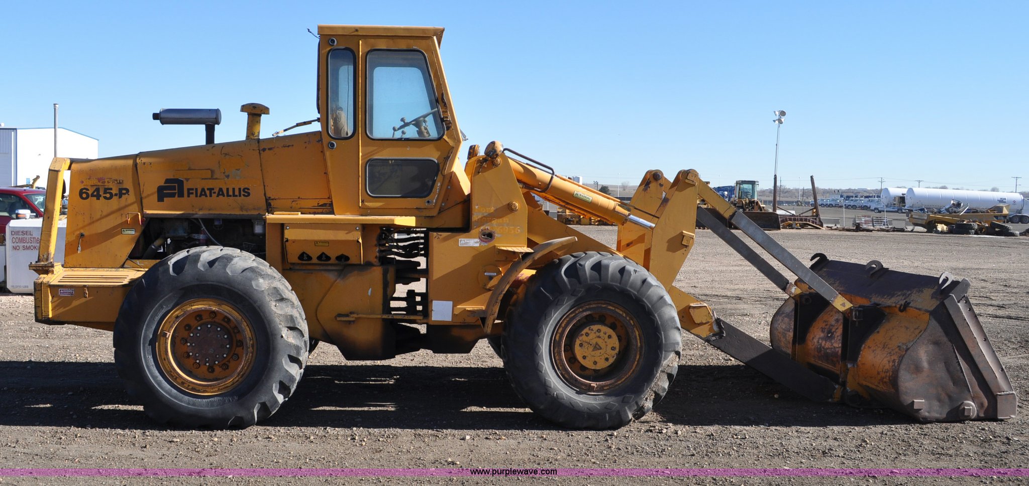 Purple Wave is selling a used Wheel Loader in Colorado. This item is a 1972 Fiat-Allis 645B wheel loader with the following: Six cylinder diesel engine, 2F-1R gears, Enclosed cab, Air ride seat, Dual stick loader control, 103" pin-on bucket, 4' loader frame extension, 20.5x25 tires, 24,440 lbs. base operating weight, No low range, Cracked rear glass, Serial 11Y03550
