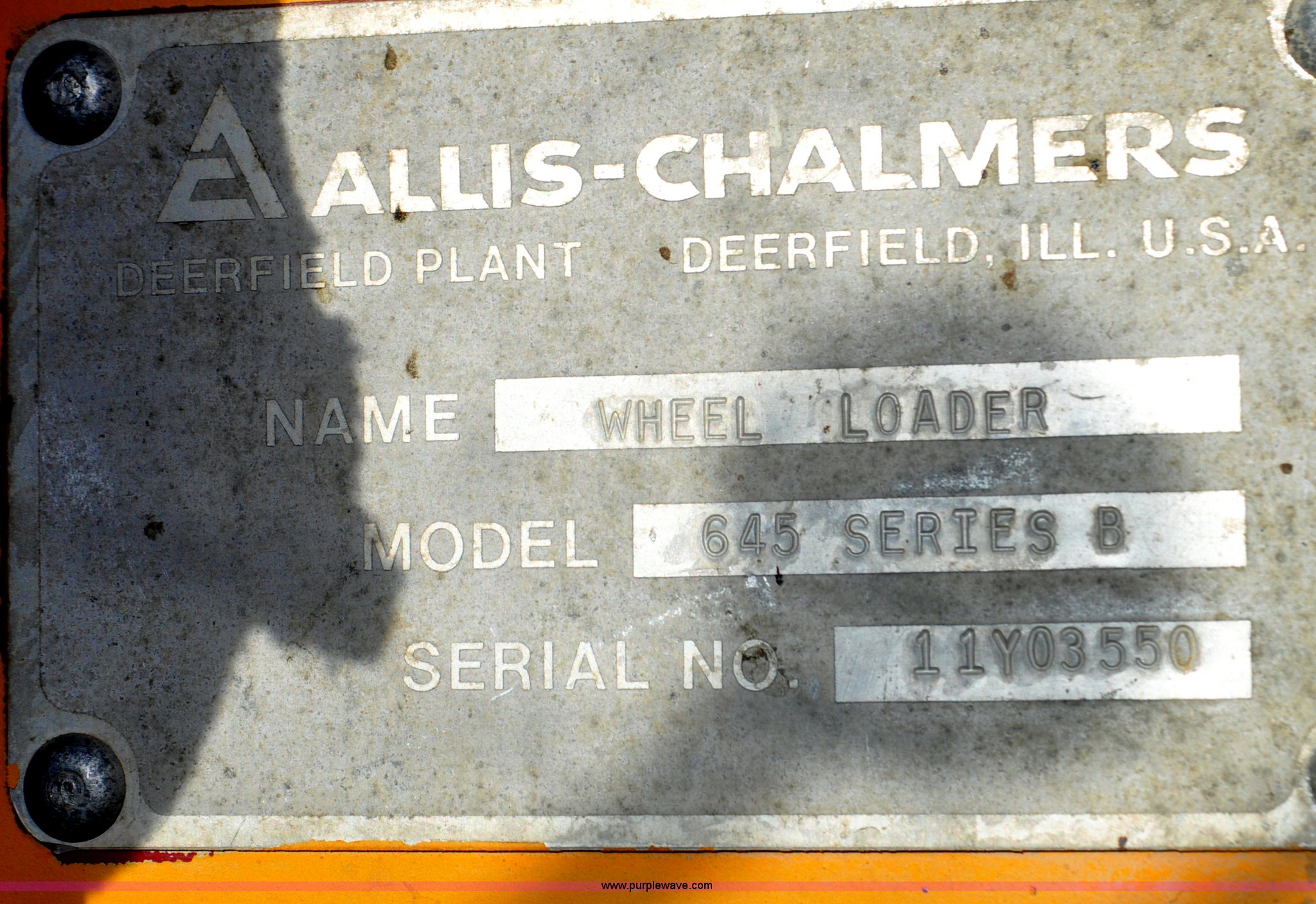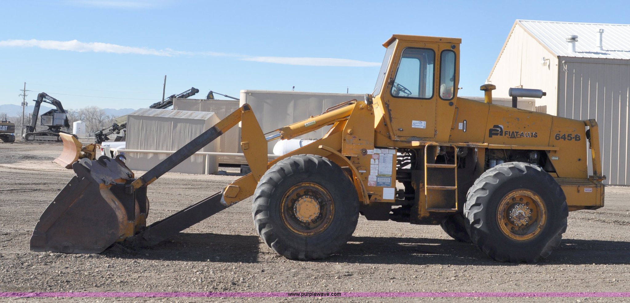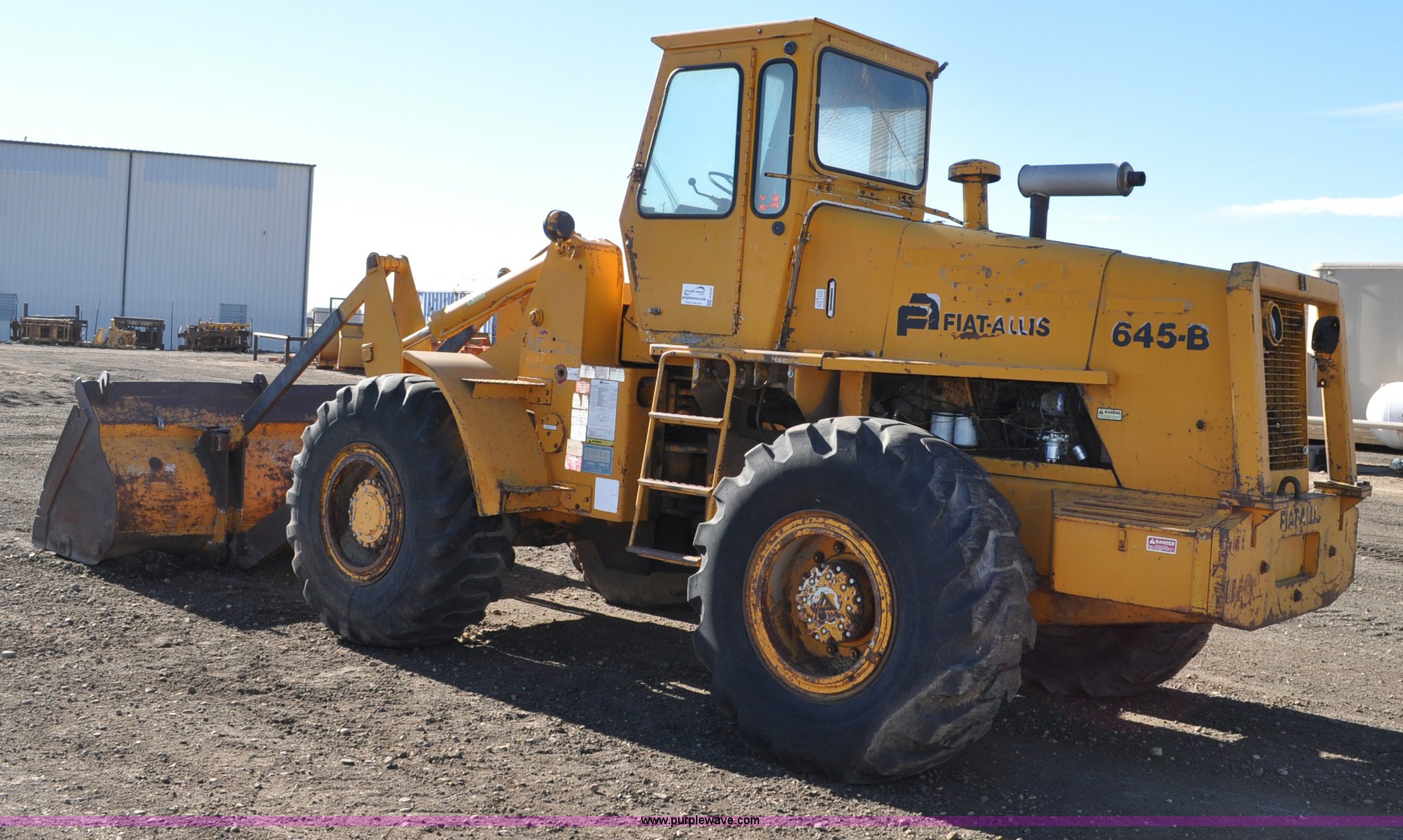 Purple Wave is selling a used Wheel Loader in Colorado. This item is a 1972 Fiat-Allis 645B wheel loader with the following: Six cylinder diesel engine, 2F-1R gears, Enclosed cab, Air ride seat, Dual stick loader control, 103" pin-on bucket, 4' loader frame extension, 20.5x25 tires, 24,440 lbs. base operating weight, No low range, Cracked rear glass, Serial 11Y03550