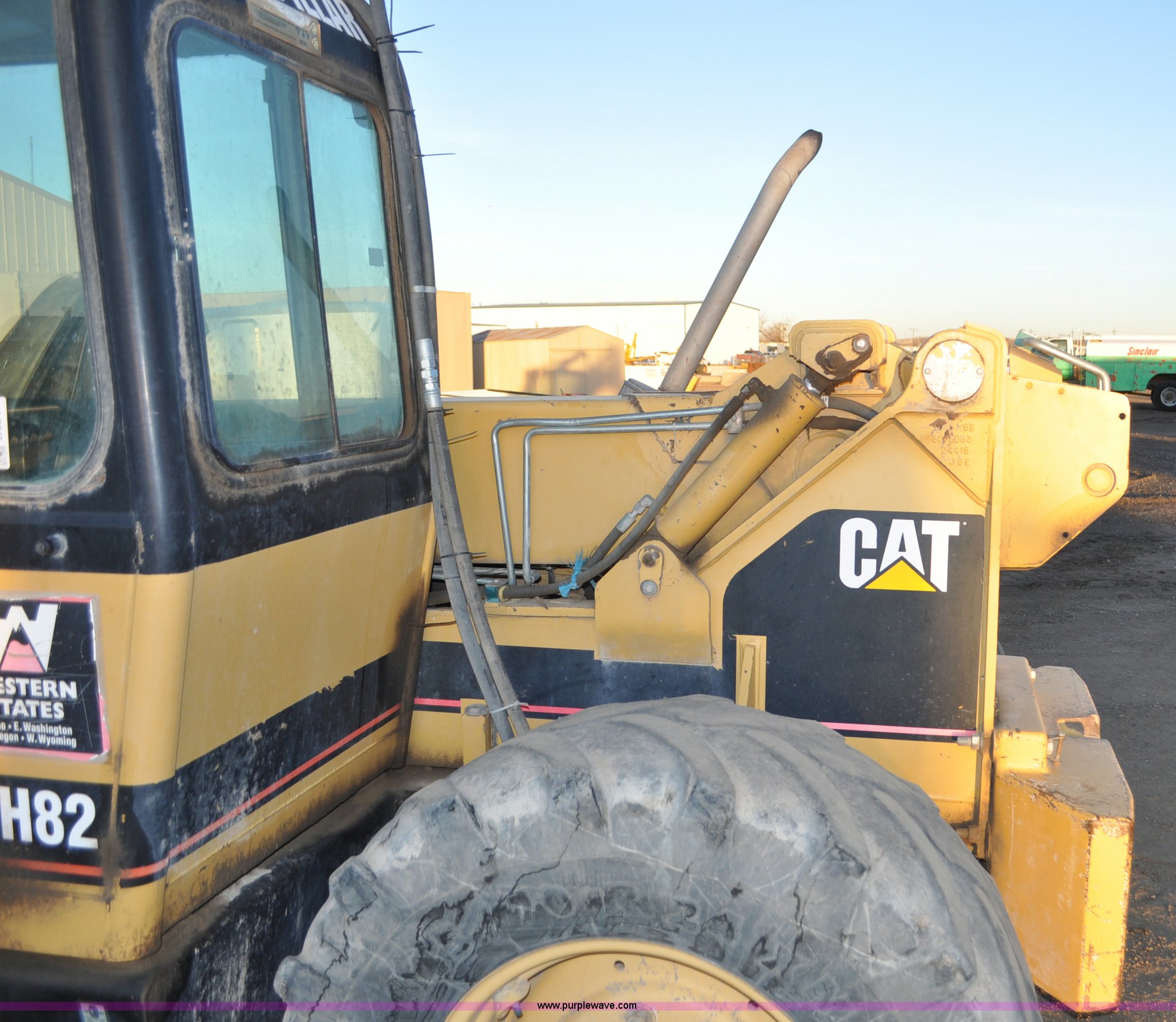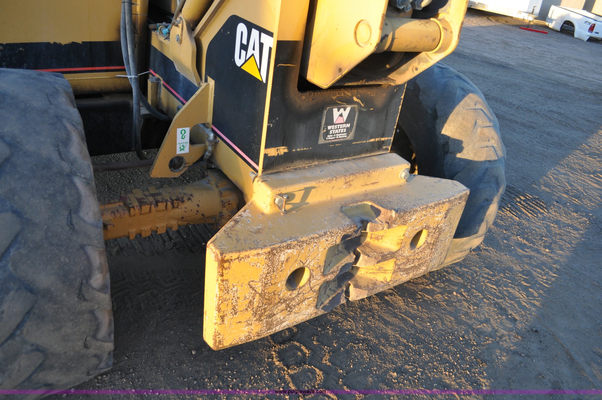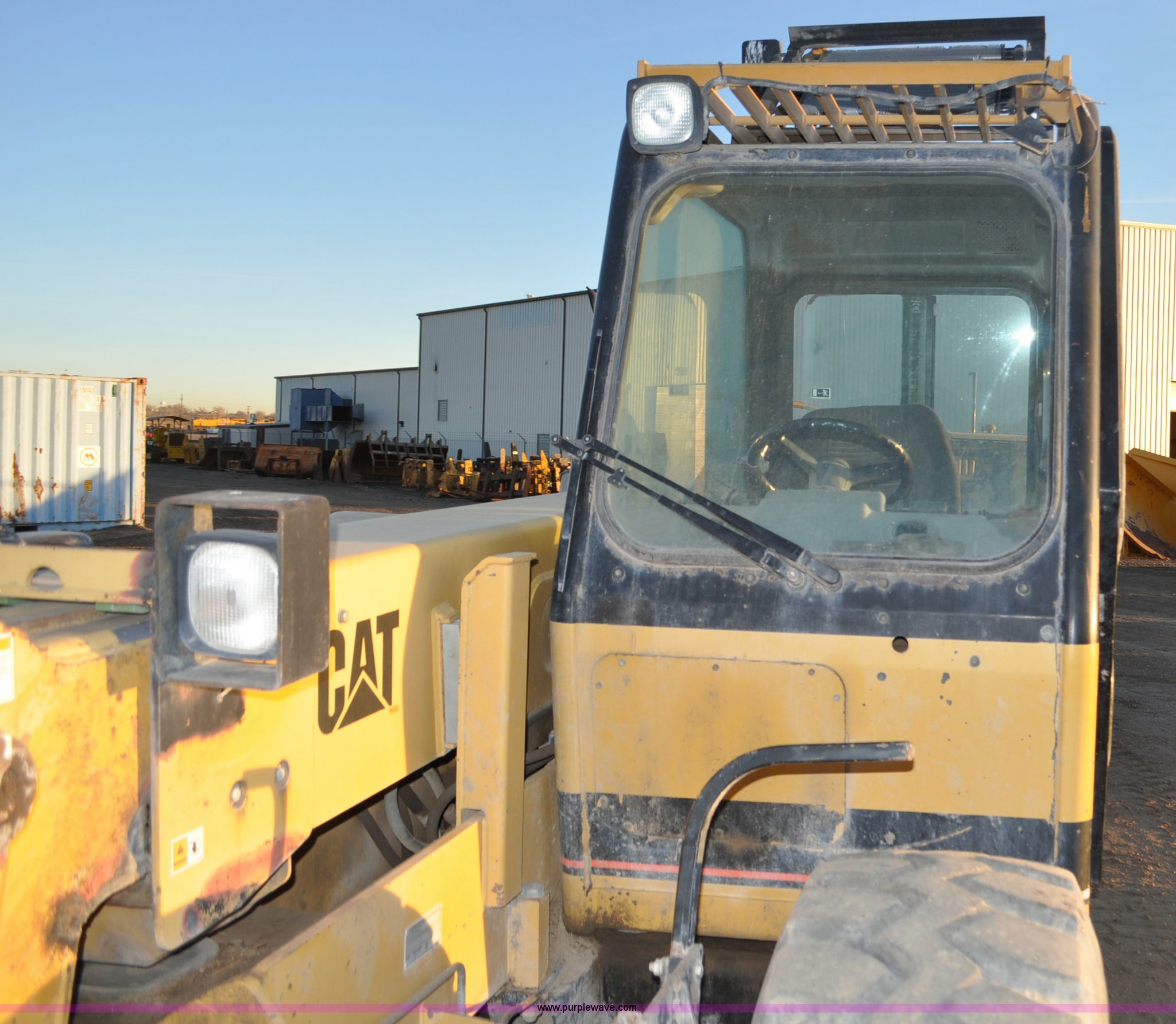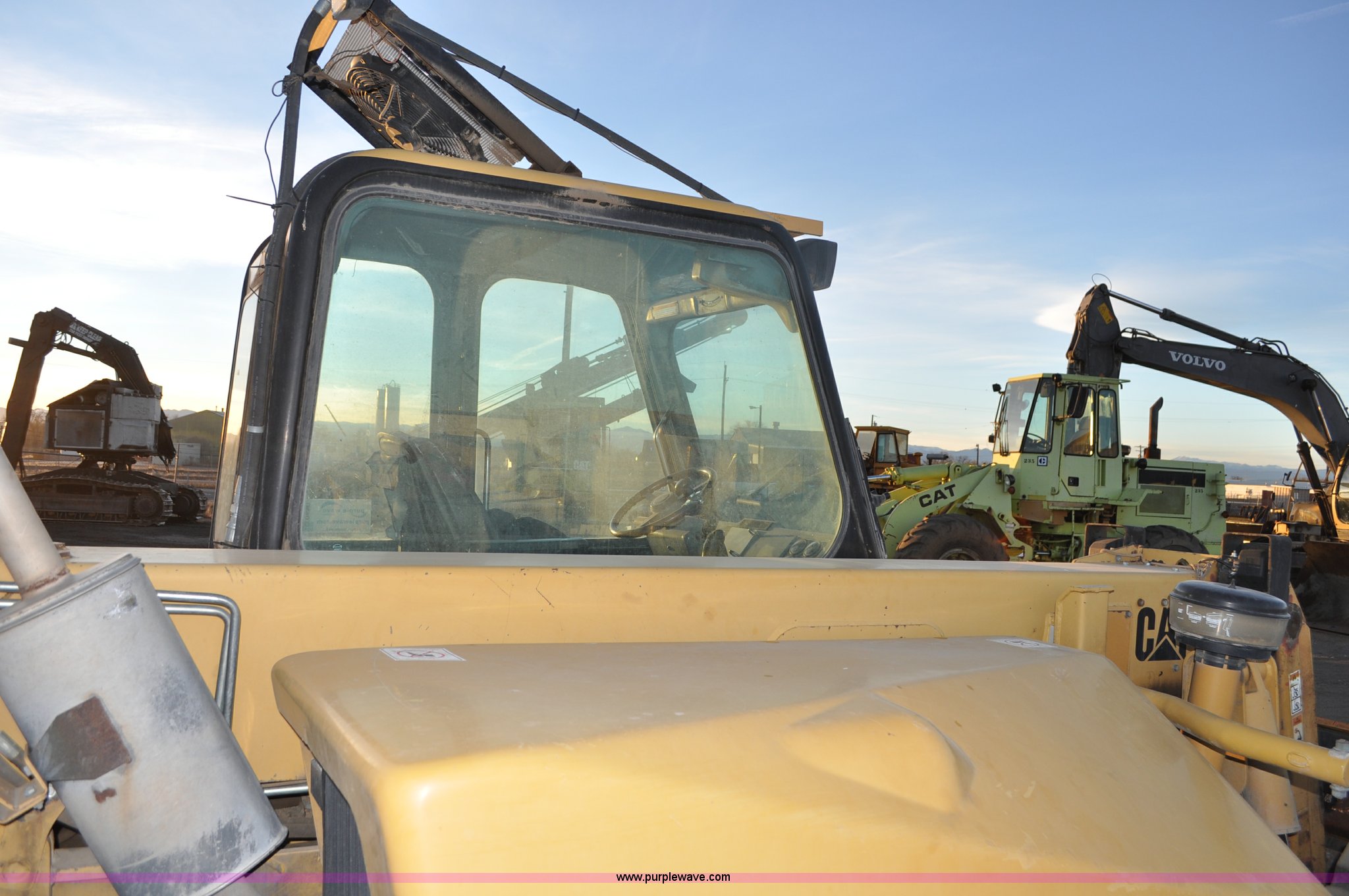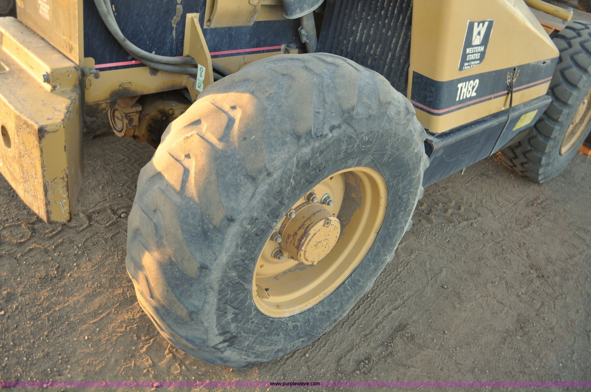 Purple Wave is selling a used Telehandler in Colorado. This item is a 1999 Caterpillar TH82 telehandler with the following: 13,358 hours on meter, Caterpillar 3054T four cylinder diesel engine, 109 HP, Serial 7BJ04381, Powershift transmission, 4F-3R gears, Differential lock, Crab steer, Circle steer, Enclosed cab, Spring seat, 8,013 lbs lift capacity, 13.8'L reach, Auxiliary hydraulics, Hydraulic leveling, 94" bucket, Bolt-on edge, 31 gallon fuel tank, 15.5x25 front tires, 17.5x24 rear tires, 16,468 lbs. base operating weight, Cracks on boom have been welded and repaired, Serial 3JN00724
