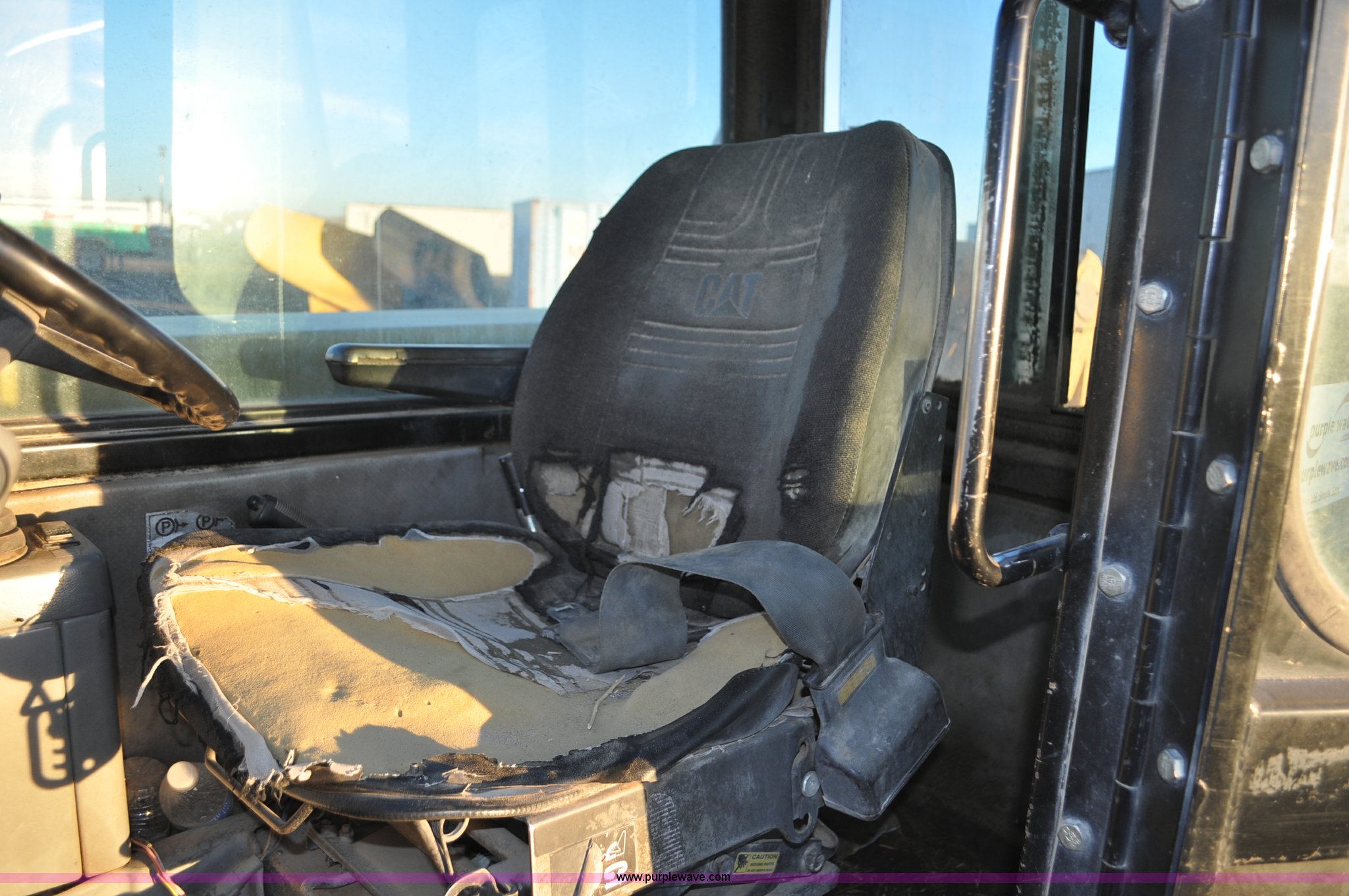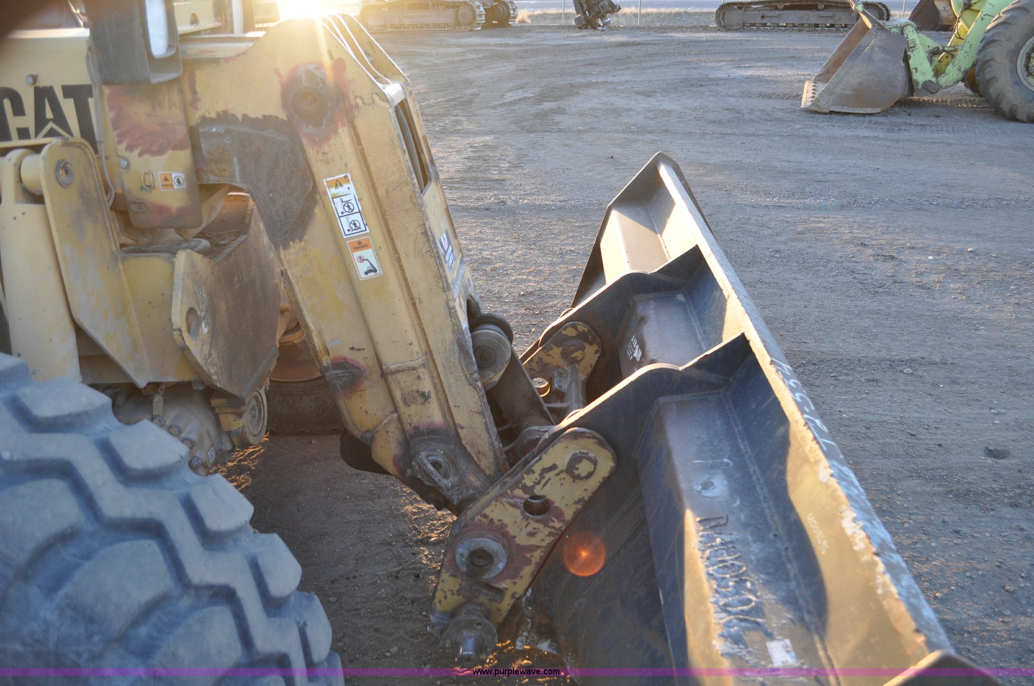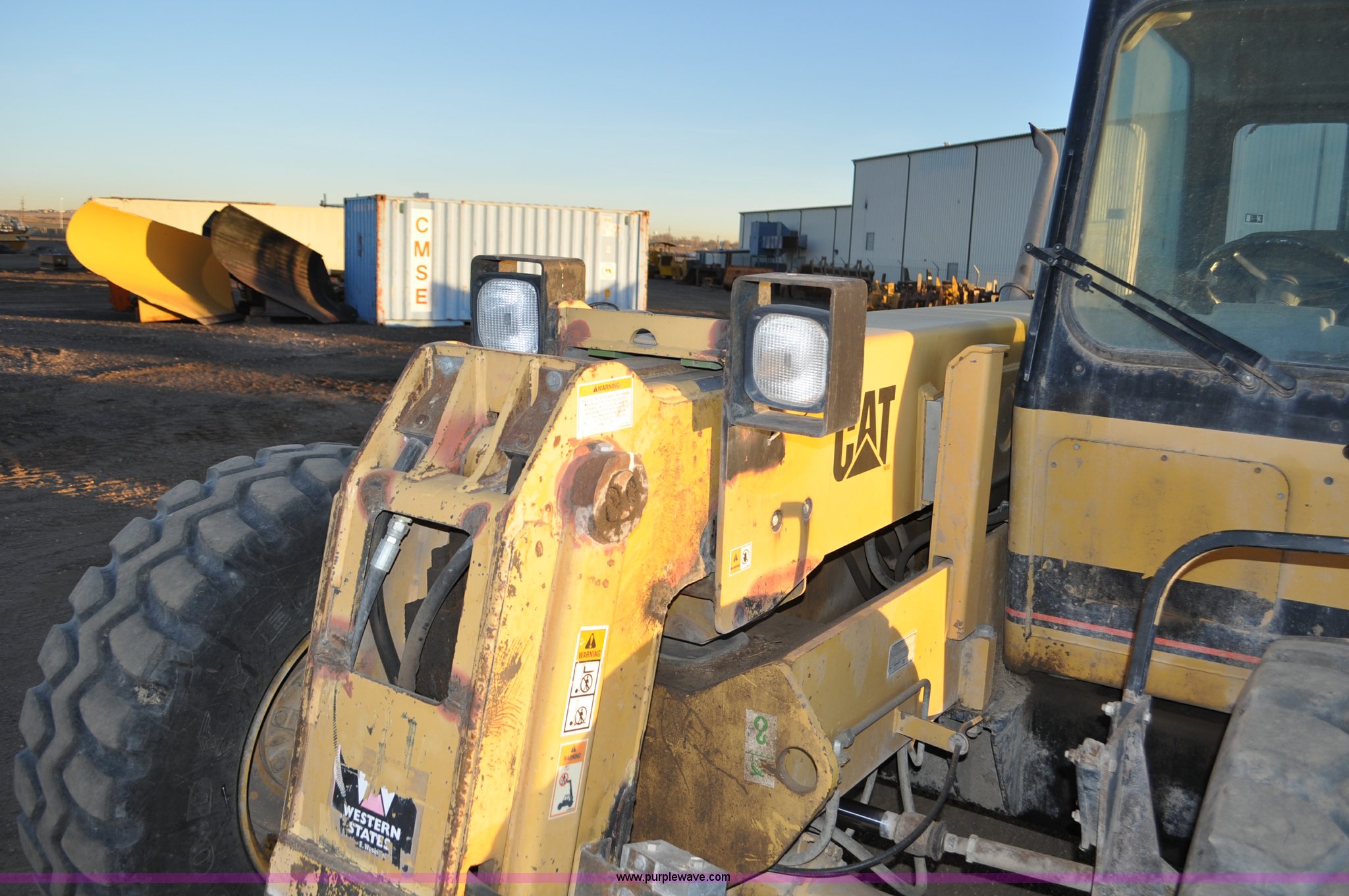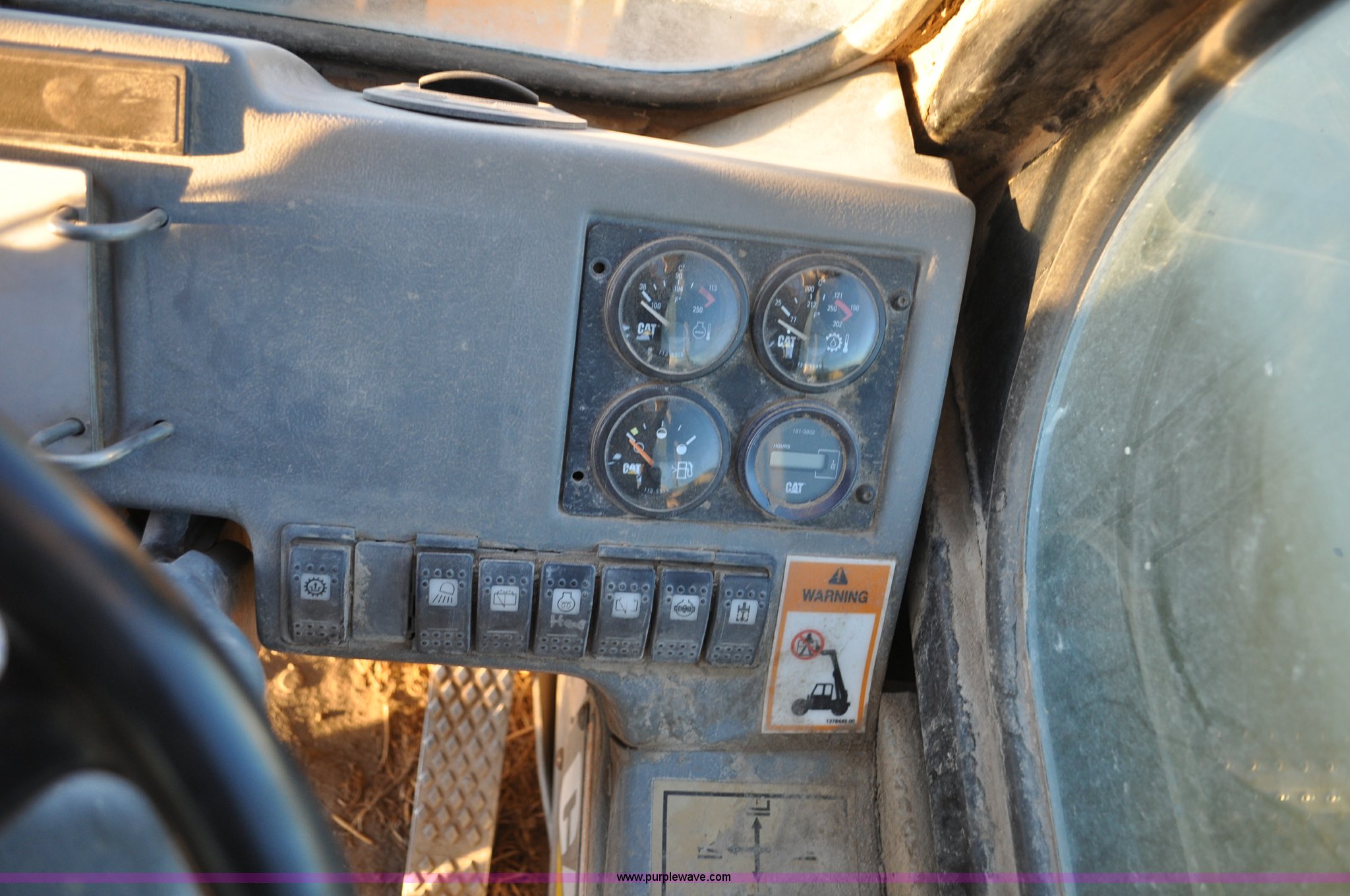 Purple Wave is selling a used Telehandler in Colorado. This item is a 1999 Caterpillar TH82 telehandler with the following: 13,358 hours on meter, Caterpillar 3054T four cylinder diesel engine, 109 HP, Serial 7BJ04381, Powershift transmission, 4F-3R gears, Differential lock, Crab steer, Circle steer, Enclosed cab, Spring seat, 8,013 lbs lift capacity, 13.8'L reach, Auxiliary hydraulics, Hydraulic leveling, 94" bucket, Bolt-on edge, 31 gallon fuel tank, 15.5x25 front tires, 17.5x24 rear tires, 16,468 lbs. base operating weight, Cracks on boom have been welded and repaired, Serial 3JN00724