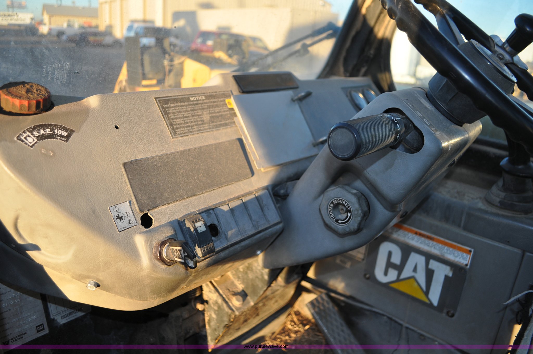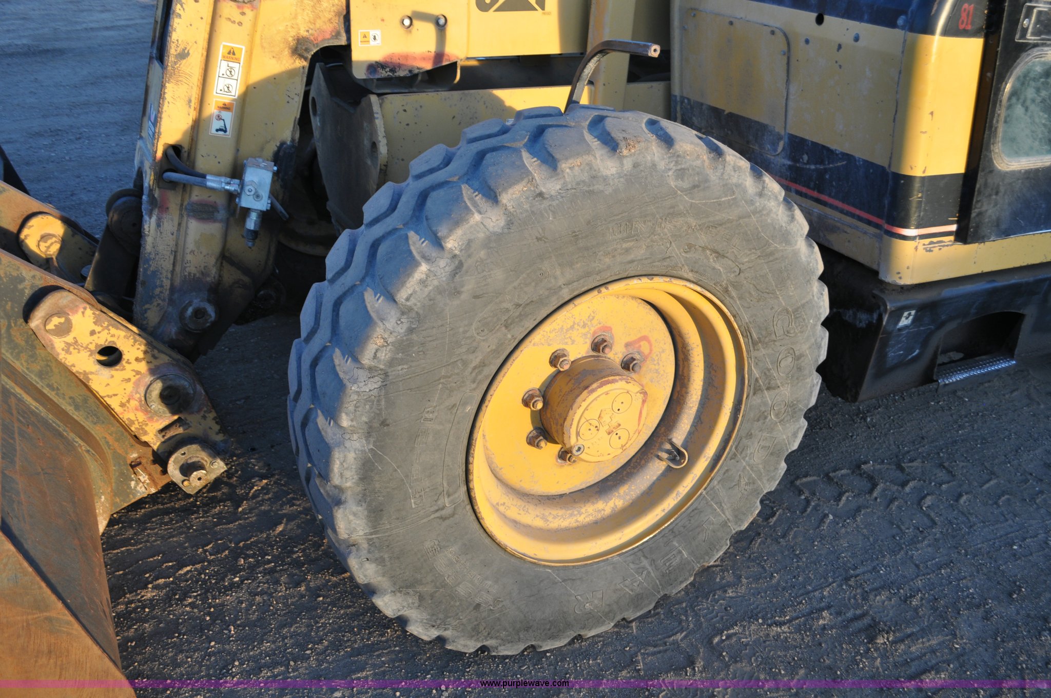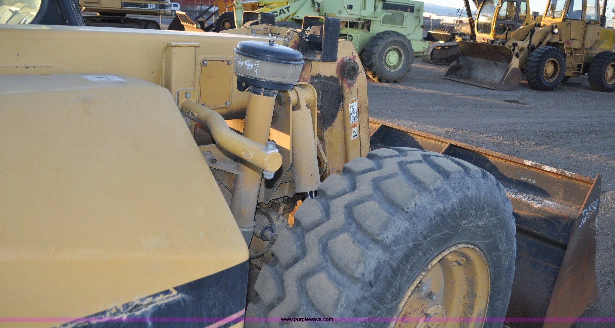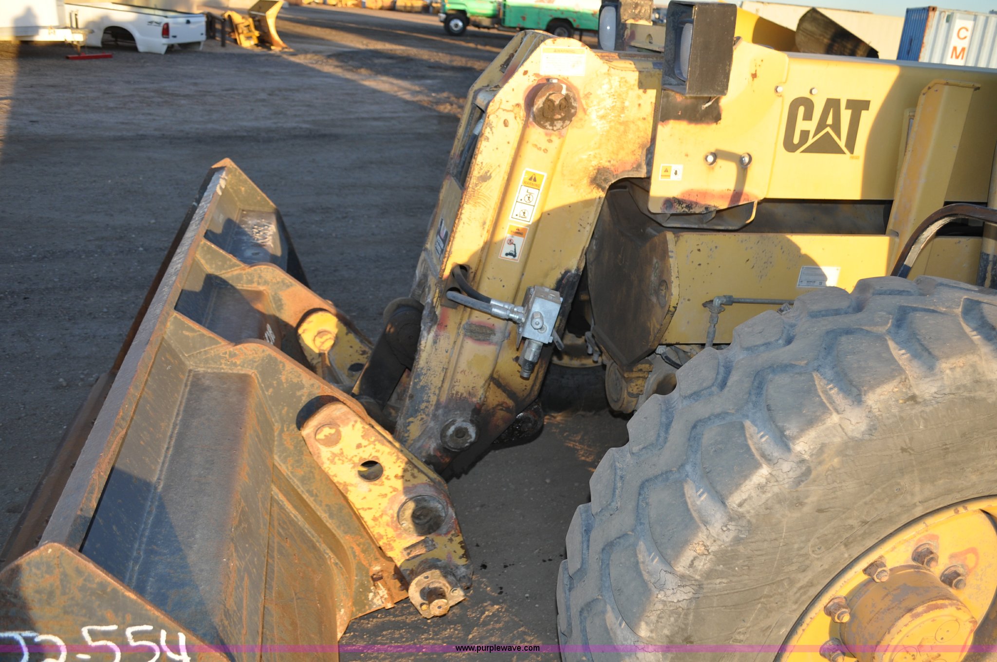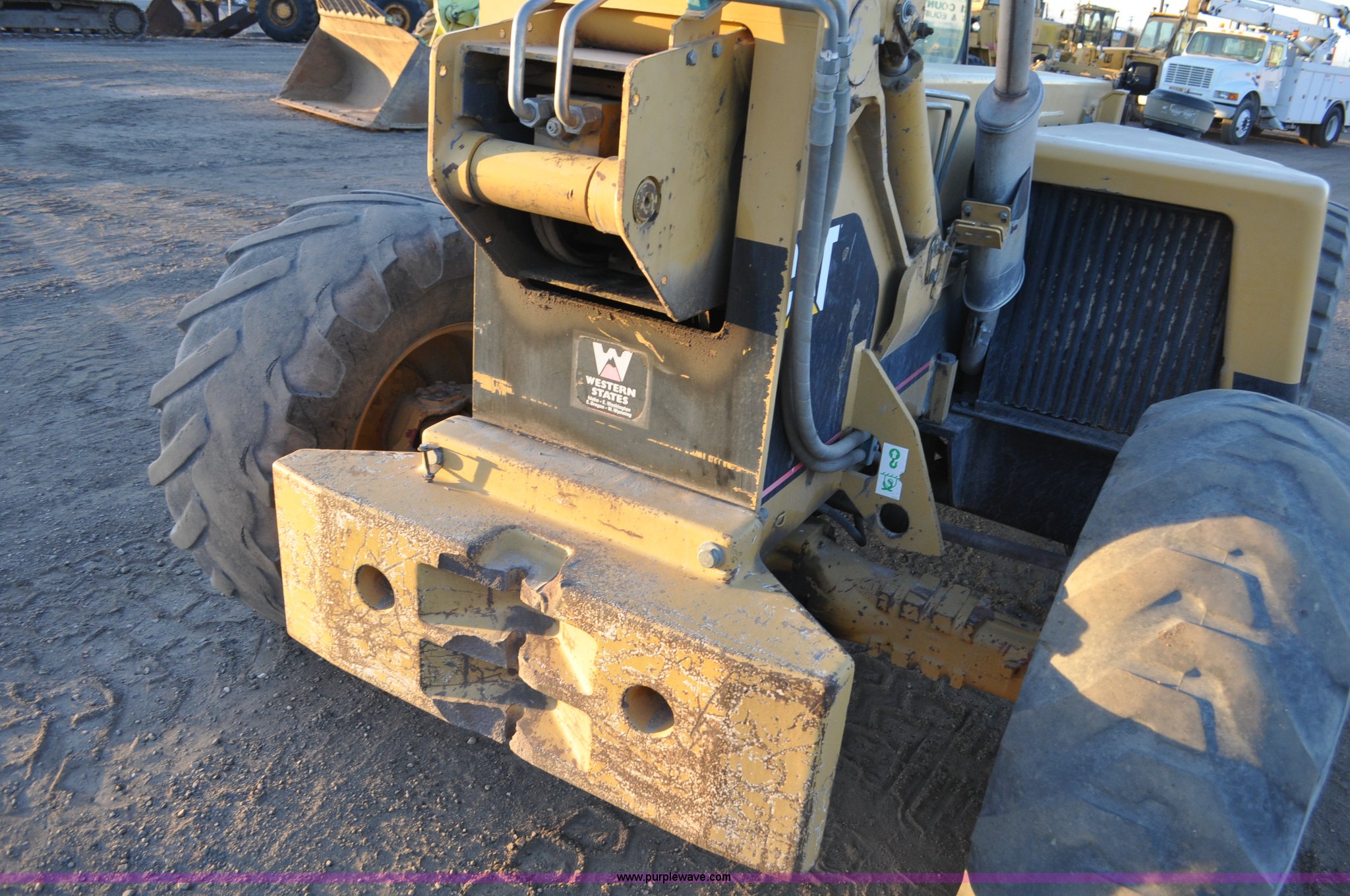 Purple Wave is selling a used Telehandler in Colorado. This item is a 1999 Caterpillar TH82 telehandler with the following: 13,358 hours on meter, Caterpillar 3054T four cylinder diesel engine, 109 HP, Serial 7BJ04381, Powershift transmission, 4F-3R gears, Differential lock, Crab steer, Circle steer, Enclosed cab, Spring seat, 8,013 lbs lift capacity, 13.8'L reach, Auxiliary hydraulics, Hydraulic leveling, 94" bucket, Bolt-on edge, 31 gallon fuel tank, 15.5x25 front tires, 17.5x24 rear tires, 16,468 lbs. base operating weight, Cracks on boom have been welded and repaired, Serial 3JN00724