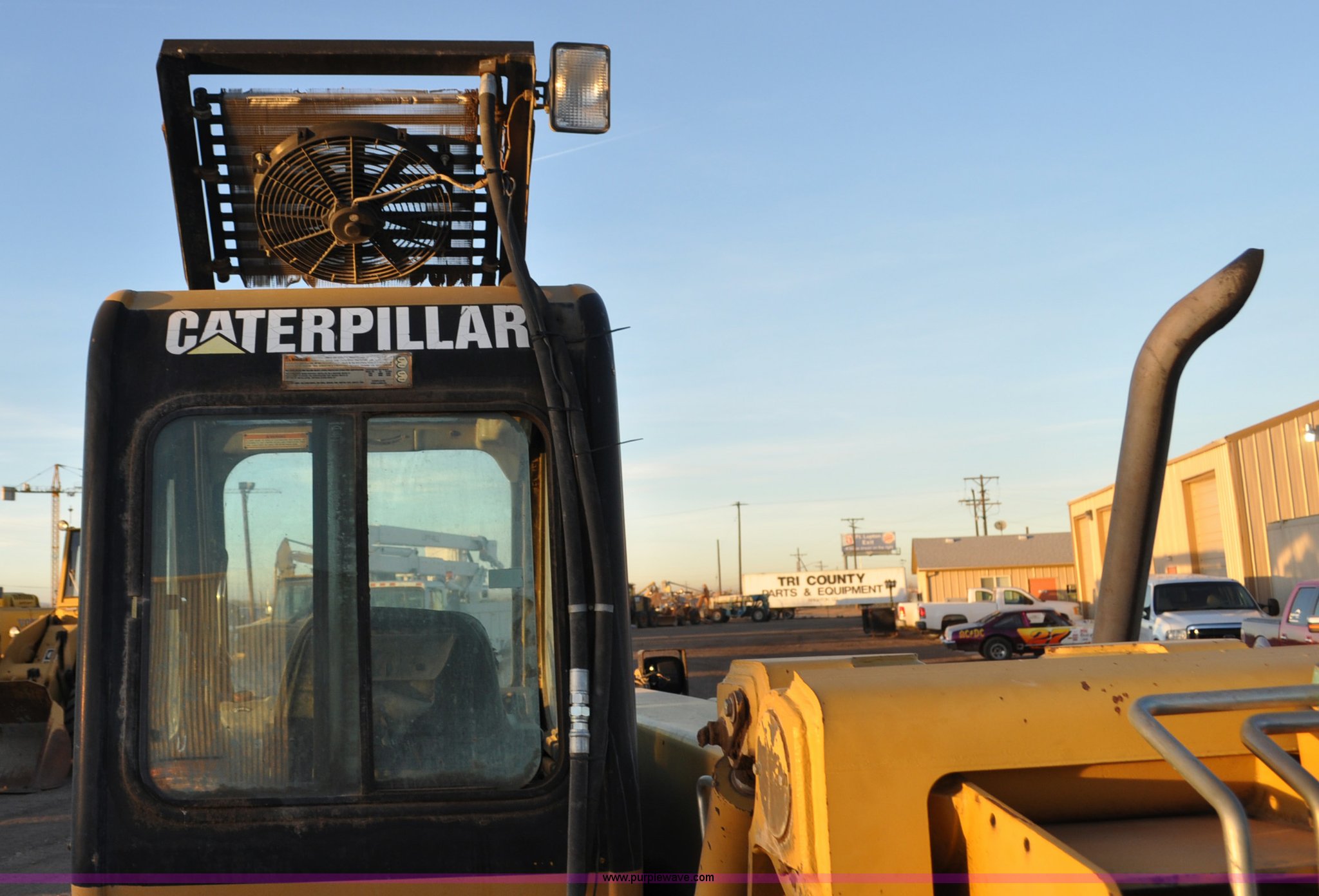 1999 Caterpillar TH82 telehandler. 13,358 hours on meter, Caterpillar 3054T four cylinder diesel engine 109 HP, Serial 7BJ04381, Powershift transmission 4F-3R gears, Differential lock, Crab steer, Circle steer, Enclosed cab Spring seat, 8,013 lbs lift capacity, 13.8'L reach, Auxiliary hydraulics, Hydraulic leveling, 94" bucket Bolt-on edge, 31 gallon fuel tank, 15.5x25 front tires, 17.5x24 rear tires, 16,468 lbs. base operating weight, Cracks on boom have been welded and repaired, Serial 3JN00724. View equipment video. Tri County Parts and Equipment. 12706 County Rd 4. Brighton, CO 80603