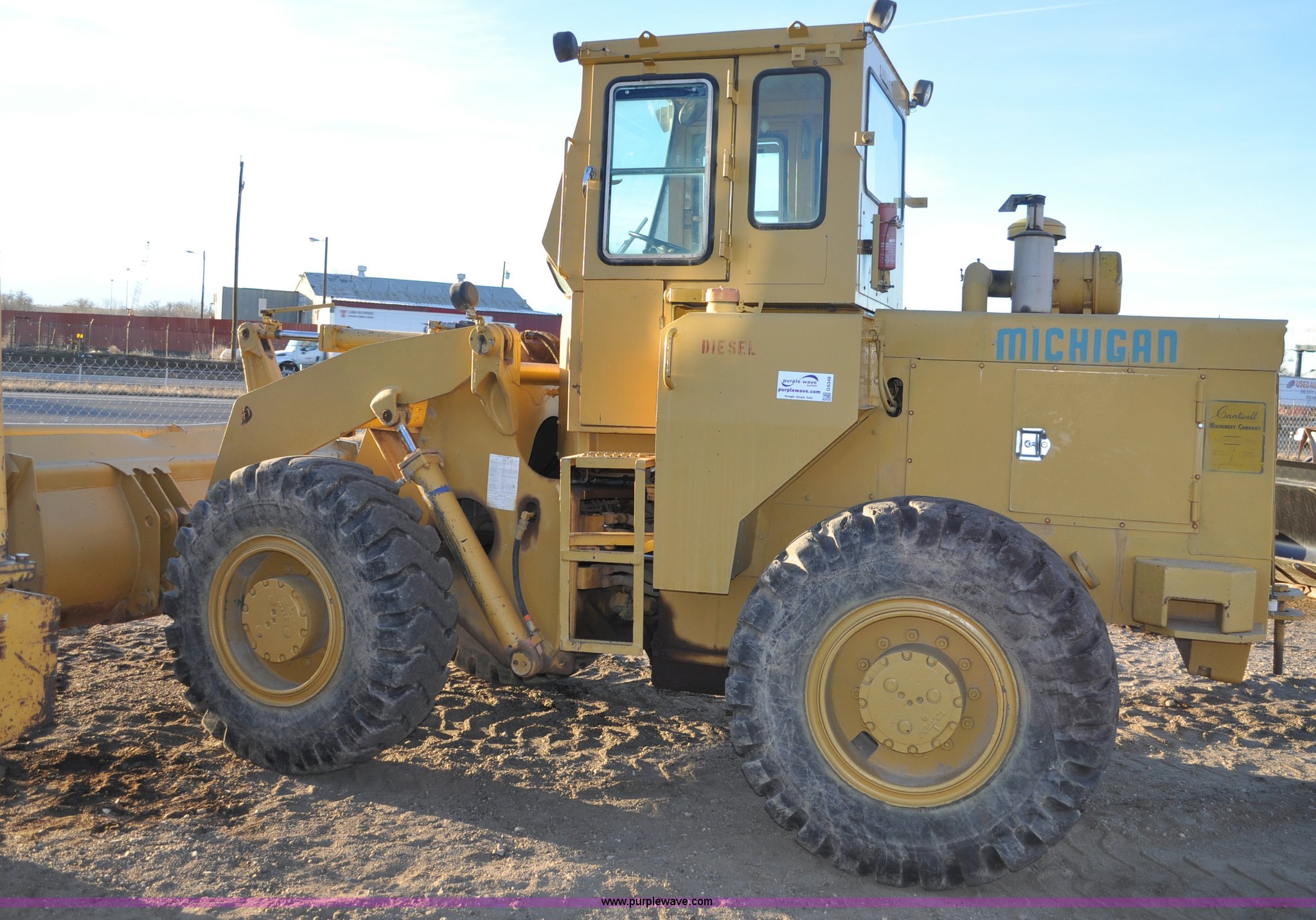 Purple Wave is selling a used Wheel Loader in Colorado. This item is a 1975 Michigan 45B wheel loader with the following: Perkins six cylinder diesel engine, Three speed powershift transmission, Enclosed cab, Heat, Two stick loader control, 92" pin-on bucket, 17.5x25 tires, 16,100 lbs. base operating weight, Serial 4189C244JAC