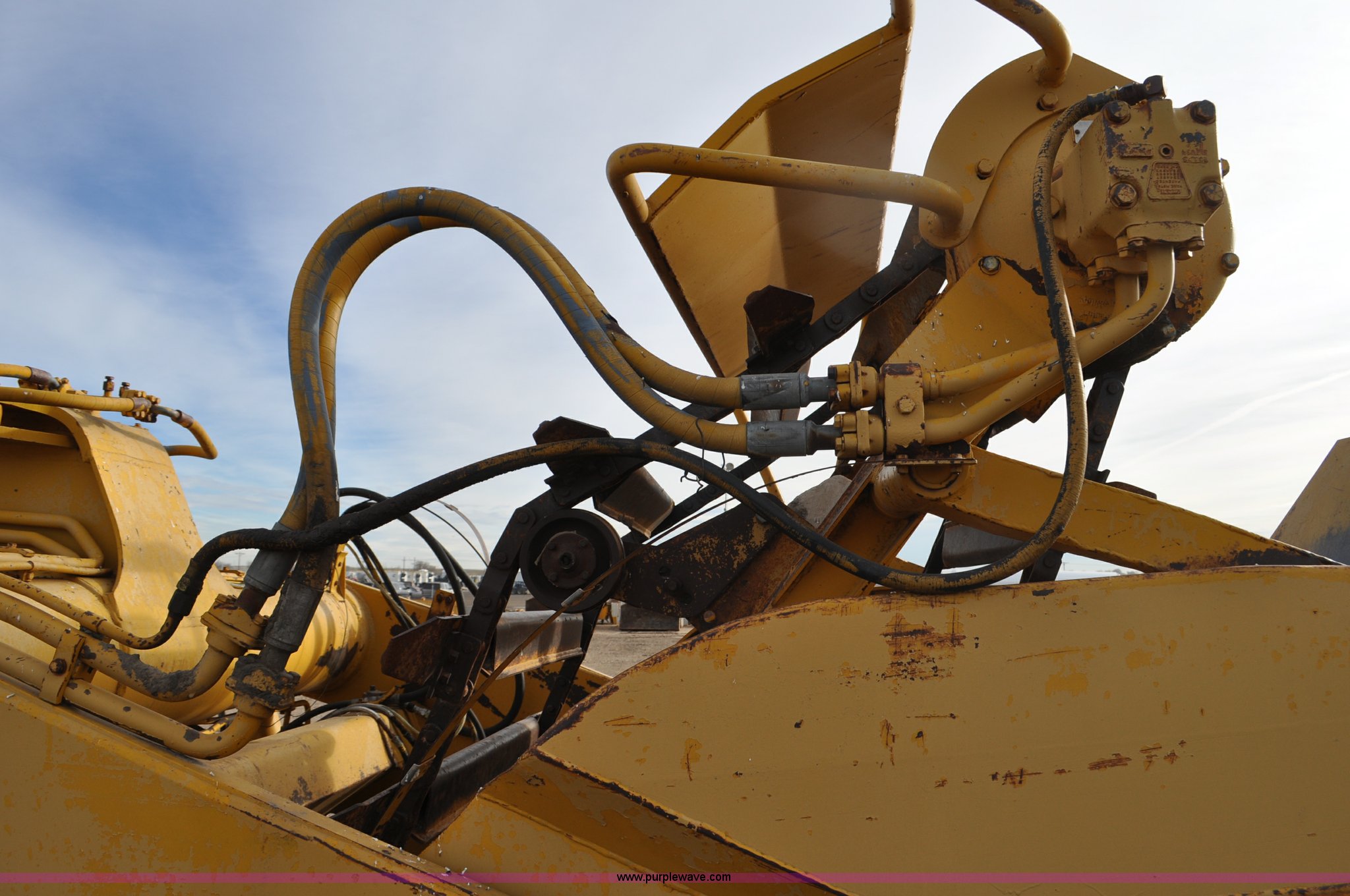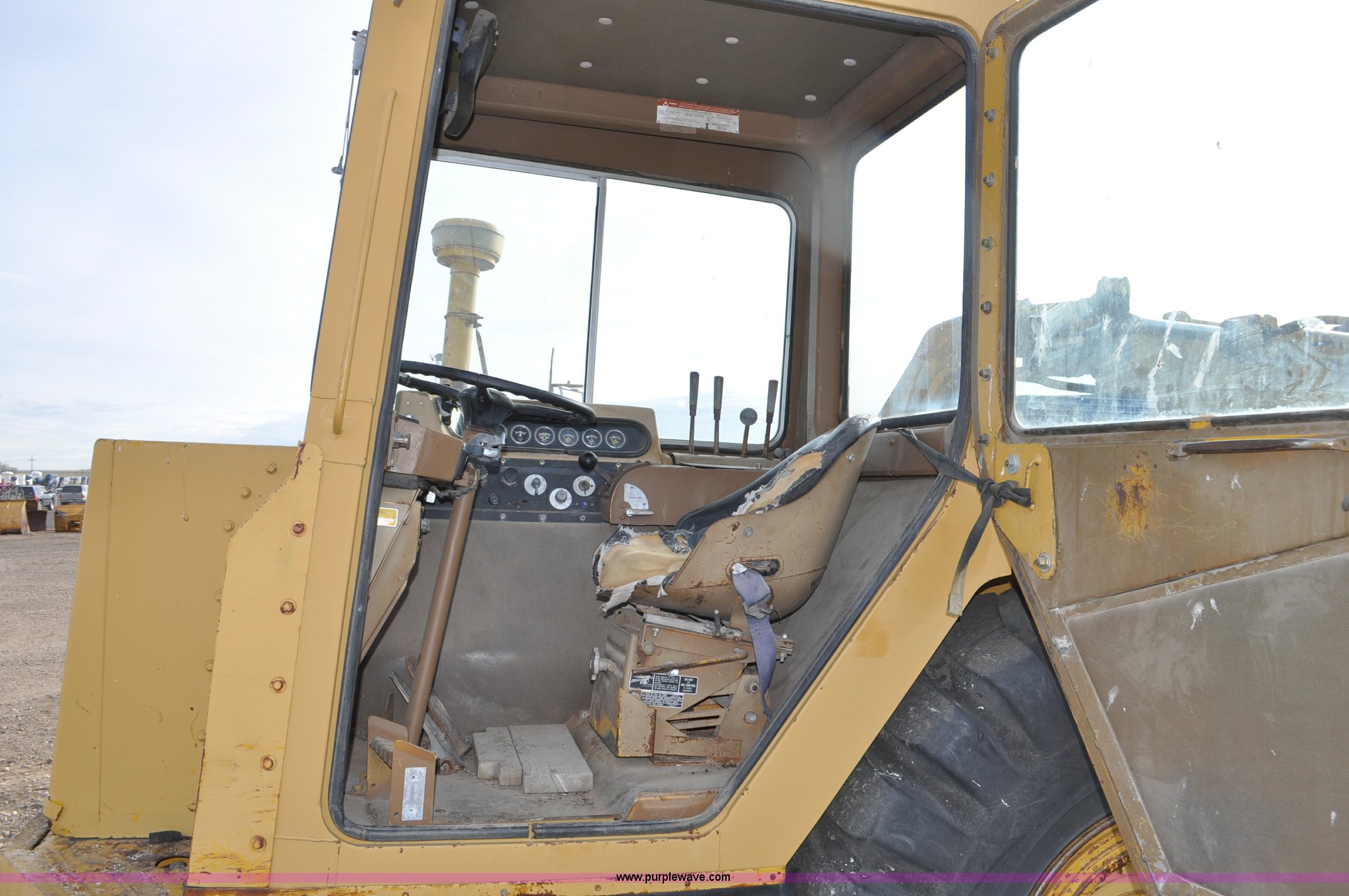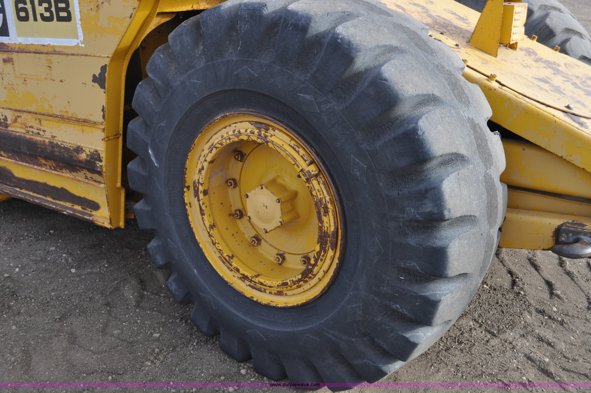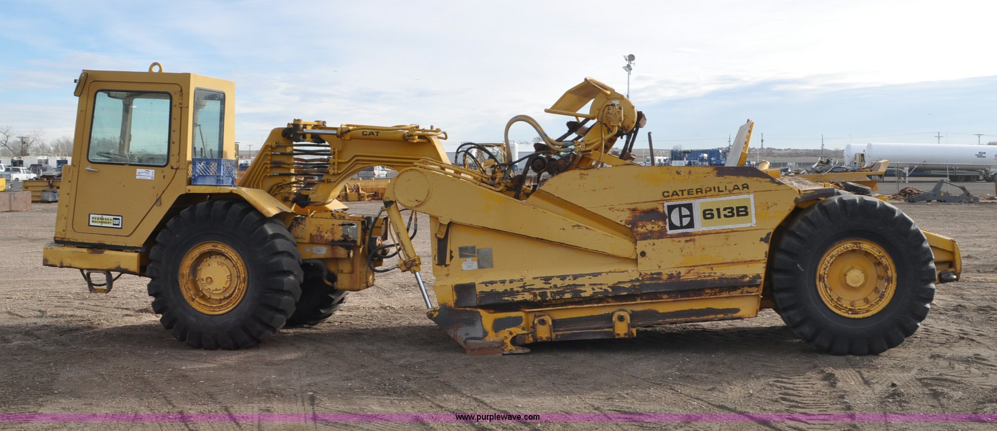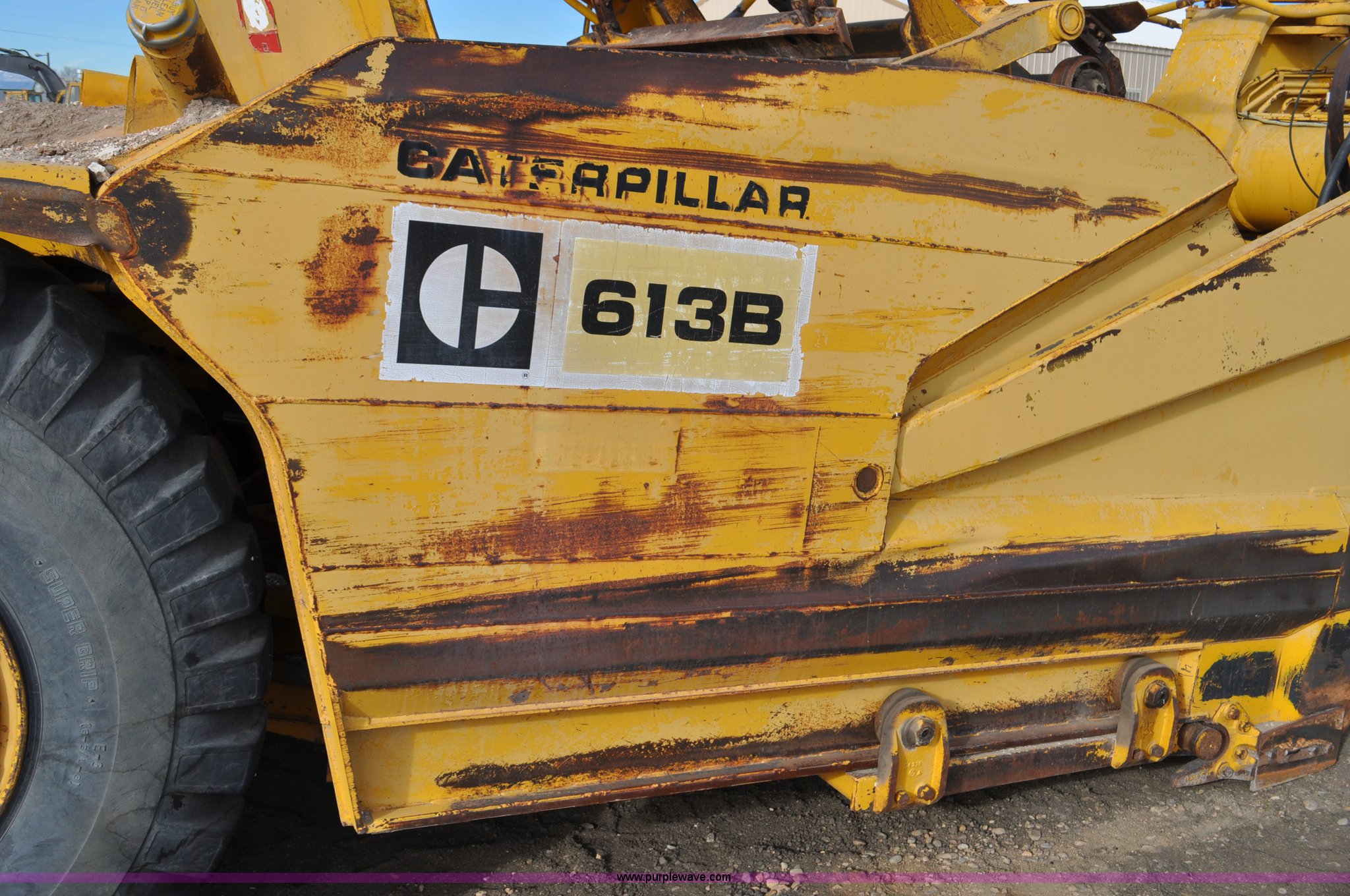 Purple Wave is selling a used Elevating Scraper in Colorado. This item is a 1977 Caterpillar 613B elevating scraper with the following: 681 hours on meter, Caterpillar 3208 diesel engine, 150 HP, 4F-2R gears, 11 cu. yd. capacity, 23.5x25 tires, Previous county machine, Serial 38W4754