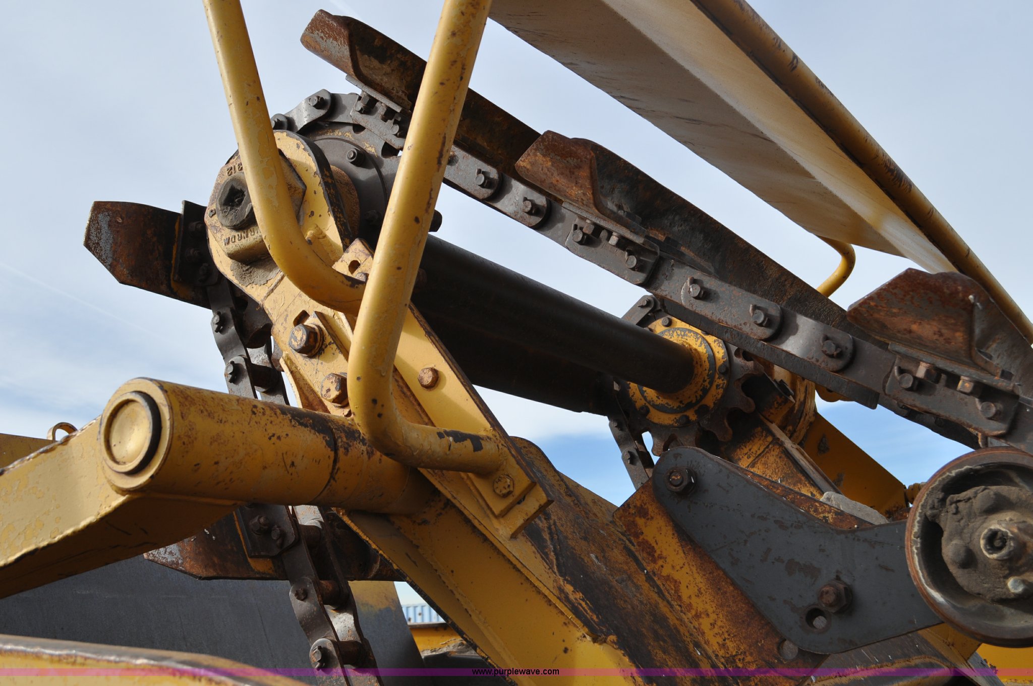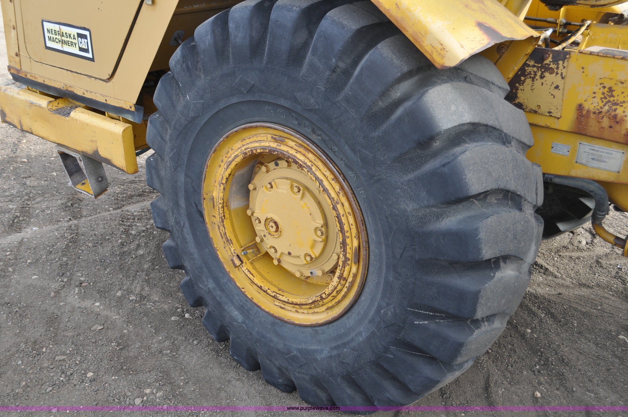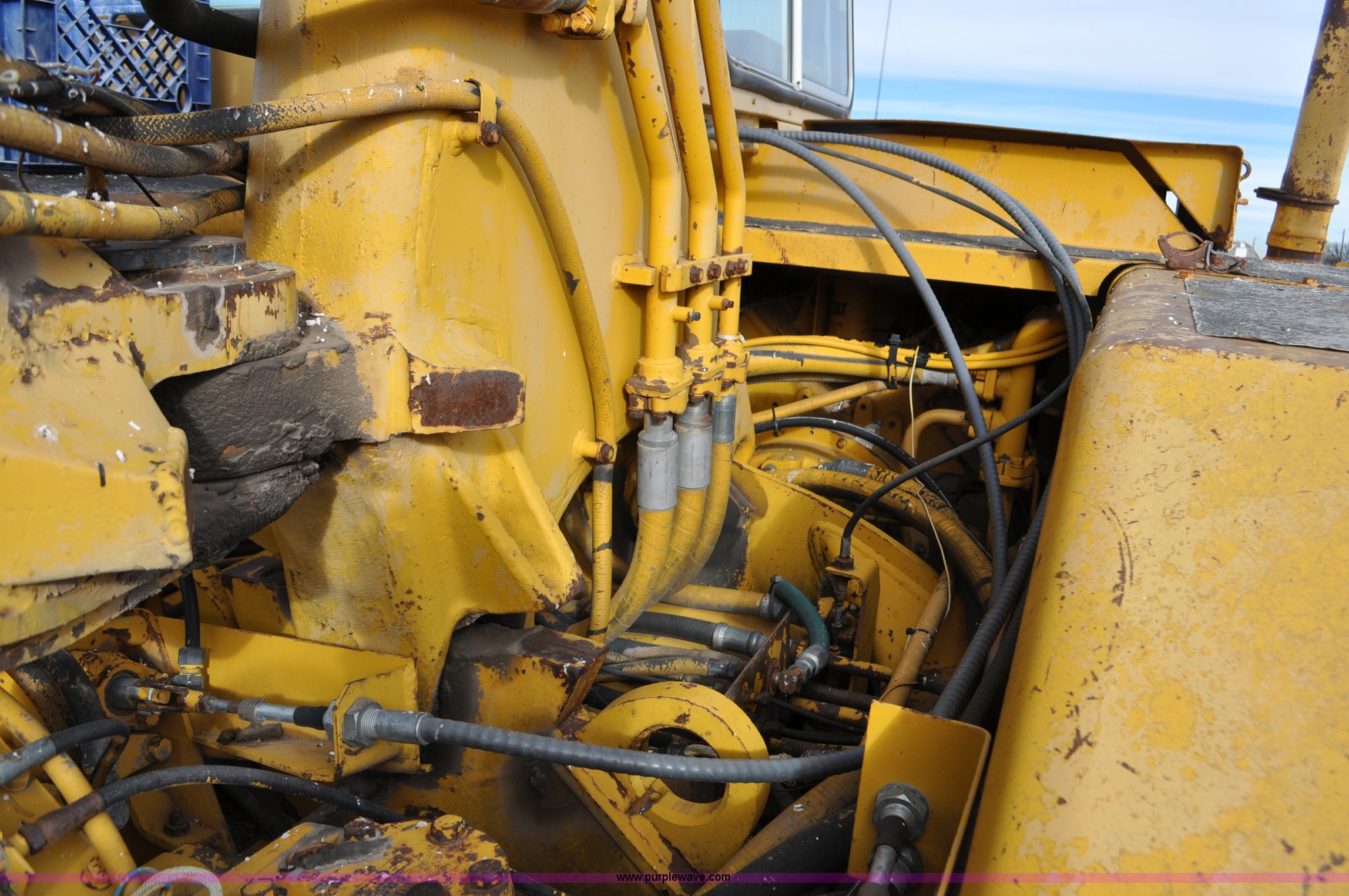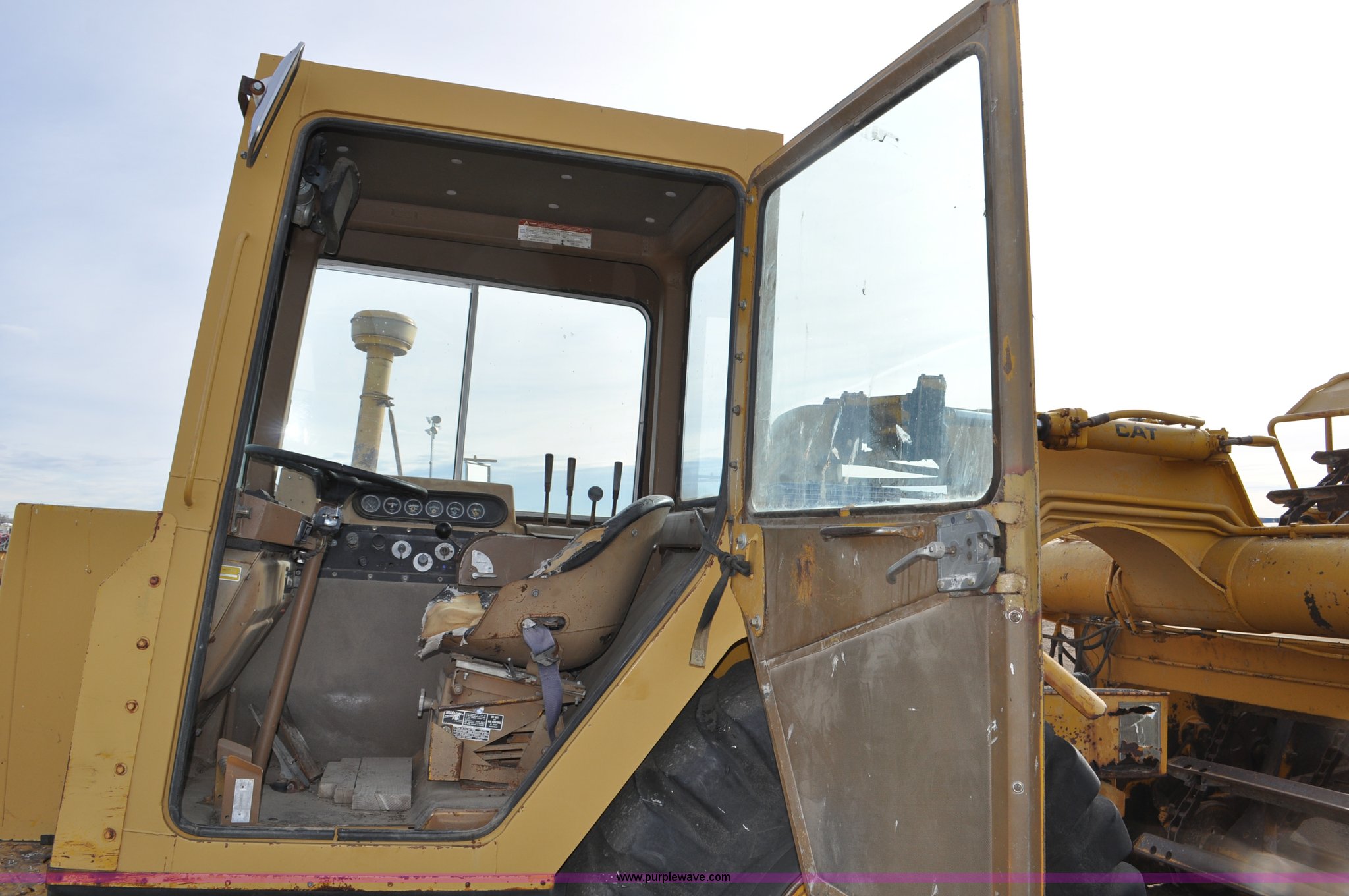 Purple Wave is selling a used Elevating Scraper in Colorado. This item is a 1977 Caterpillar 613B elevating scraper with the following: 681 hours on meter, Caterpillar 3208 diesel engine, 150 HP, 4F-2R gears, 11 cu. yd. capacity, 23.5x25 tires, Previous county machine, Serial 38W4754