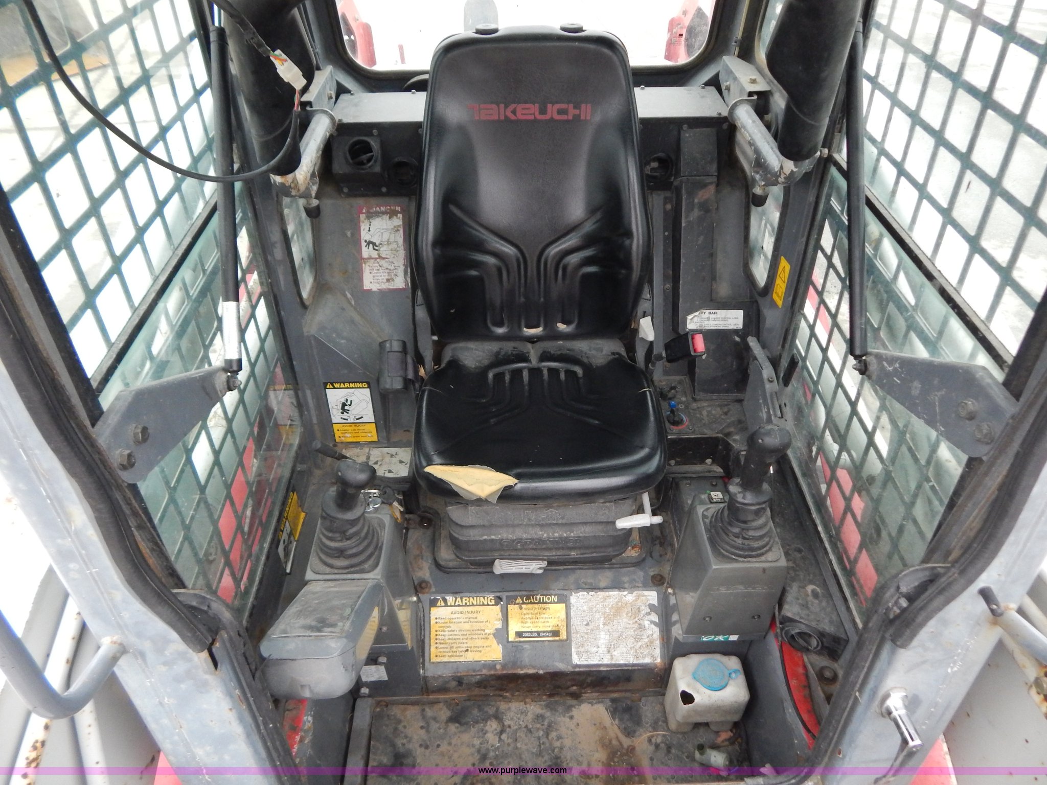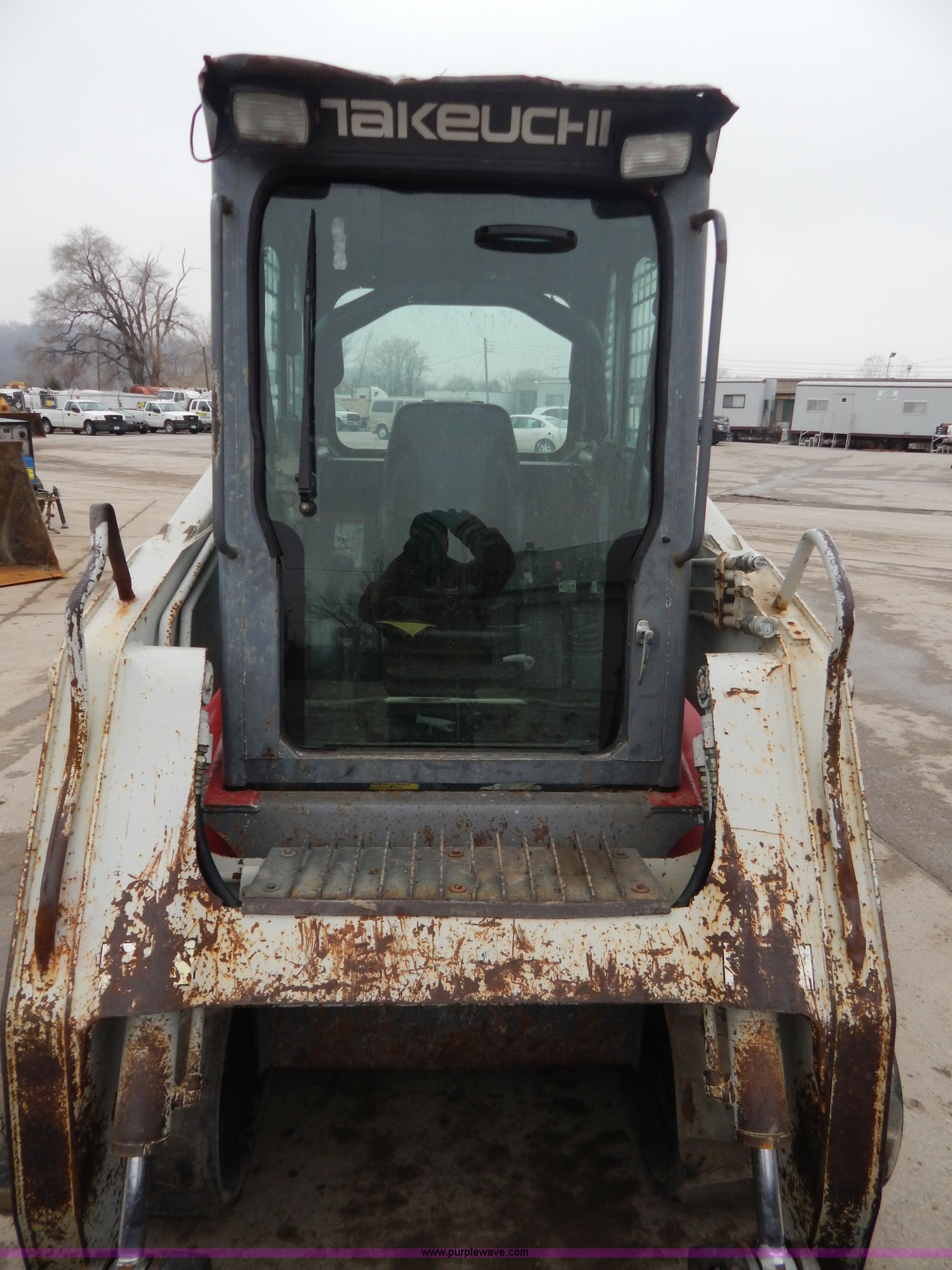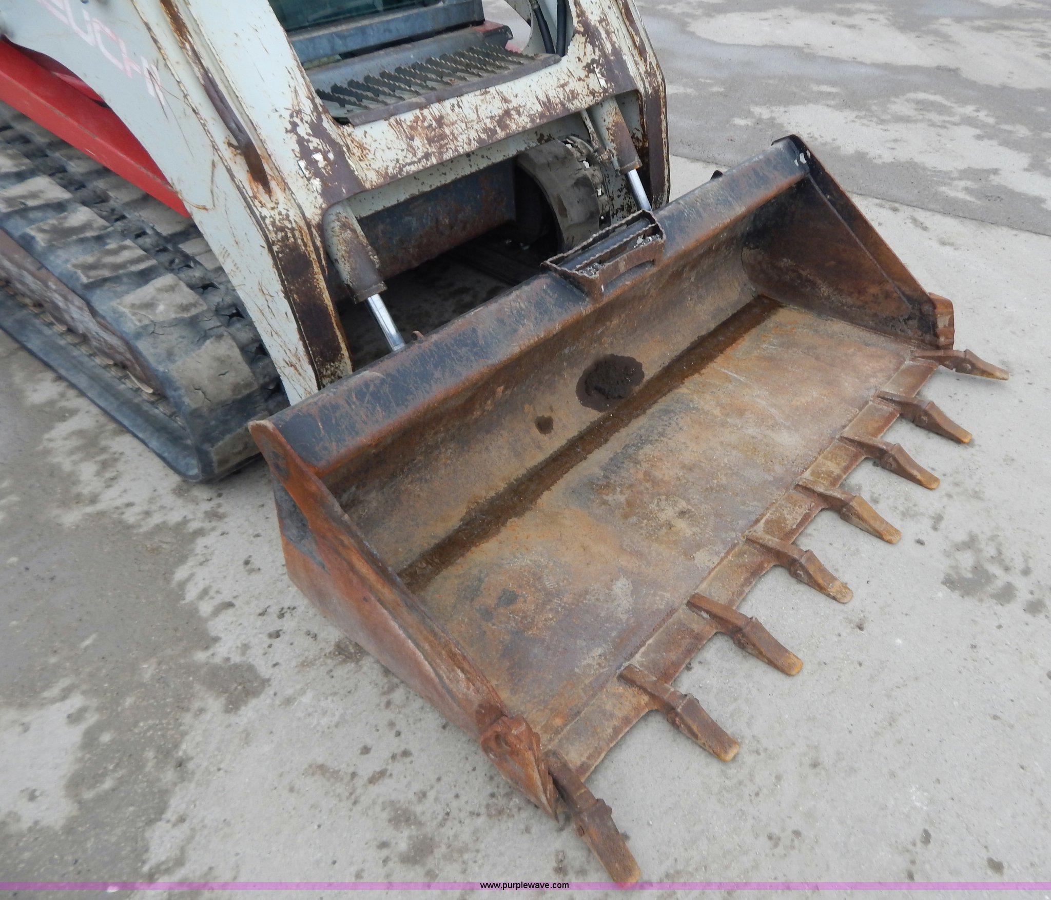 Purple Wave is selling a used Tracked Skid Steer Loader in Missouri. This item is a 2005 Takeuchi TL140 track skid steer with the following: 6,400 hours on meter, Isuzu AA-45G1T diesel engine, Enclosed cab, AC and heat, AC inoperable,, Work lights, Auxiliary hydraulics, 76"W bucket, (8) cutting teeth, 17" tracks, 9,769 lbs. base operating weight, Serial 21402175