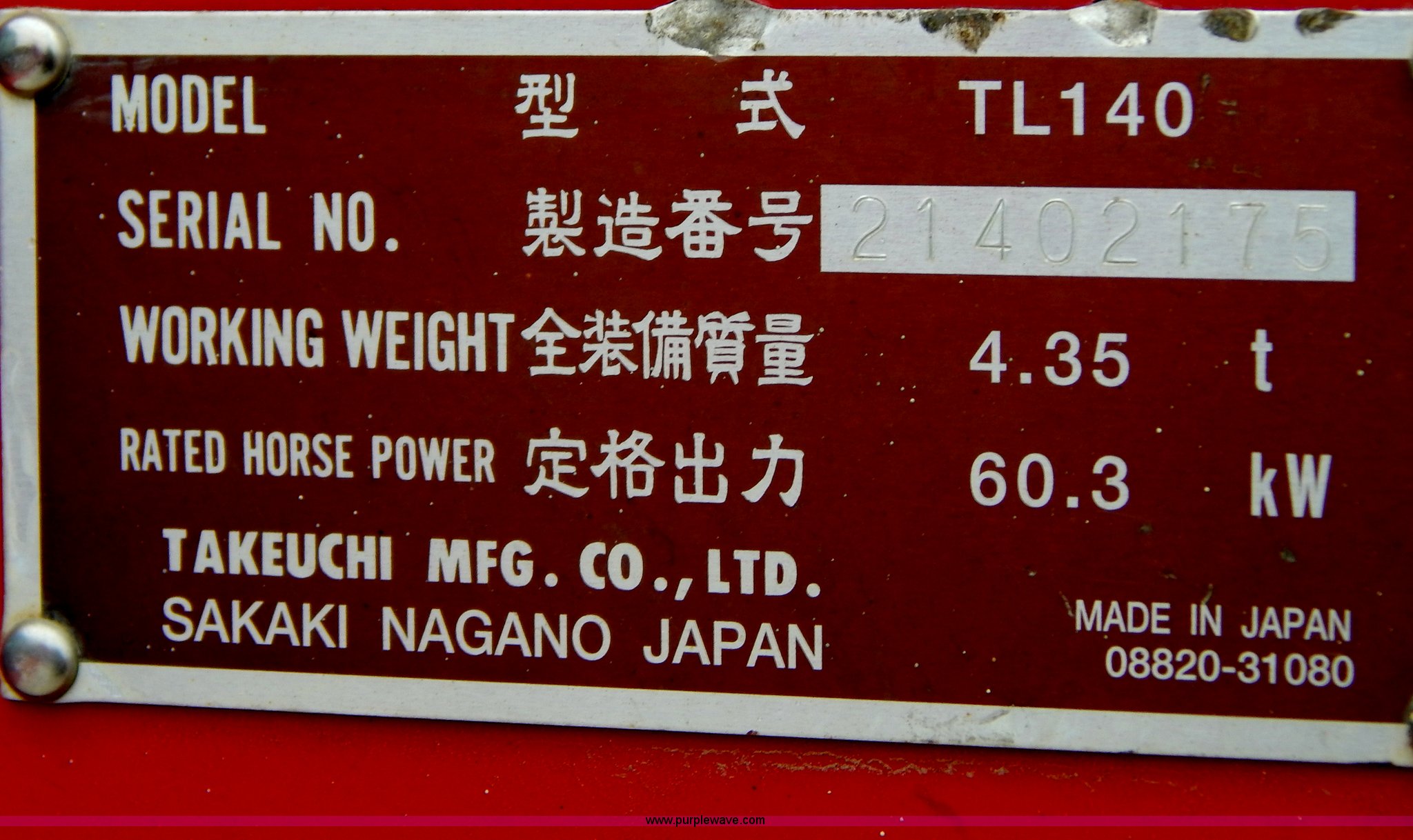 2005 Takeuchi TL140 track skid steer has sold in Kansas City, Missouri for $12100. Item H3839 sold on January 16th, 2014.