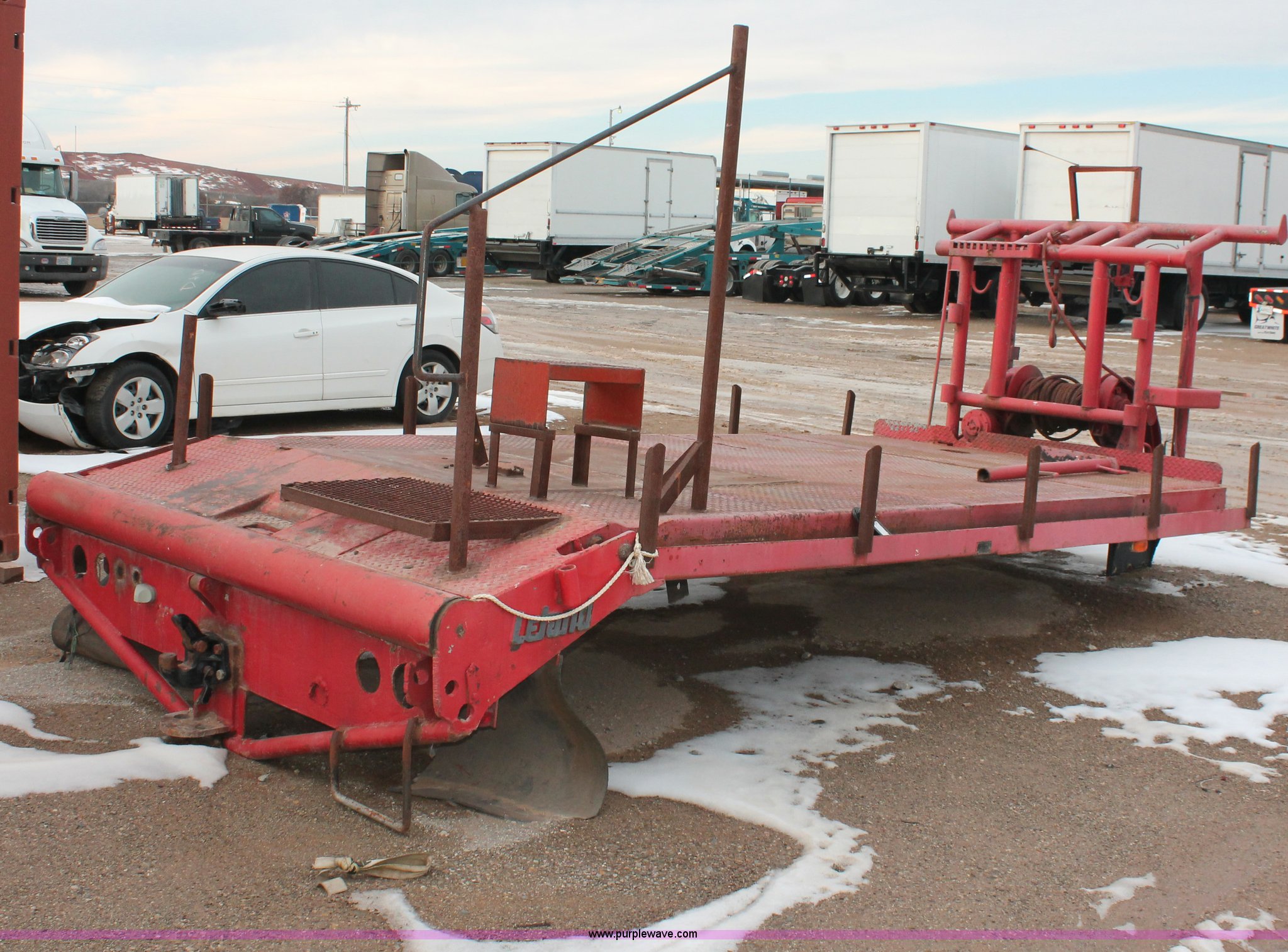 Purple Wave is selling a used Truck Part and Attach. in Oklahoma. This item is a Leland 684 gin pole flatbed with the following: 16'L x 8'W, 30" dovetail, Tulsa 50,000 lbs winch, Pintle hitch, Serial 7538