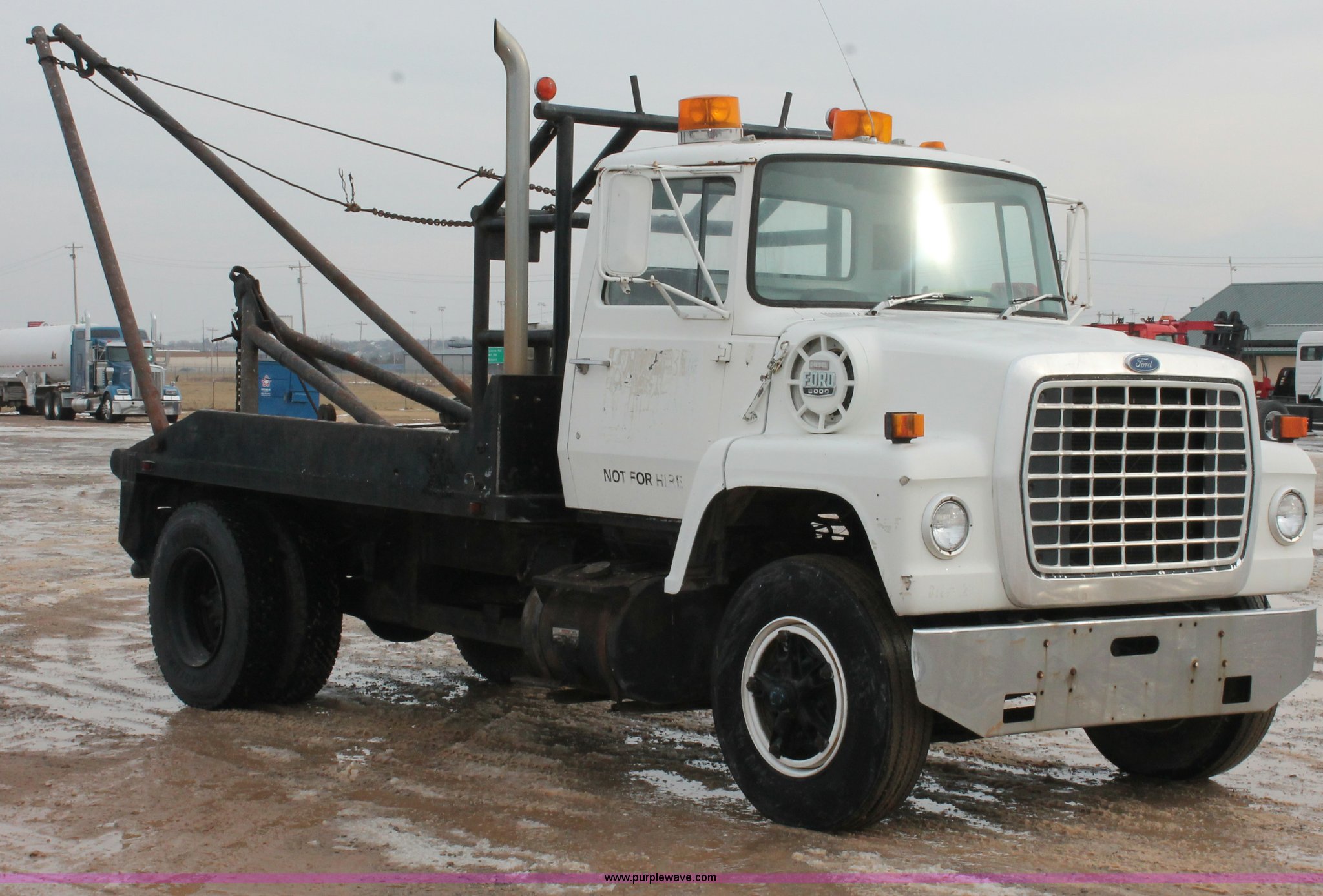 Purple Wave is selling a used Rollback or Tow Truck in Oklahoma. This item is a 1976 Ford 8000 gin pole truck with the following: 192,041 miles on odometer, Caterpillar 3208 diesel engine, 210 HP, Five speed manual transmission, Throttle lock, Heat, AM/FM/cassette, 11' bed, 15' gin pole, Tow bar, Winch, Single rear exhaust stack, 172" wheelbase, 11R22.5 tires, GVWR 50,000 lbs