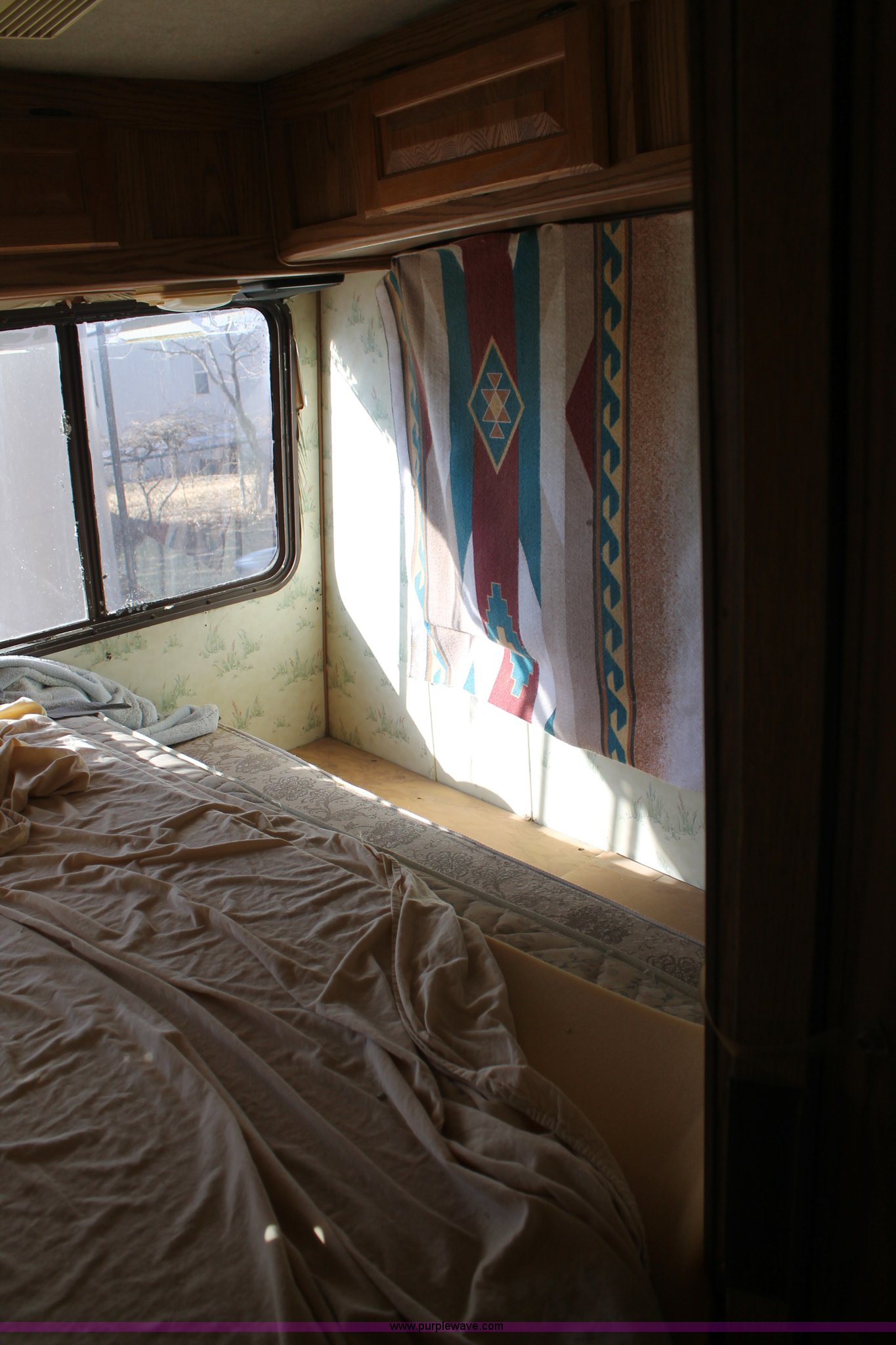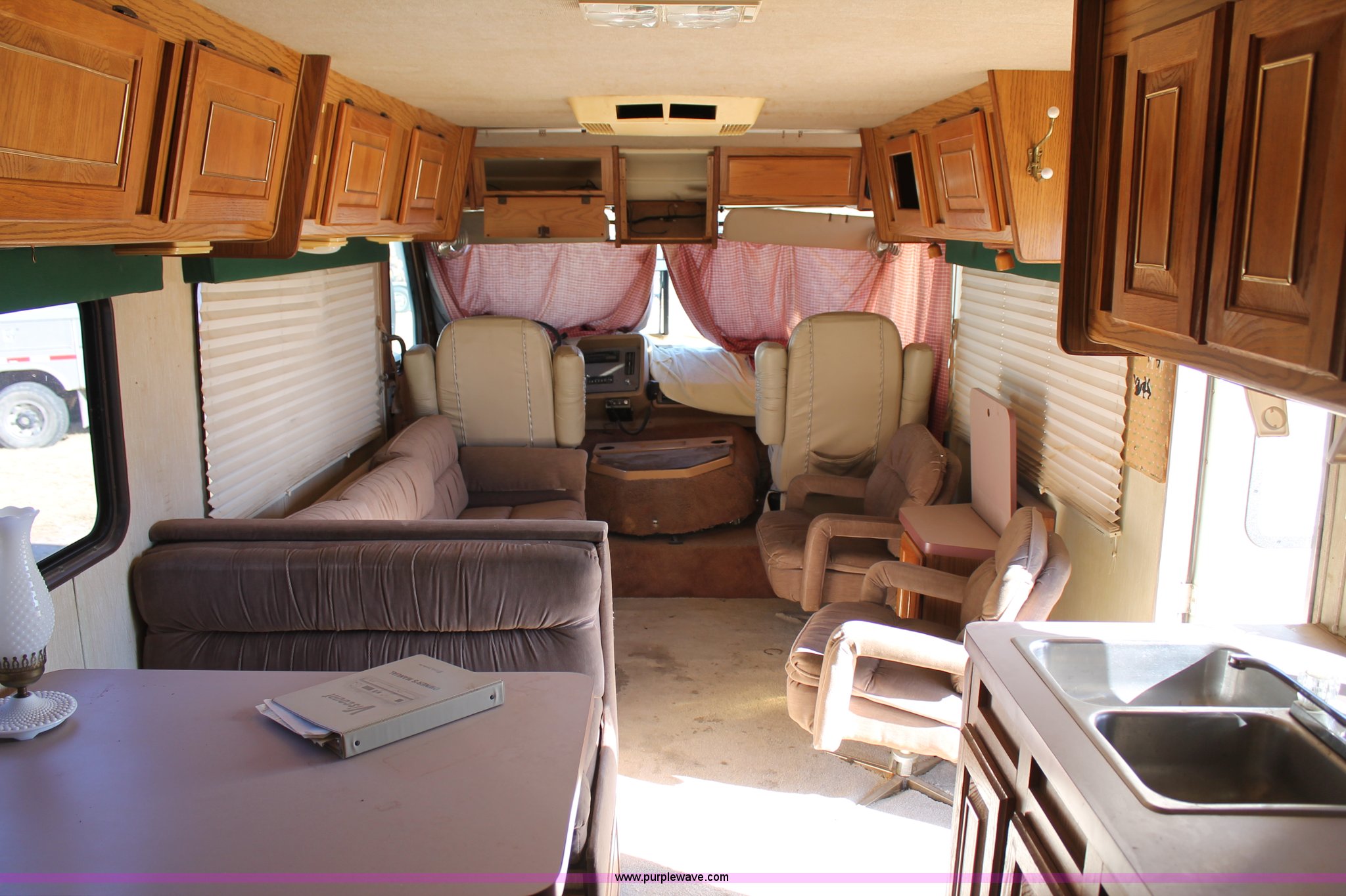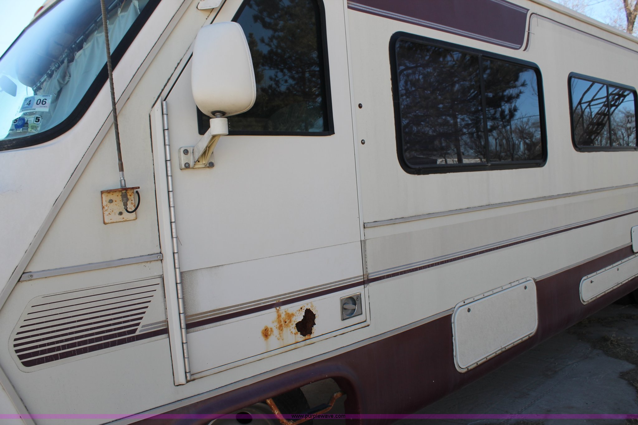 Purple Wave is selling a used RV in Texas. This item is a 1987 Chevrolet P30 Mobile Traveler 31' motorhome with the following: 76,806 miles on odometer, Chevrolet 454 C.I.D. V8 gas engine, Automatic transmission, AC and heat, On-board generator, Sink, Stove, Refrigerator, Overhead storage throughout, Full size shower, Bedroom, Couch folds into bed, Dining seats fold into bed, Bathroom, Sink and toilet, Front captains chairs, AM/FM/cassette, CB radio, Chrome wheels, 8R19.5 tires, GVWR 14,500 lbs, FAWR 5,000 lbs, RAWR 9,800 lbs