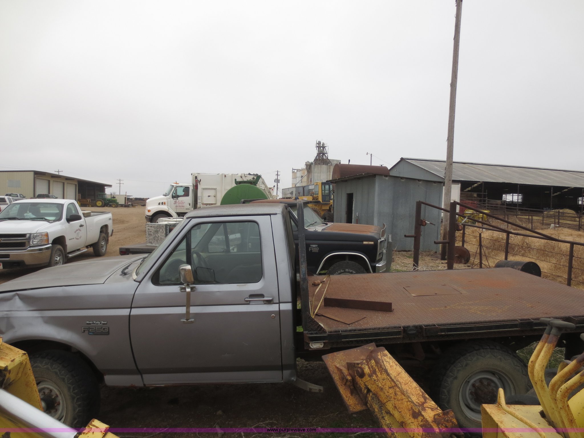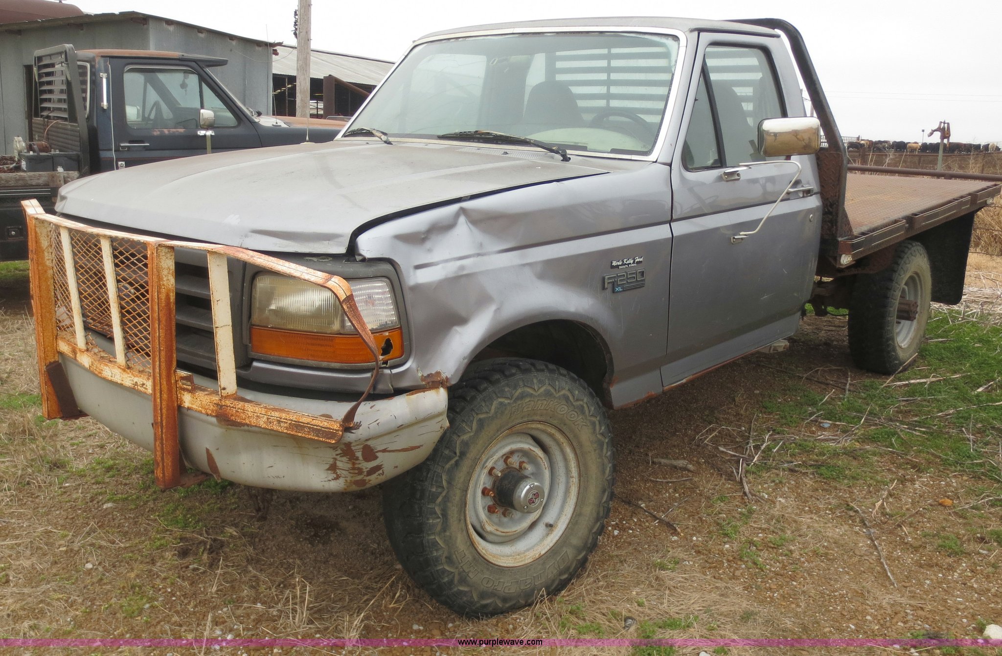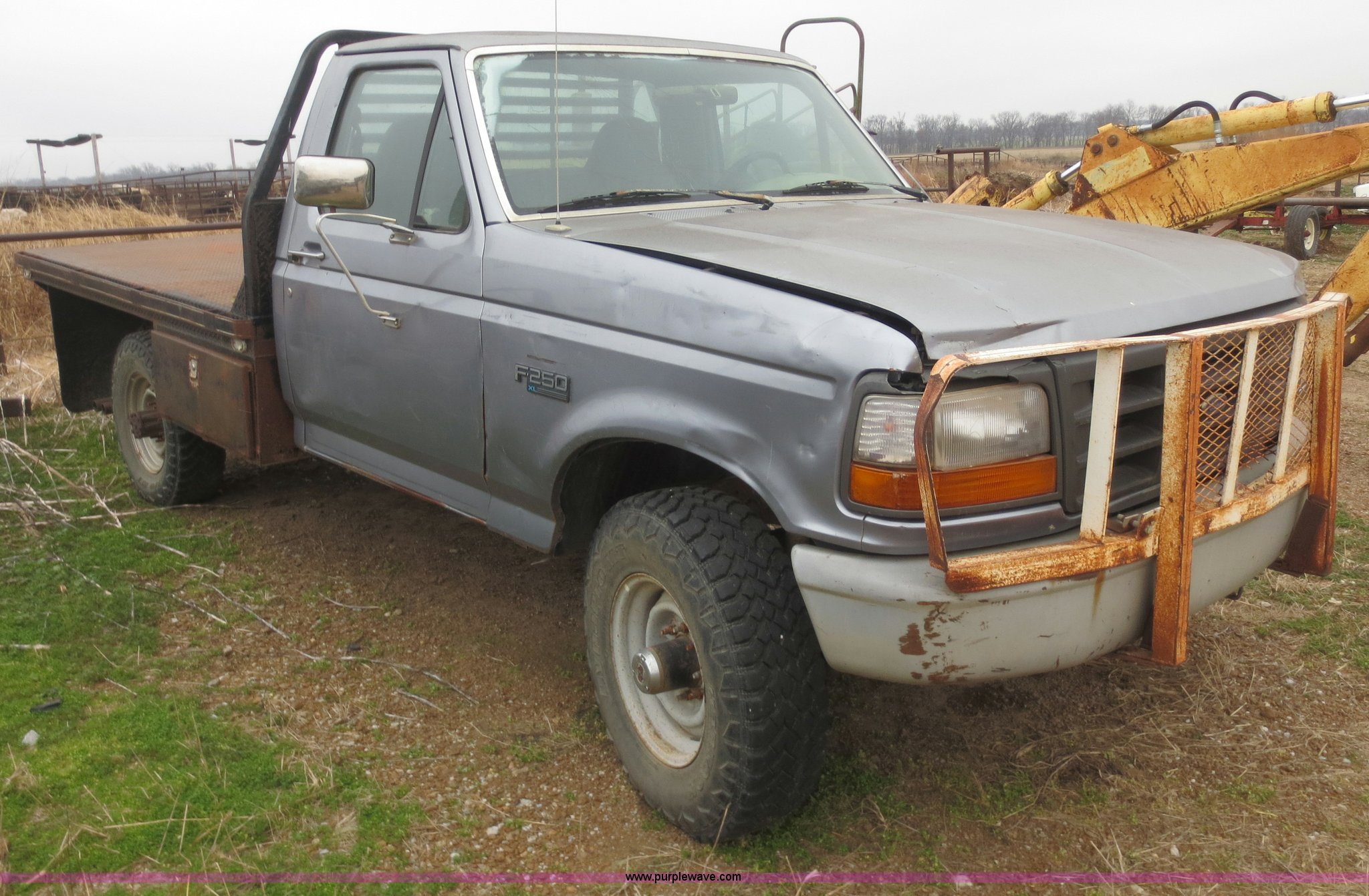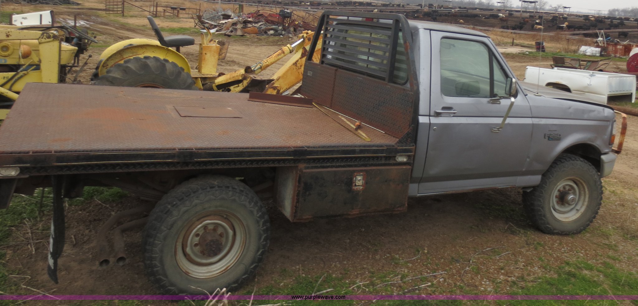 Purple Wave is selling a used 3/4 or 1 Ton Pickup or Van in Kansas. This item is a 1996 Ford F250 HD XL flatbed truck with the following: Unknown miles on odometer, 5.8L V8 OHV 16V gas engine, Automatic transmission, Four wheel drive, Heat, AM/FM, Manual windows and locks, Vinyl interior, Trailer wiring, LT235/85R16 tires, Wreck damage, Has not ran in three years