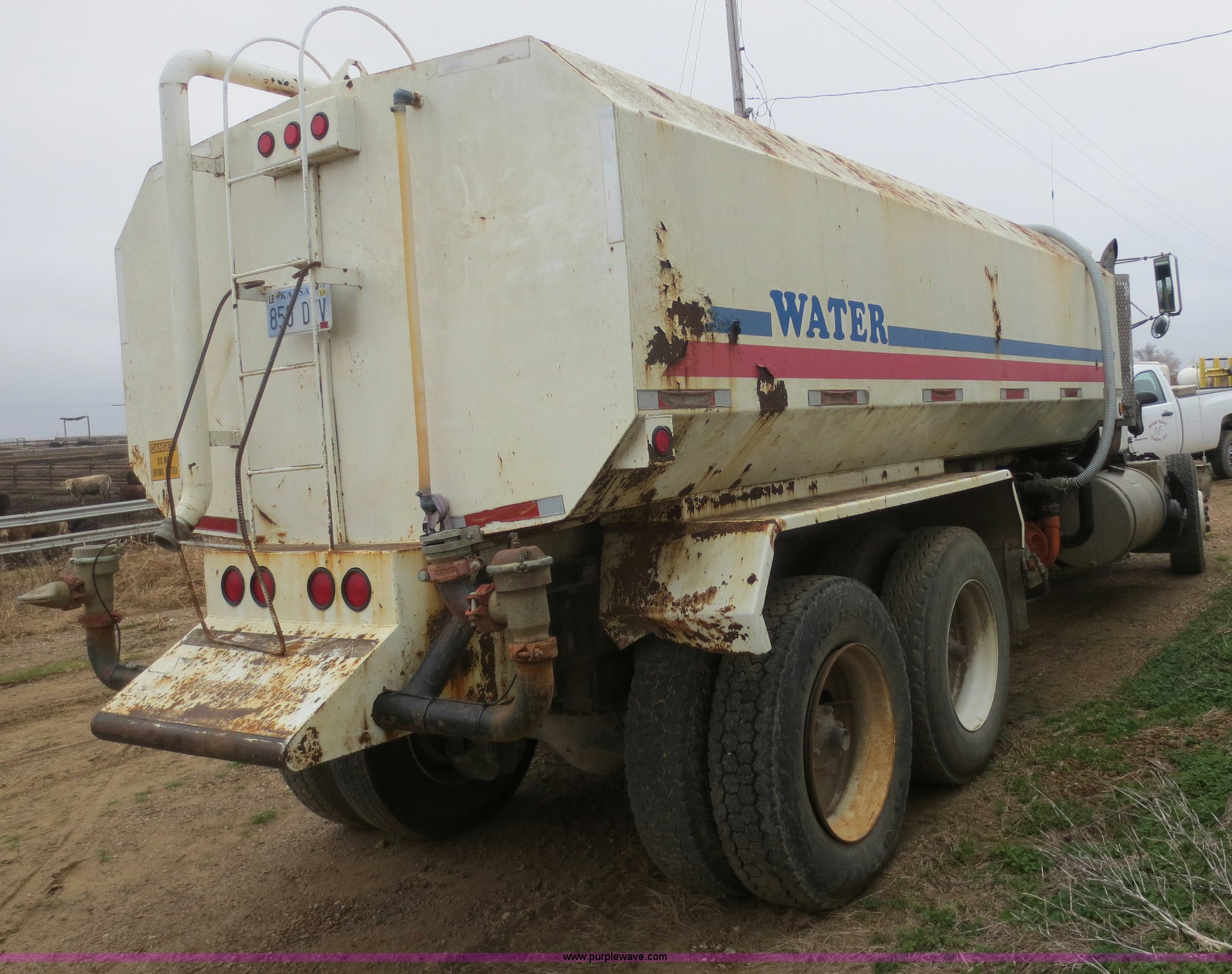 Purple Wave is selling a used Tank Truck or Water Truck in Kansas. This item is a 1987 Mack RW713 water truck with the following: 151,149 miles on odometer, 8,144 hours on meter, Cummins six cylinder turbo diesel engine, Head gasket leak, AC and heat, AC inoperable, Front and rear sprayer bars, Berkley 832 RPM water pump, Hydraulic driven, PTO, Camelback spring suspension, 11R24.5 tires, No hood, Minor wreck damage, Starter inoperable, Unit# 3-94