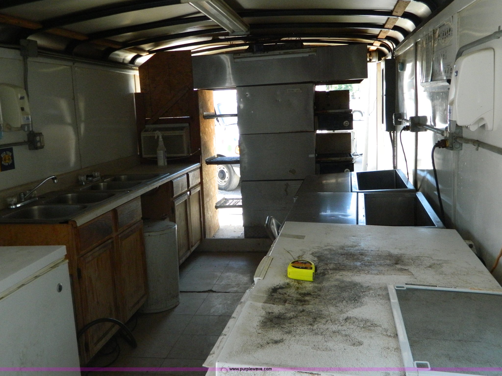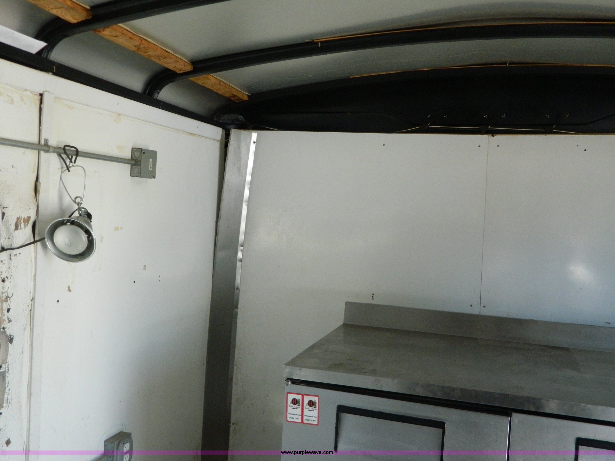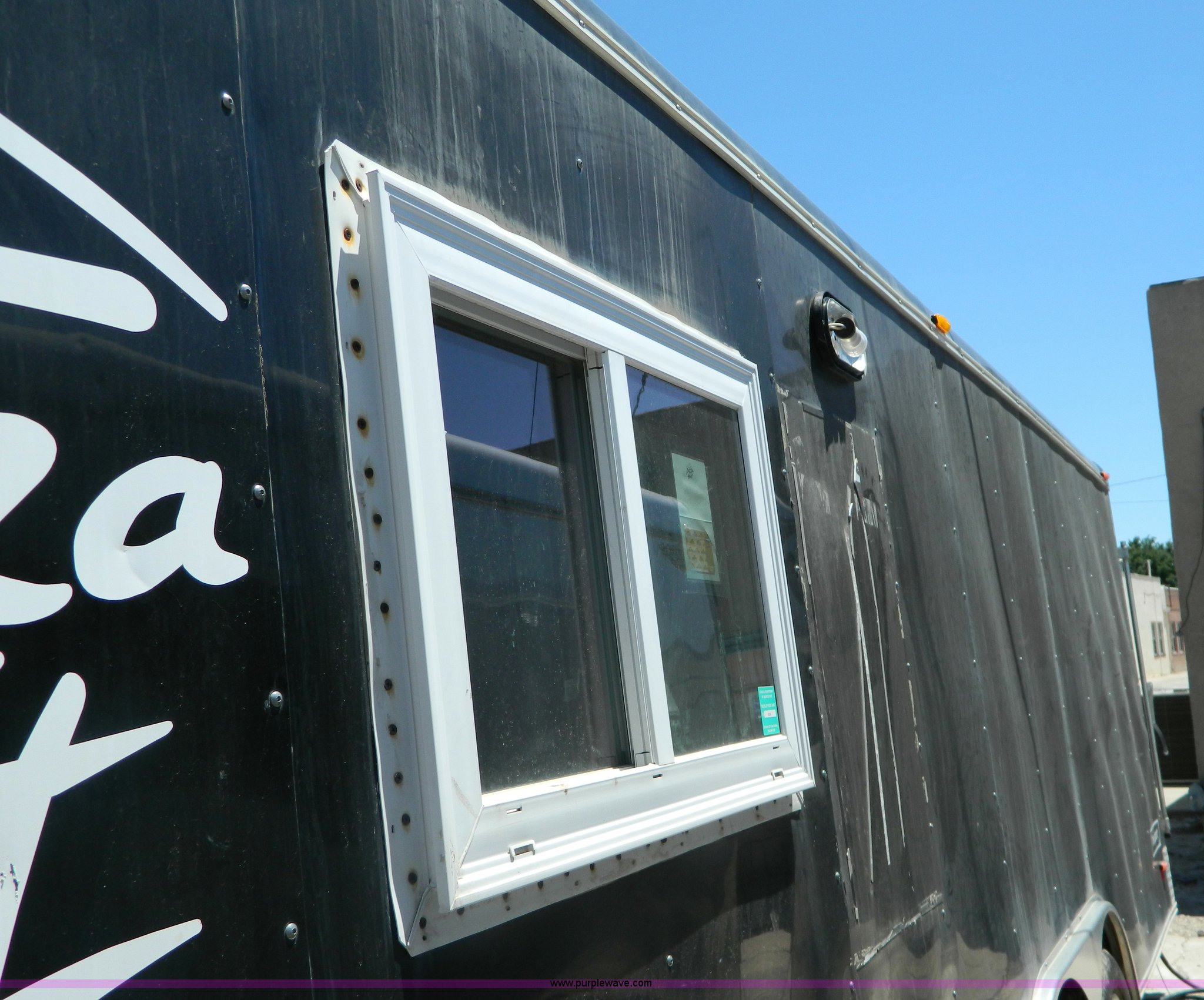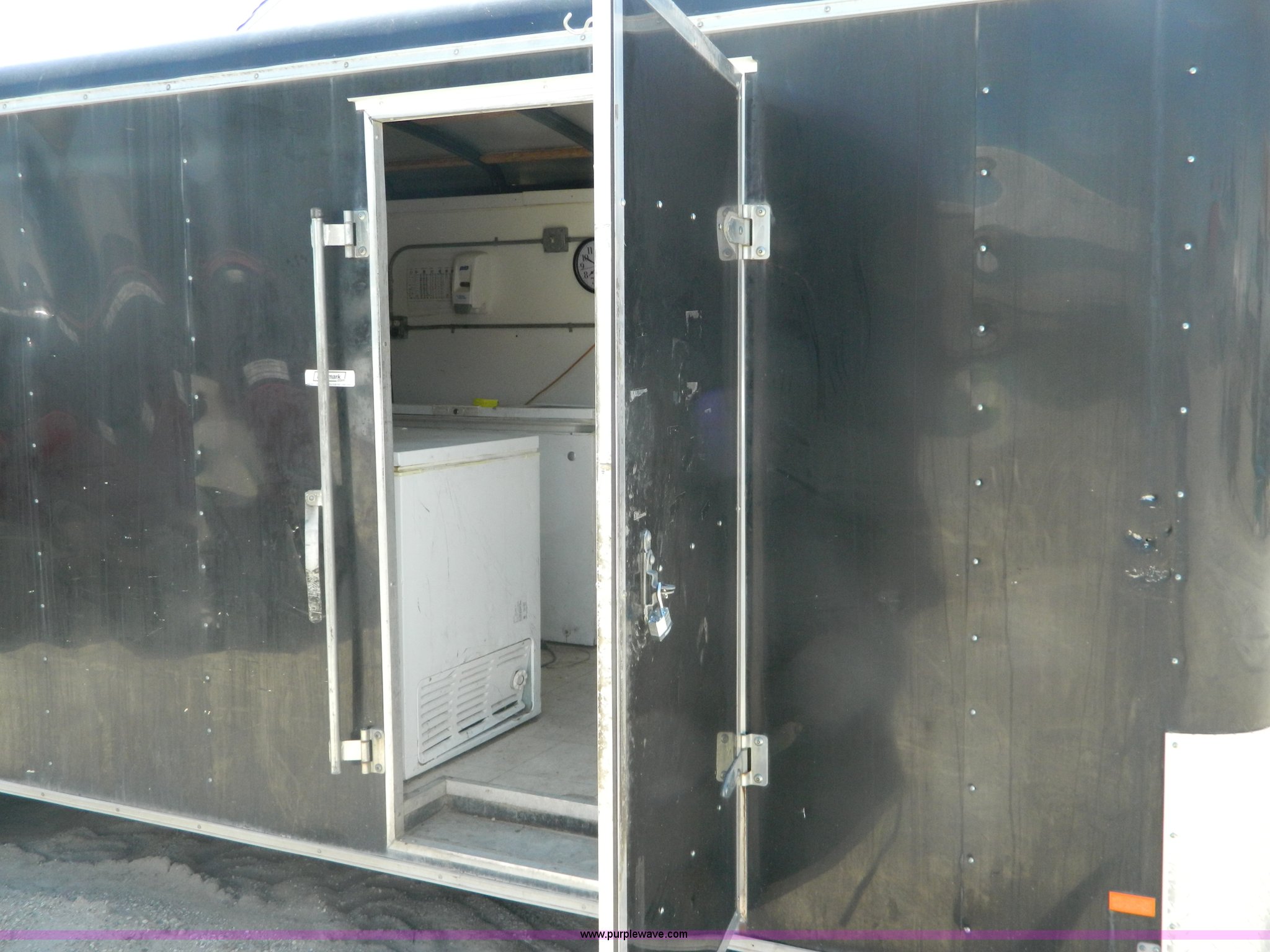 Purple Wave is selling a used Enclosed Cargo Trailer in Kansas. This item is a 2006 Haulmark TSC85X24WT2 24' enclosed trailer with the following: Curb side door, Drop rear ramp door, Serving window, Window air conditioner unit, LP gas line, Lincoln pizza ovens, Roof has exhaust fan hole, 2 5/16" ball hitch, ST205/75R15 tires, GVWR 7,000 lbs, Cosmetic damage, Contents included, Unknown operating condition of all contents