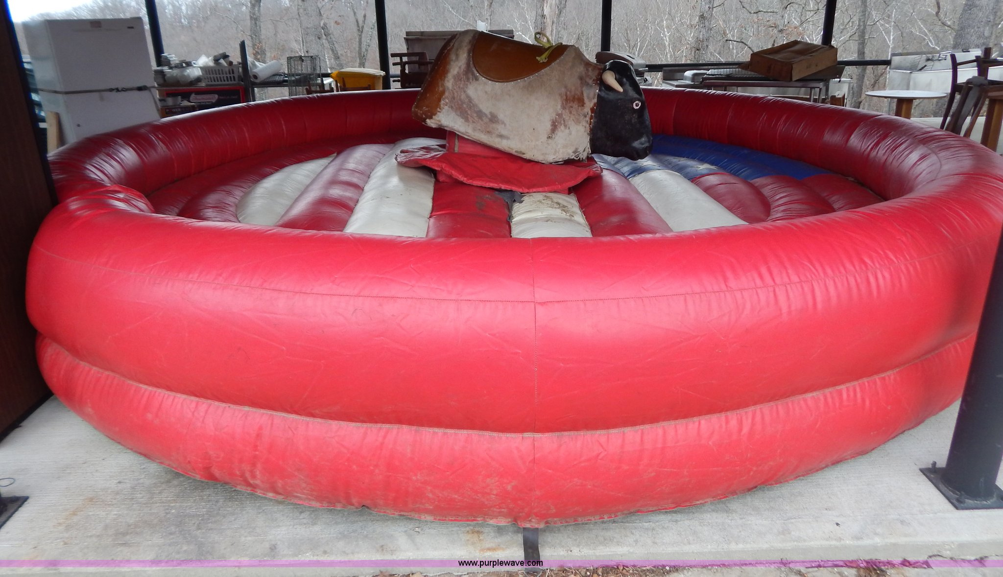 Purple Wave is selling a used Sporting Goods in Missouri. This item is a Mechanical bull with the following: 120V fan, 220V mechanical bull, Approx. 20' in diameter