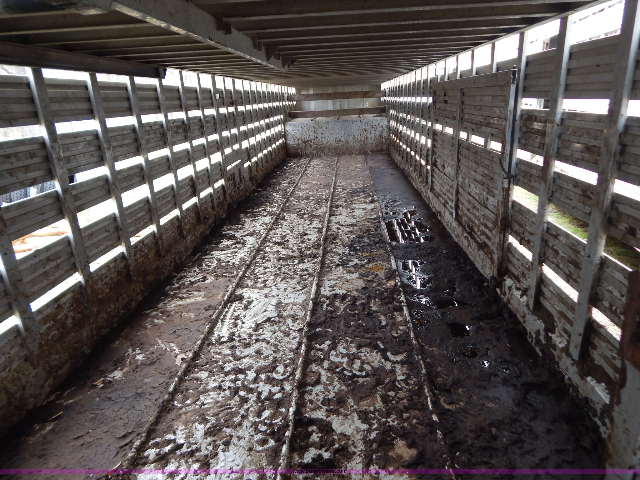 1975 American 48' cattle pot trailer. 36"W rear door, Double deck, Manual jack, Rear mud flaps, Spring suspension, Air brakes, 11R24.5 tires Recently replaced, GVWR 54,000 lbs. 27948. Circle C Equipment. 142 Sig Bass Rd. Cherryville, MO 65446