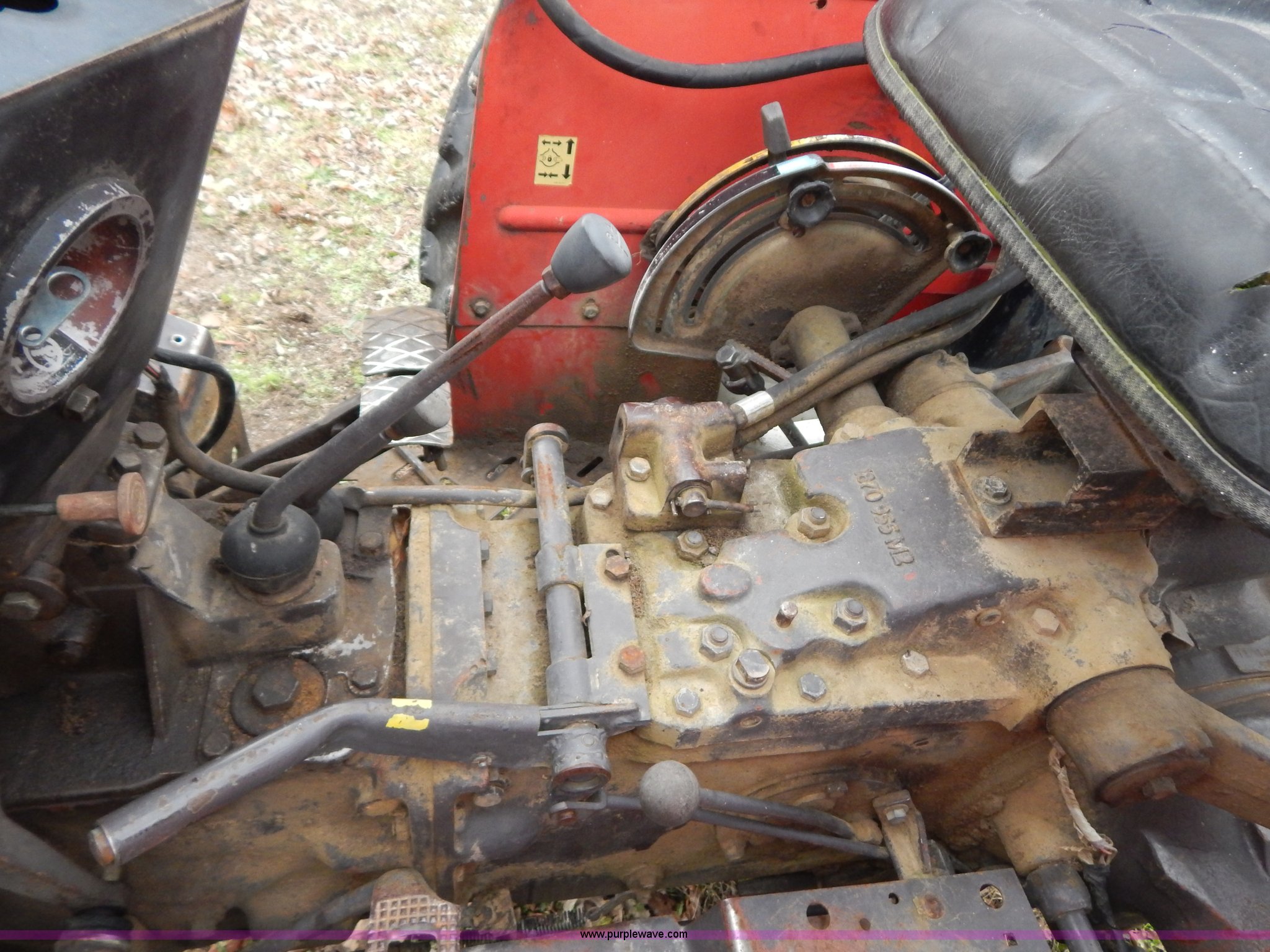 Purple Wave is selling a used Tractor in Missouri. This item is a Massey-Ferguson 231 tractor with the following: 2,395 hours on meter, Three cylinder diesel engine, Four speed manual transmission, Koyker 210 loader, 61"W loader bucket, 44" bale spike attachment, 540 PTO, Three point, Draw bar, 265/75R16 front tires, 14.9-28 rear tires, Serial R30023