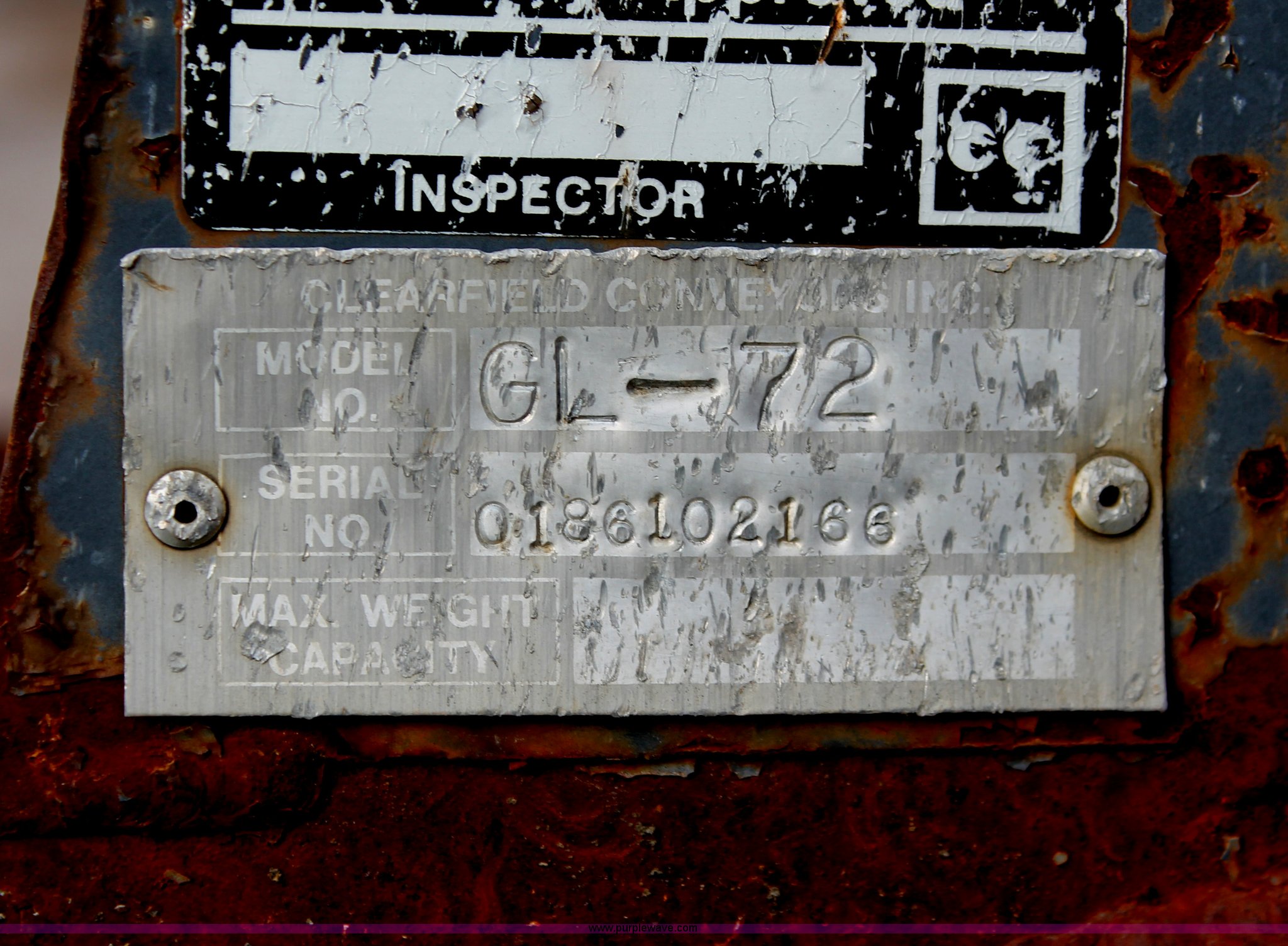Clearfield GL-72 mobile conveyor has sold in Wichita, Kansas for $1485. Item H8352 sold on January 22nd, 2014.