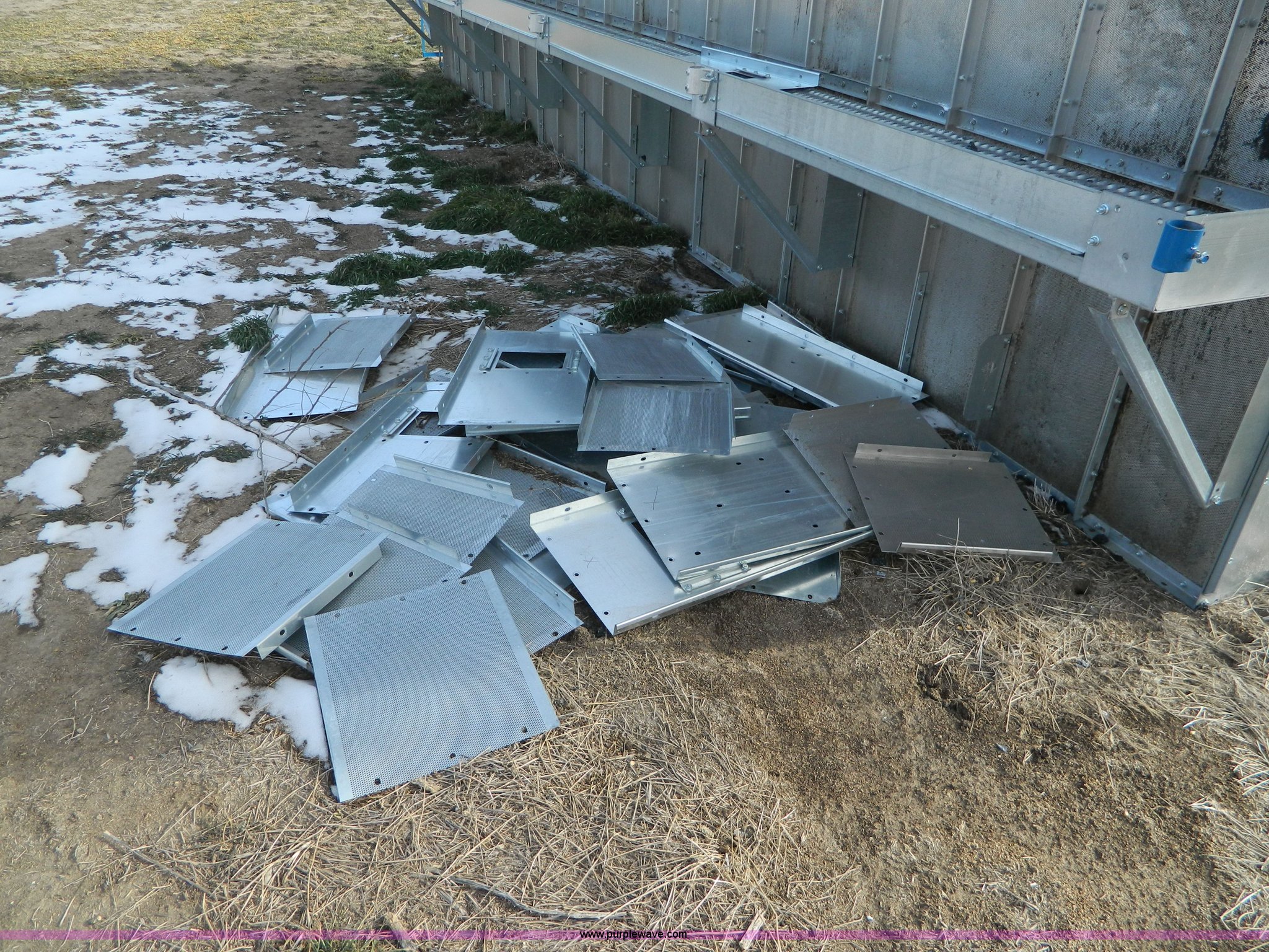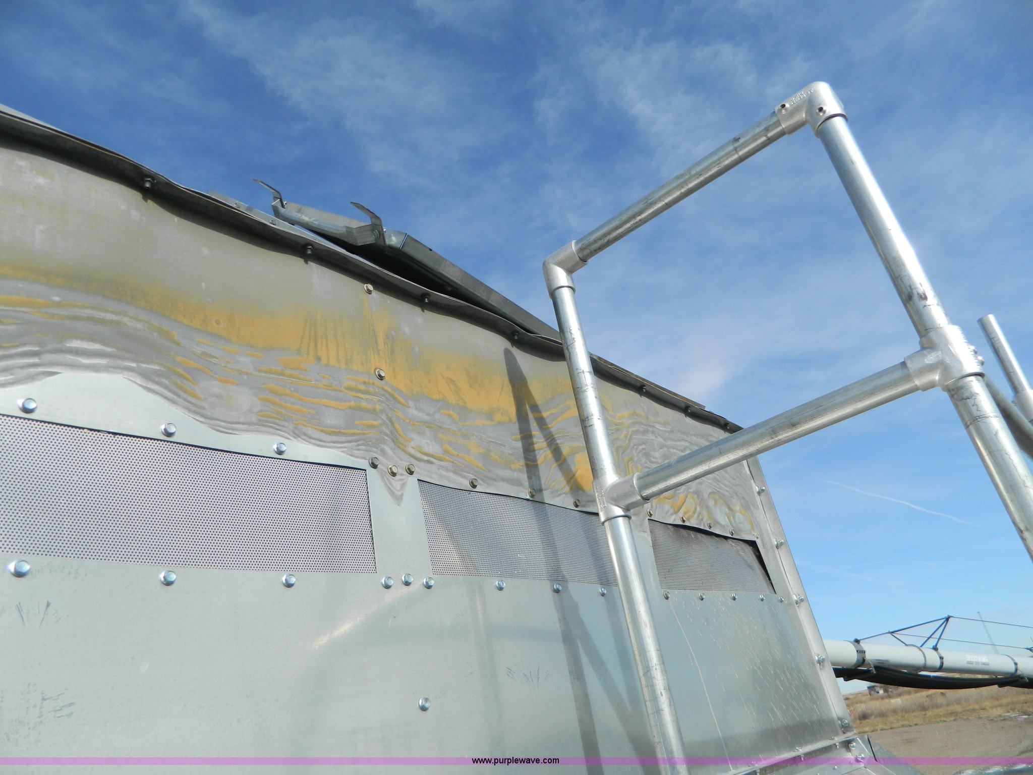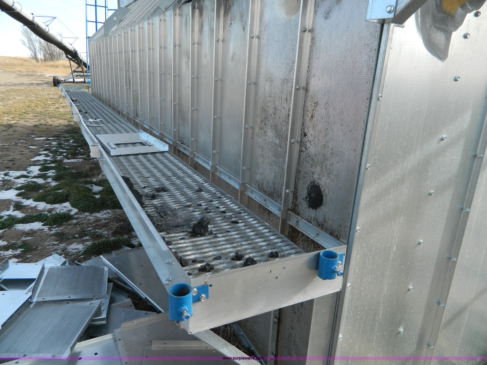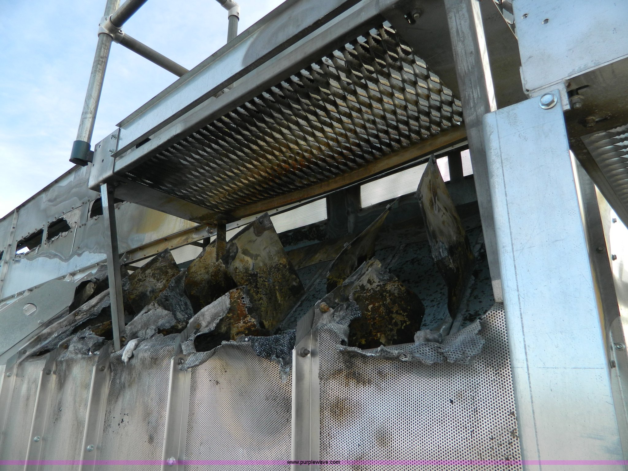 Purple Wave is selling a used Grain Dryer in Kansas. This item is a Delux grain dryer with the following: 25'L x 92"W x 148"H, (2) 22" catwalks, Aluminum and galvanized steel construction, Unknown condition, Removed from DPX16GT unit, Fire damage, Insurance salvage