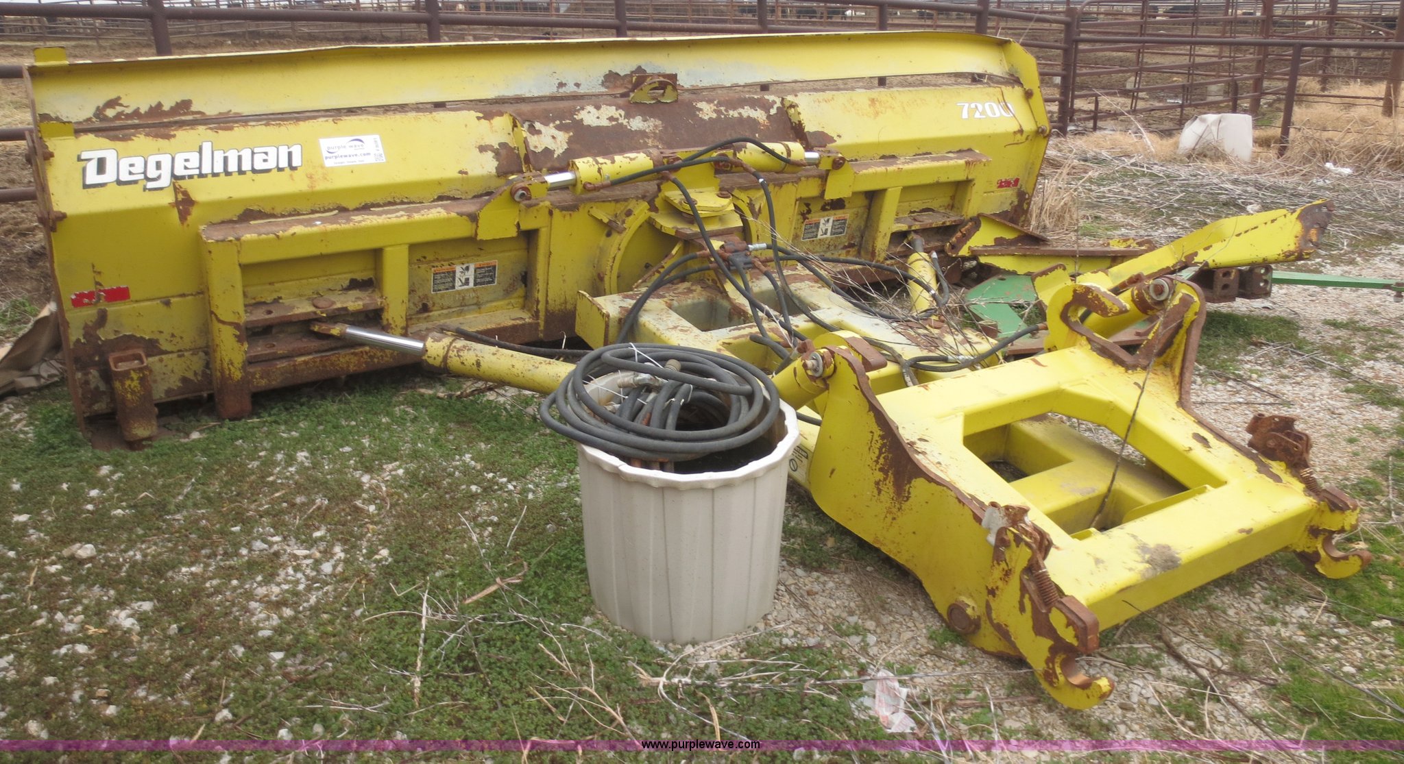 Purple Wave is selling a used Ag Tractor Loader or Attach. in Kansas. This item is a Degelman 7200 14' dozer blade with the following: Six-way tilt, Brackets and hoses included, Removed from a John Deere 9200 tractor