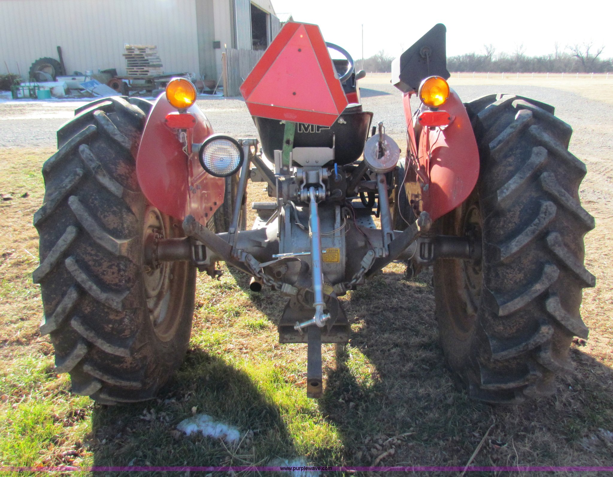 Purple Wave is selling a used Tractor in Oklahoma. This item is a 1982 Massey-Ferguson 230 tractor with the following: 839 hours on meter, Three cylinder diesel engine, 3F-1R gears, Hi-Low ranges, 540 PTO, Three point, Top link included, Draw bar, One rear hydraulic remote, 6.00x15SL front tires, 13.6x28 rear tires, Serial 9A352287