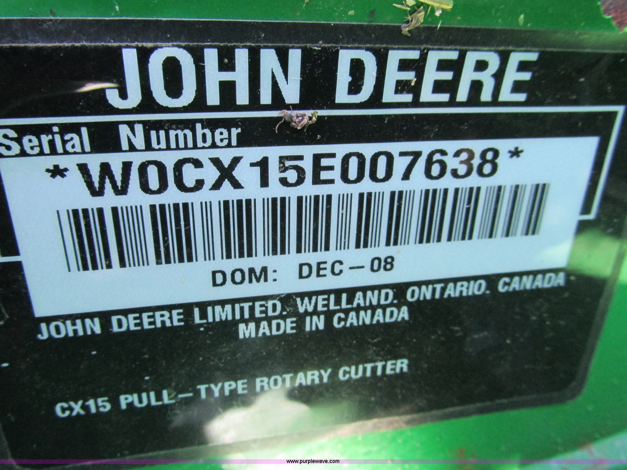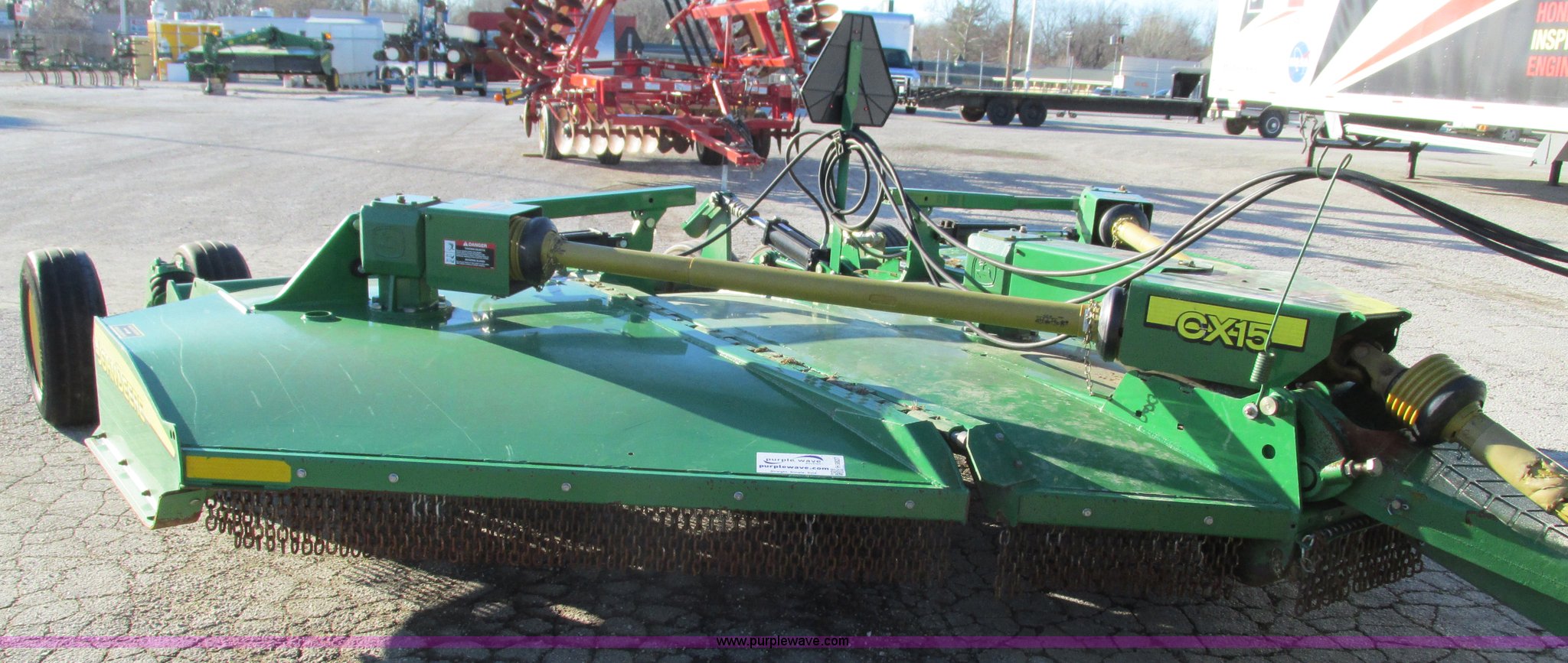 Take a look at this used 2009 John Deere CX15 batwing mower being sold on January 29th, 2014 in the SOLD! January 29 Ag Equipment Auction made by John Deere. Take a look at all of the item information below or take a look at similar auctions for Mowers and Other Ag Equipment.