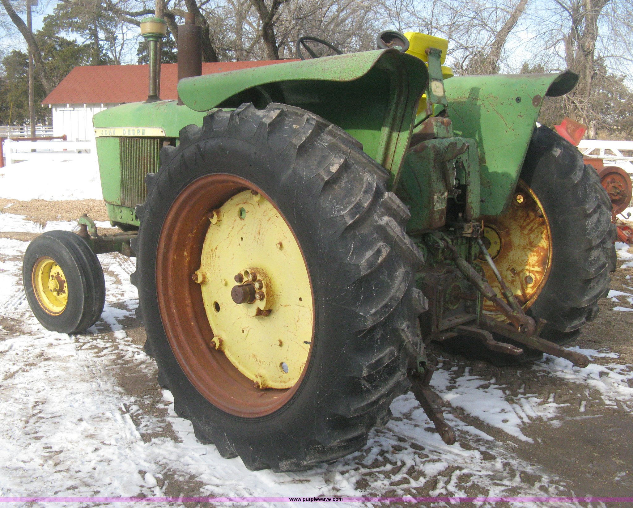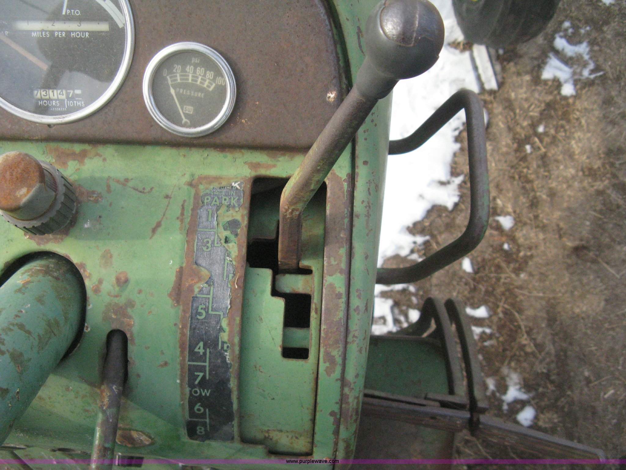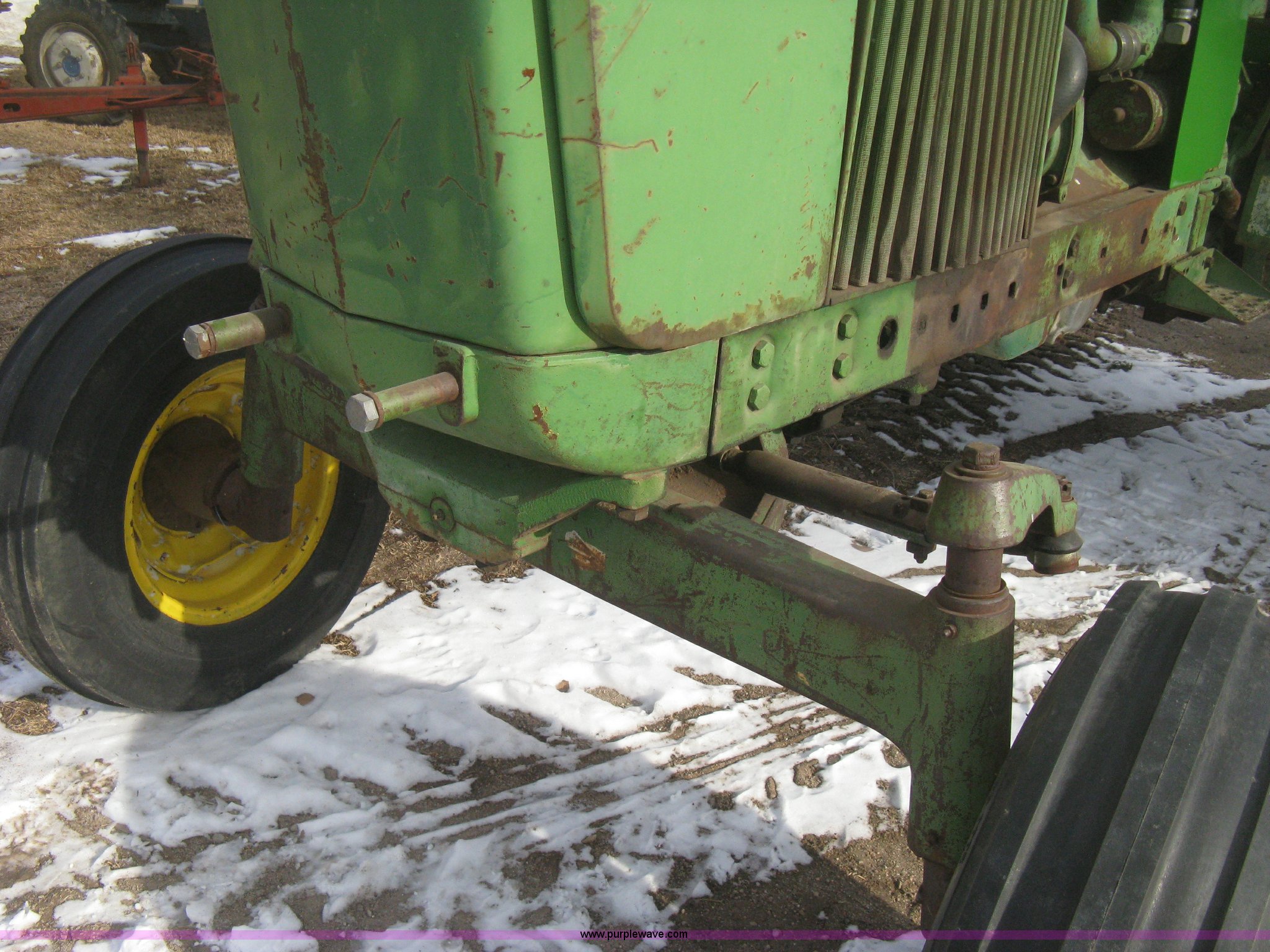 Purple Wave is selling a used Tractor in Kansas. This item is a 1962 John Deere 3010 tractor with the following: 7,314 hours on meter, Four cylinder LP engine, Eight speed transmission, Two speed reverse, Three point, Top link included, Draw bar, 540 PTO, Rear hydraulic remotes, Akuret 7.5L-15 front tires, Titan 15.5-28 rear tires, Recently replaced tires and seat, Regulator needs some work, Serial 3010-11T25714