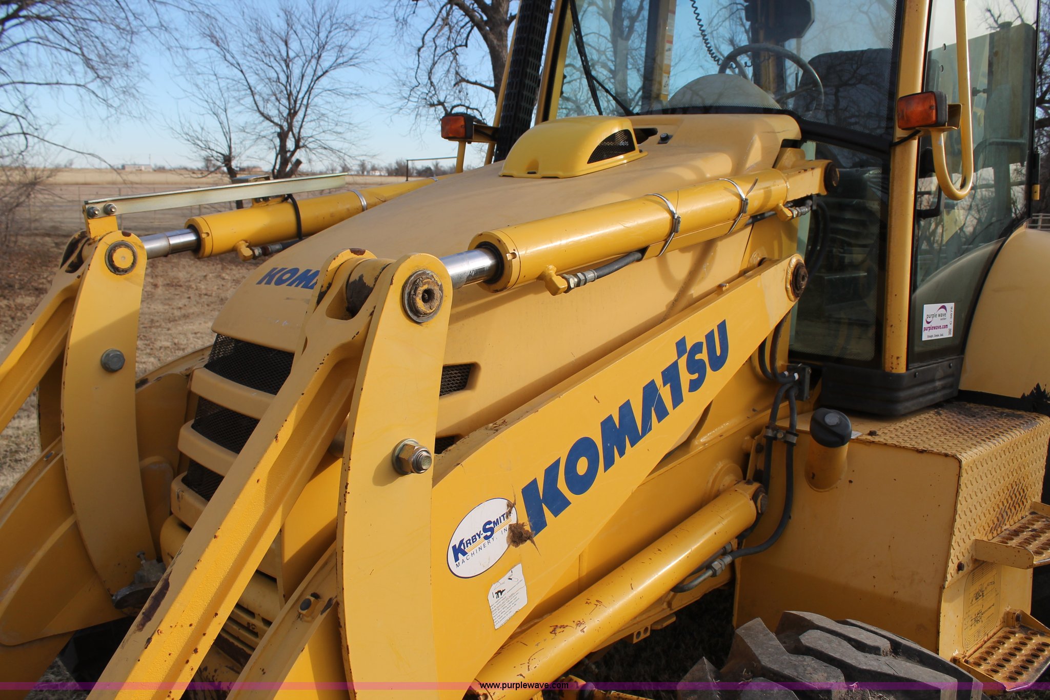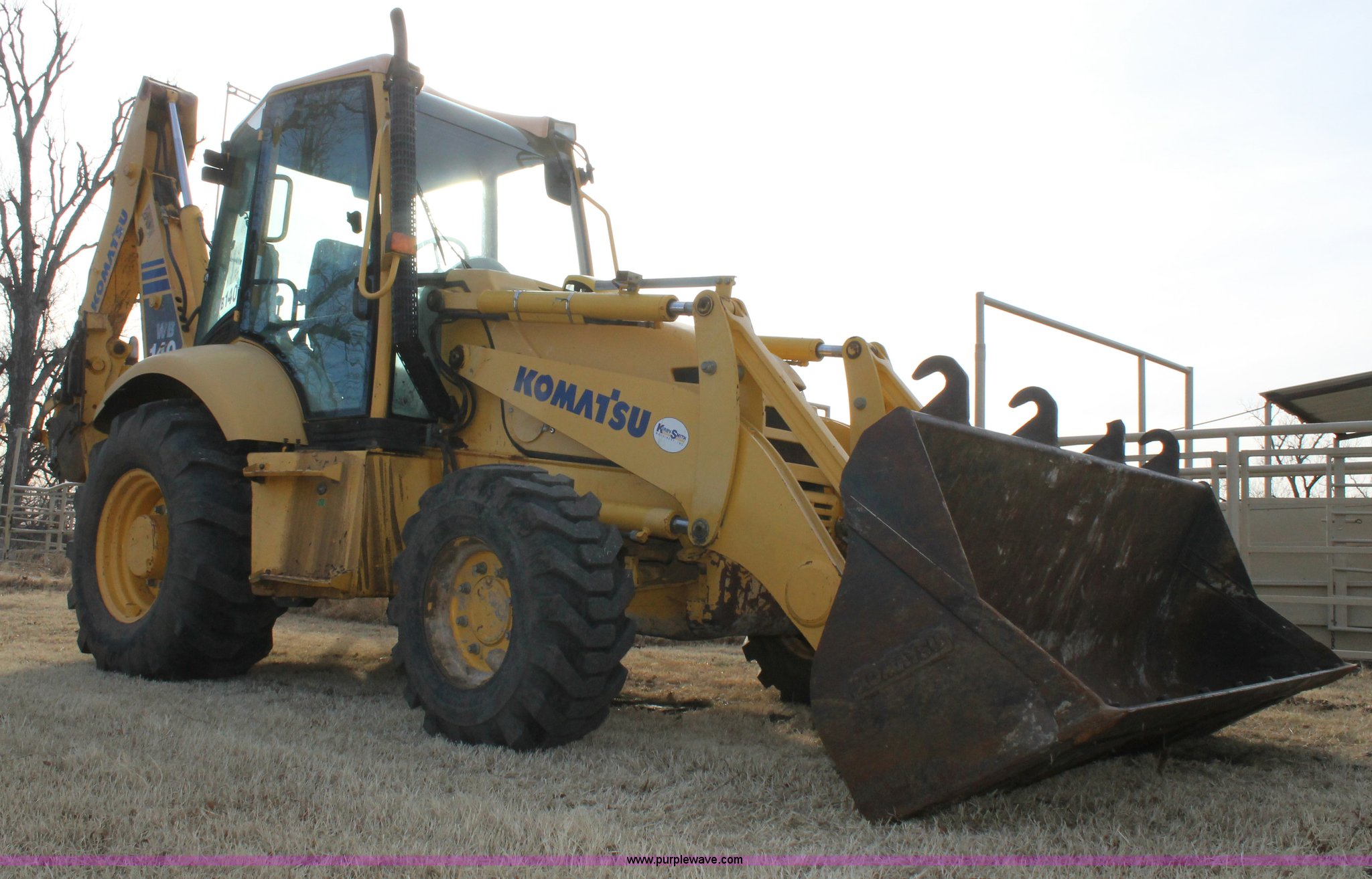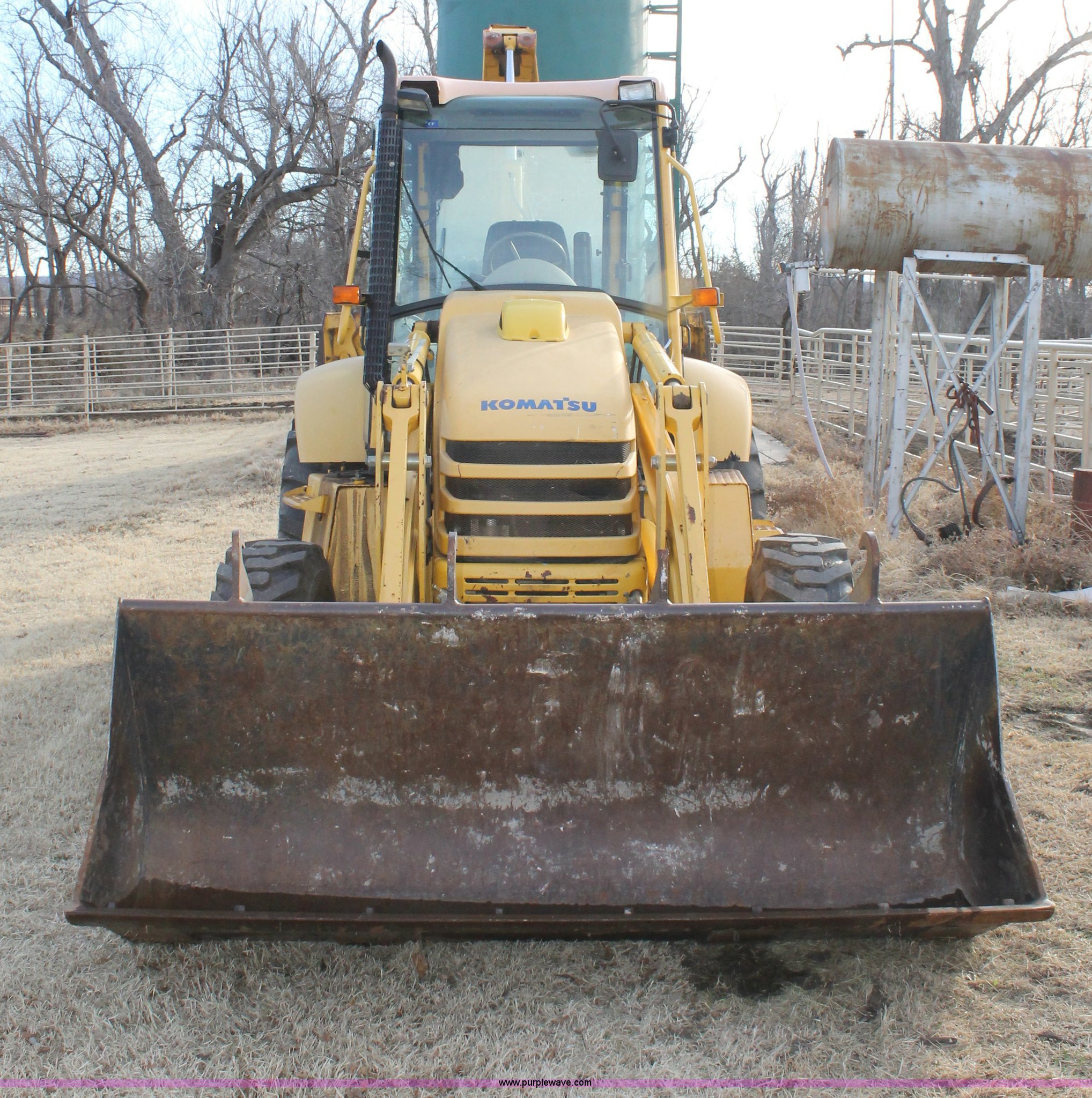 Purple Wave is selling a used Tractor Loader Backhoe in Oklahoma. This item is a Komatsu WB140-2N backhoe with the following: 3,091 hours on meter, Komatsu S4D106-2XFH 269 C.I.D. four cylinder diesel engine, 93 HP, Serial 16205, Powershift transmission, 4F-4R gears, Four wheel drive, AC and heat, Backup alarm, Spring suspension seat, Windshield wipers, Tilt steering wheel, Front and rear work lights, 7.5'W bucket, Bolt-on cutting edge, Bucket leveler, 12" and 24" bucket, Manual coupler, Bolt-on cutting edge, Teeth, Serial A20078