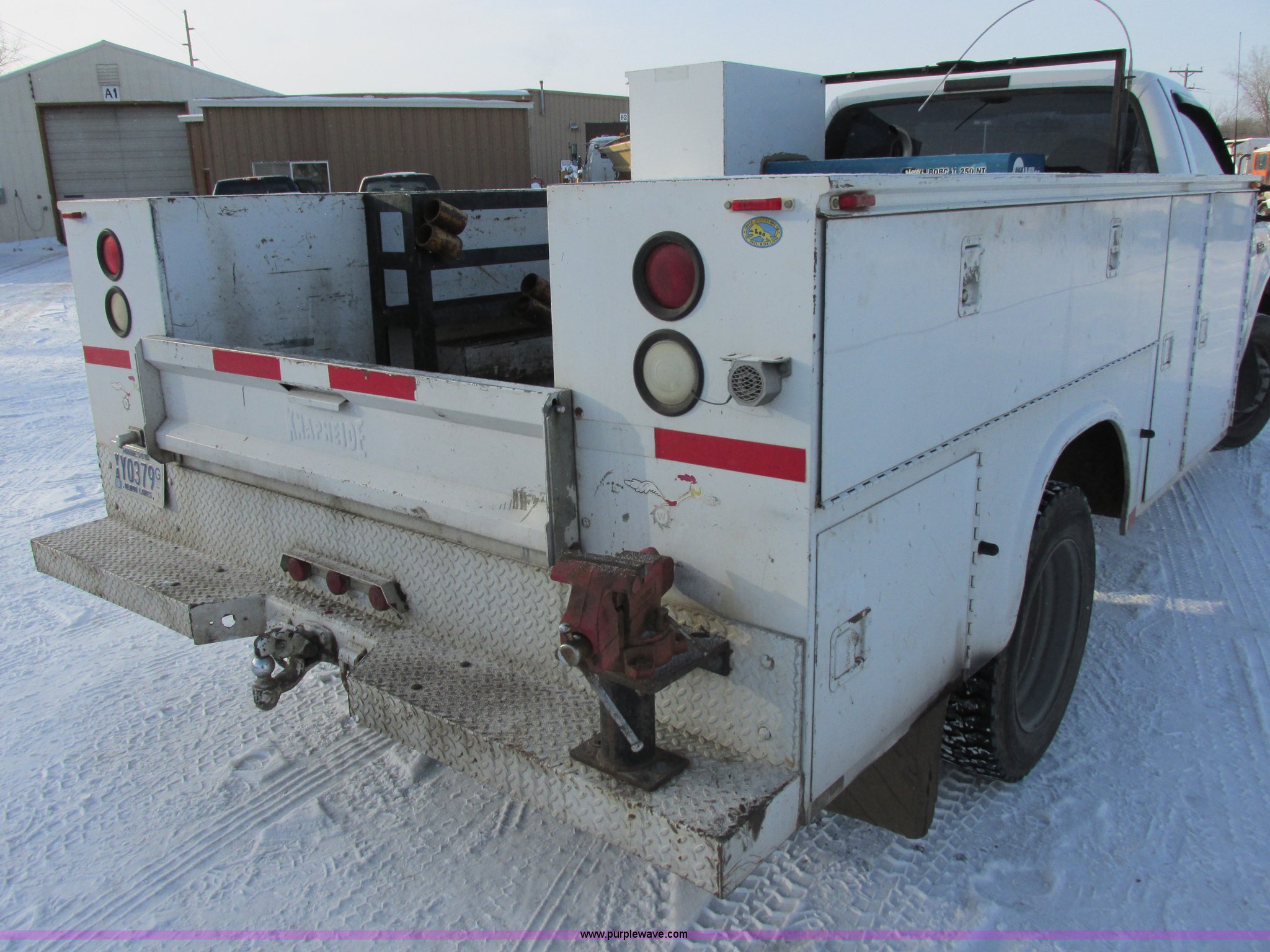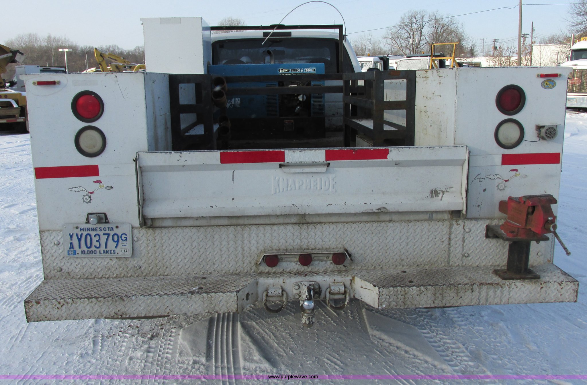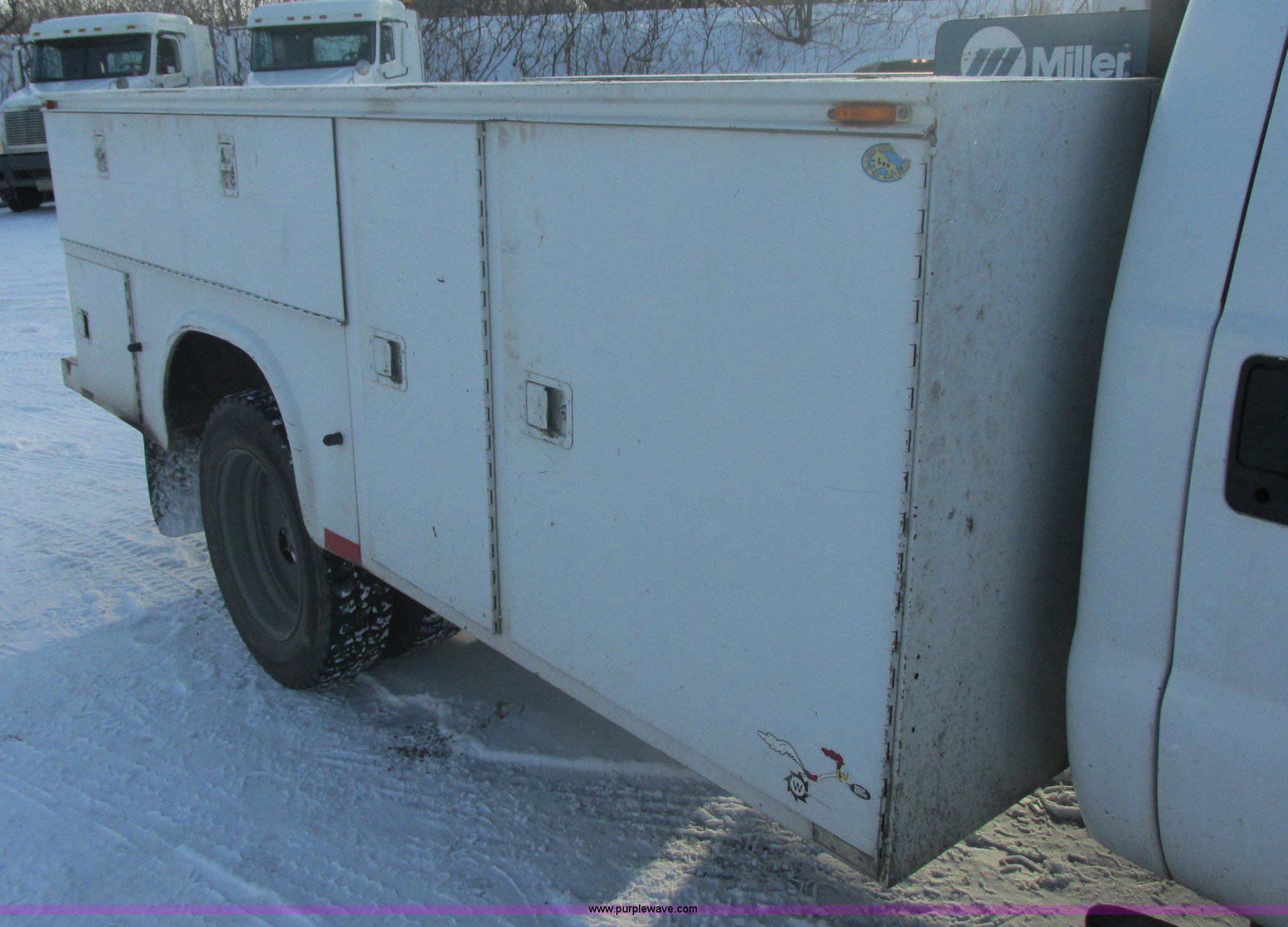Purple Wave is selling a used Service Truck in Minnesota. This item is a 2000 Ford F450 Super Duty utility truck with the following: 200,884 actual miles, 7.3L V8 turbo diesel engine, Six speed manual transmission, AC and heat, AM/FM, Manual windows and locks, Cloth interior, Block heater, Backup alarm, Knapheide 11' steel utility bed, Storage racking, Rear bumper vise, Miller Bobcat 250 NT generator/welder, 213 hours on meter, 10,000 watts, Leads, Serial LC143119,, Front tow hooks, Receiver hitch, Trailer wiring, 225/70R17 tires, Service records available by request, Transmission rebuilt in December 2013, Cosmetic damage, Unit# 1127