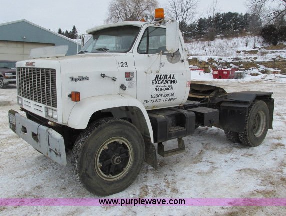 Take a look at this used 1990 GMC TopKick 7000 semi truck being sold on January 30th, 2014 in the SOLD! January 30 Construction Equipment Auction made by GMC. Take a look at all of the item information below or take a look at similar auctions for Trucks.