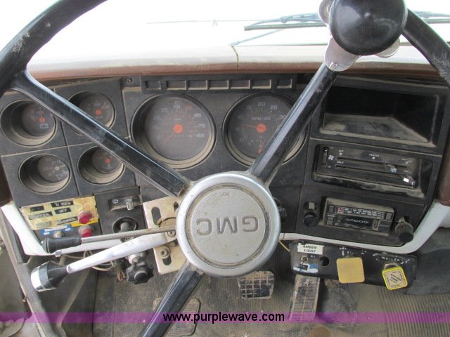 Purple Wave is selling a used Truck Chassis in Wisconsin. This item is a 1990 GMC TopKick 7000 semi truck with the following: 218,881 miles on odometer, Caterpillar 3208 10.4L V8 diesel engine, Five speed manual transmission, Two speed rear end, AM/FM/cassette, Air suspension seat, Exterior visor, Block heater, Half fenders, Dual fuel tanks, Single rear exhaust stack, Spring suspension, Air brakes, 11R22.5 tires, GVWR 29,900 lbs, FAWR 10,860 lbs, RAWR 19,040 lbs