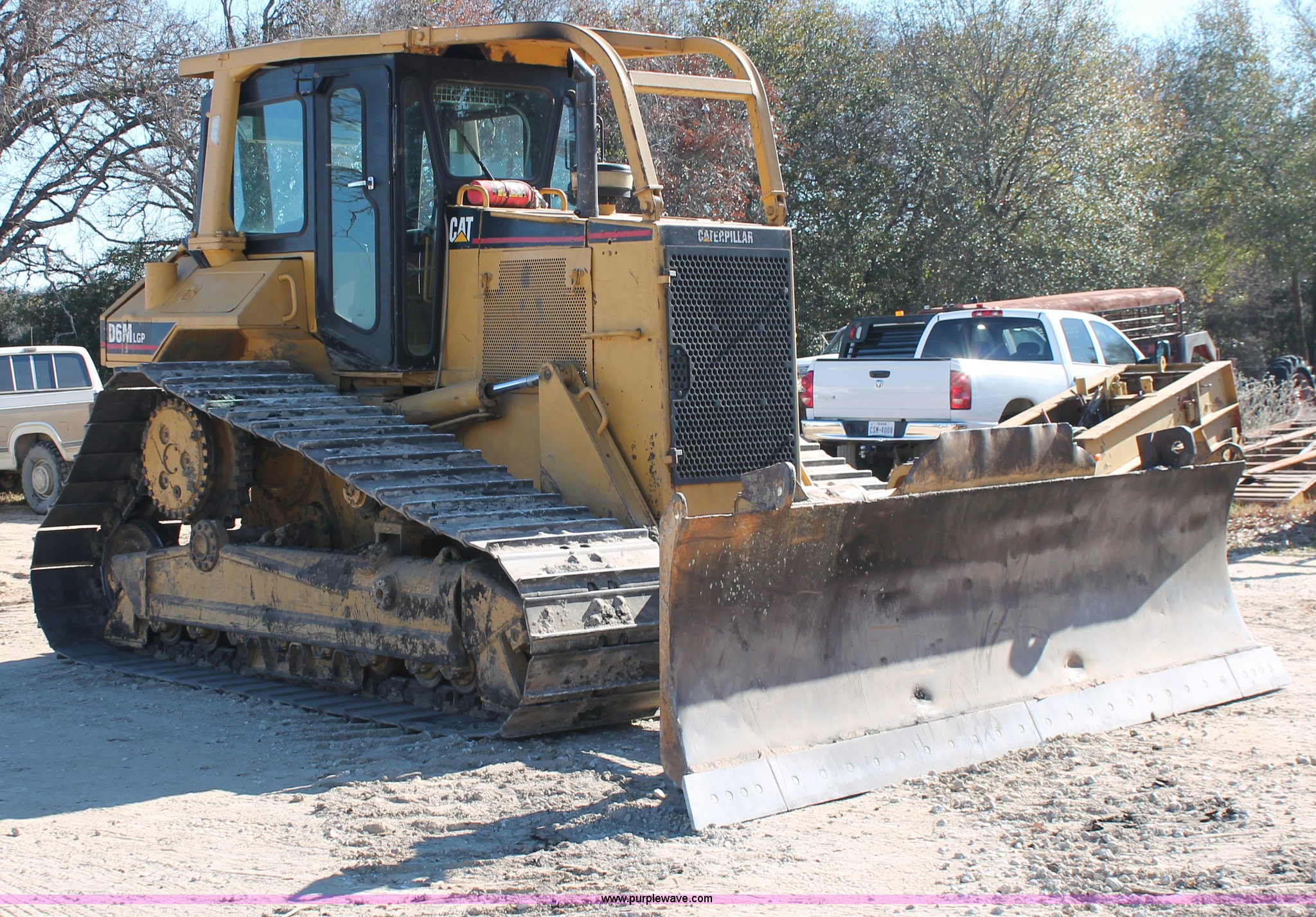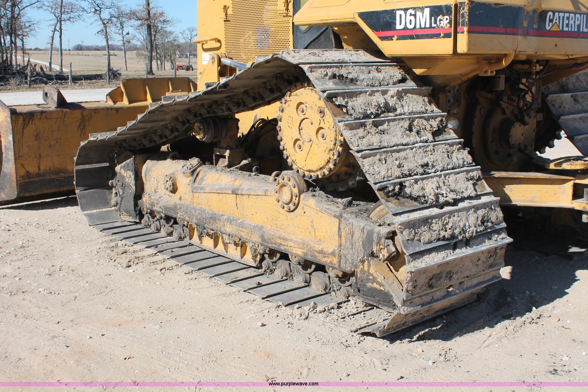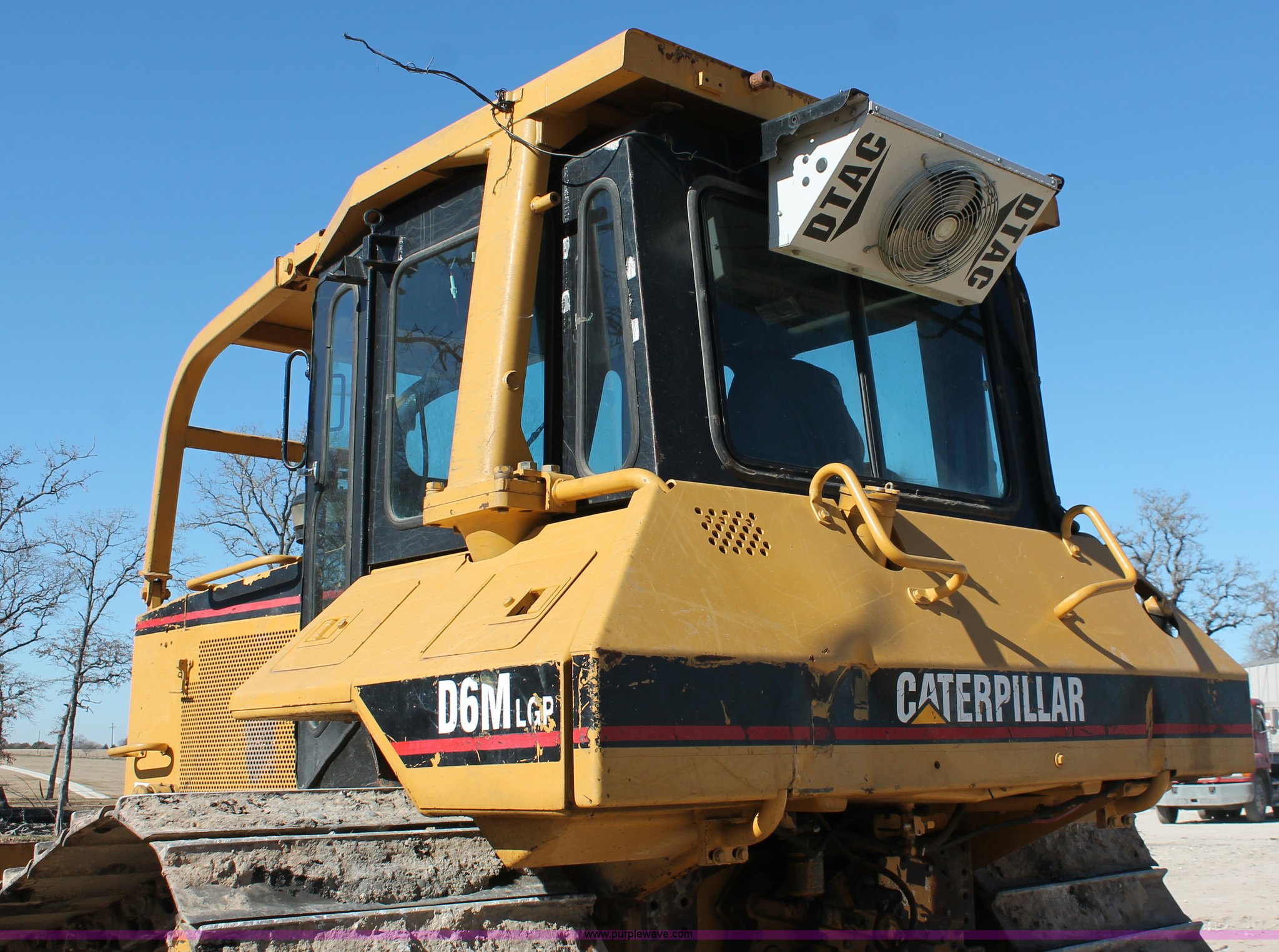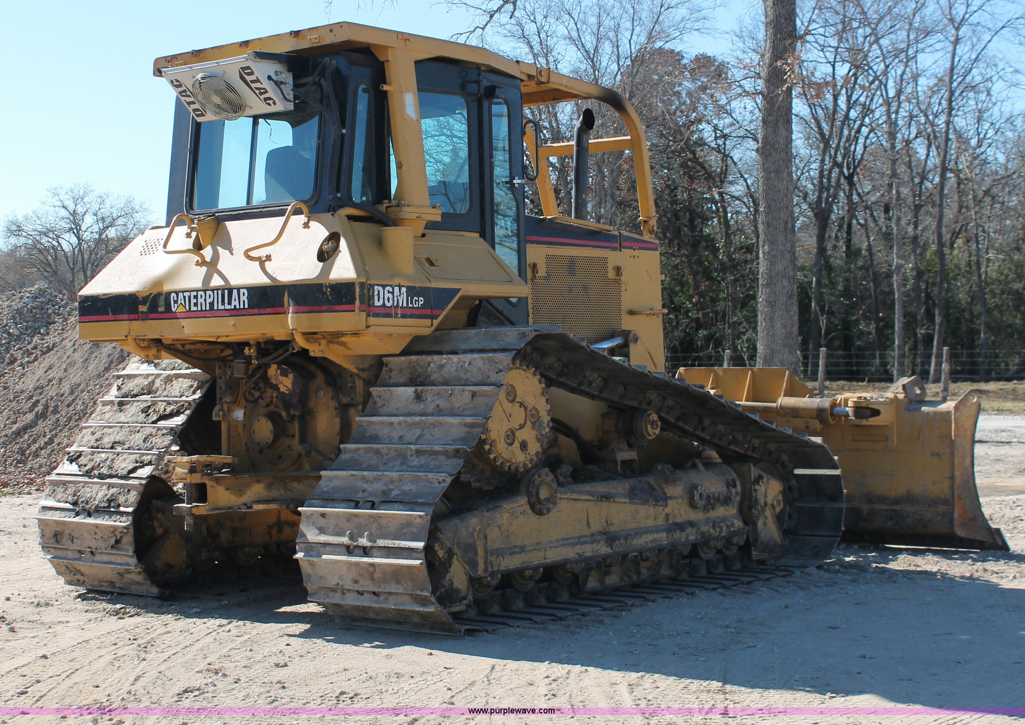 Purple Wave is selling a used Crawler Dozer in Texas. This item is a 1997 Caterpillar D6M LGP dozer with the following: 6,897 actual hours, Caterpillar 3116 6.6L six cylinder turbo diesel engine, 153 HP, Powershift transmission, 3F-3R gears, Enclosed cab, AC, AM/FM/cassette, Suspension seat, Front windshield wipers, Sweeps, Engine enclosures, Fingertip control steering, 160" S-dozer blade, Angle, Tilt, Rear draw bar, Caterpillar SALT undercarriage, (7) bottom rollers, 33.5"W single grouser tracks, 37,400 lbs. base operating weight, Recently replaced transmission, turbo, computer, DTAC AC system, sprockets, idlers, cutting edges, valves, sway bar, blade bushings, and re-calibration, Intermittent transmission between second and third gear, Serial 4JN00696