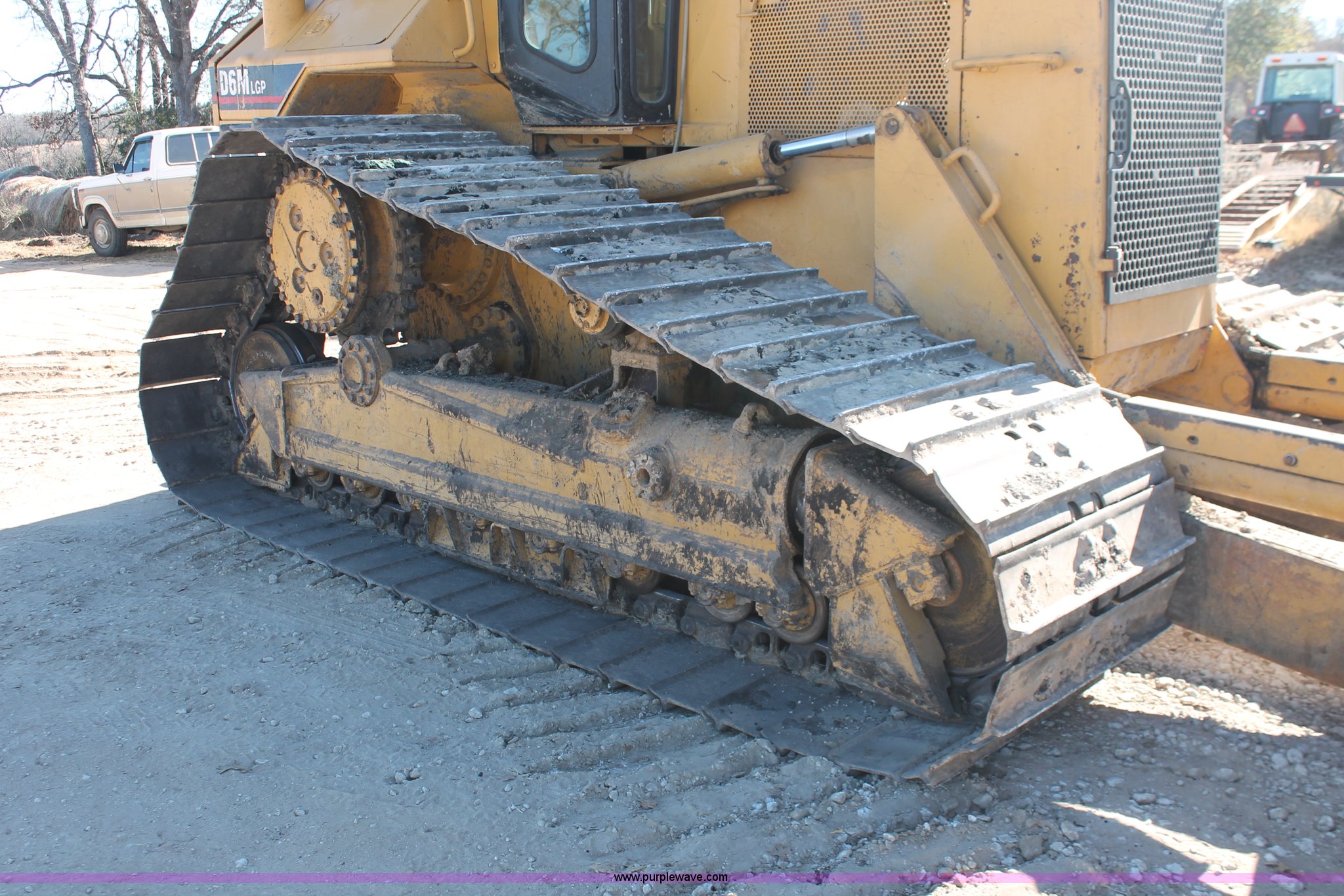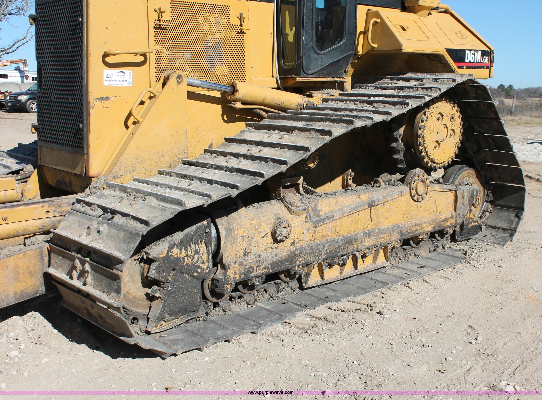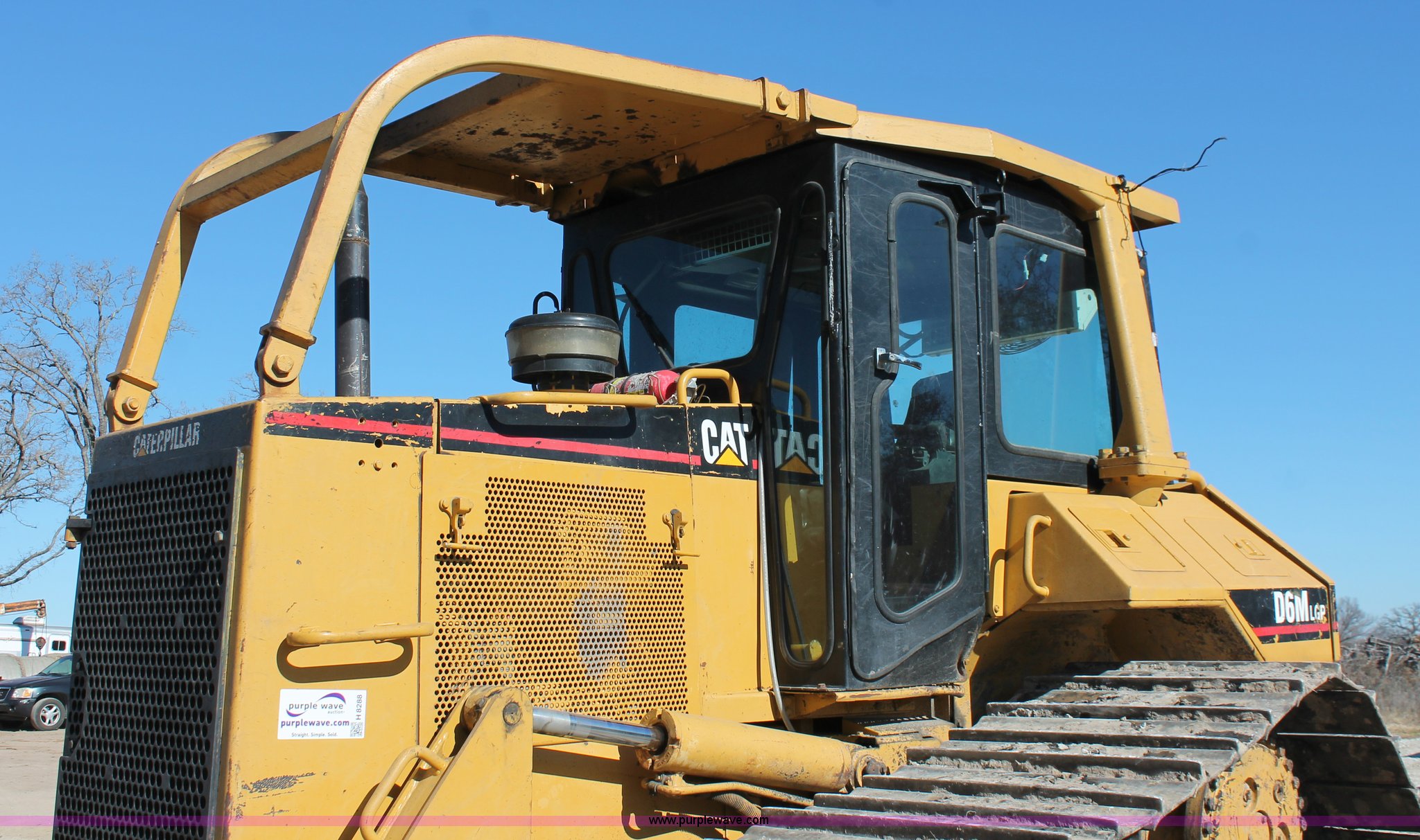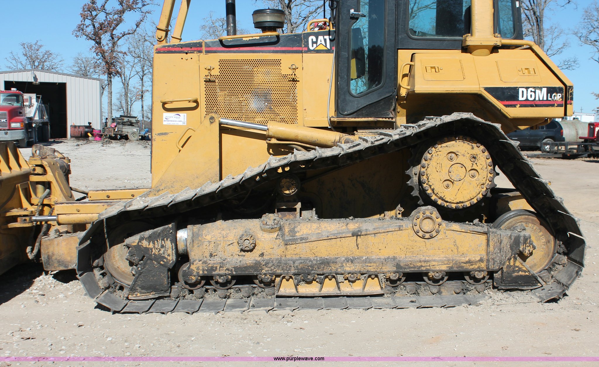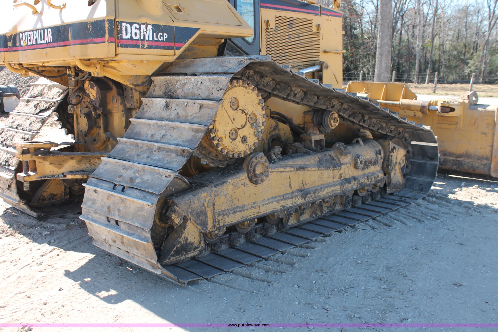 Purple Wave is selling a used Crawler Dozer in Texas. This item is a 1997 Caterpillar D6M LGP dozer with the following: 6,897 actual hours, Caterpillar 3116 6.6L six cylinder turbo diesel engine, 153 HP, Powershift transmission, 3F-3R gears, Enclosed cab, AC, AM/FM/cassette, Suspension seat, Front windshield wipers, Sweeps, Engine enclosures, Fingertip control steering, 160" S-dozer blade, Angle, Tilt, Rear draw bar, Caterpillar SALT undercarriage, (7) bottom rollers, 33.5"W single grouser tracks, 37,400 lbs. base operating weight, Recently replaced transmission, turbo, computer, DTAC AC system, sprockets, idlers, cutting edges, valves, sway bar, blade bushings, and re-calibration, Intermittent transmission between second and third gear, Serial 4JN00696