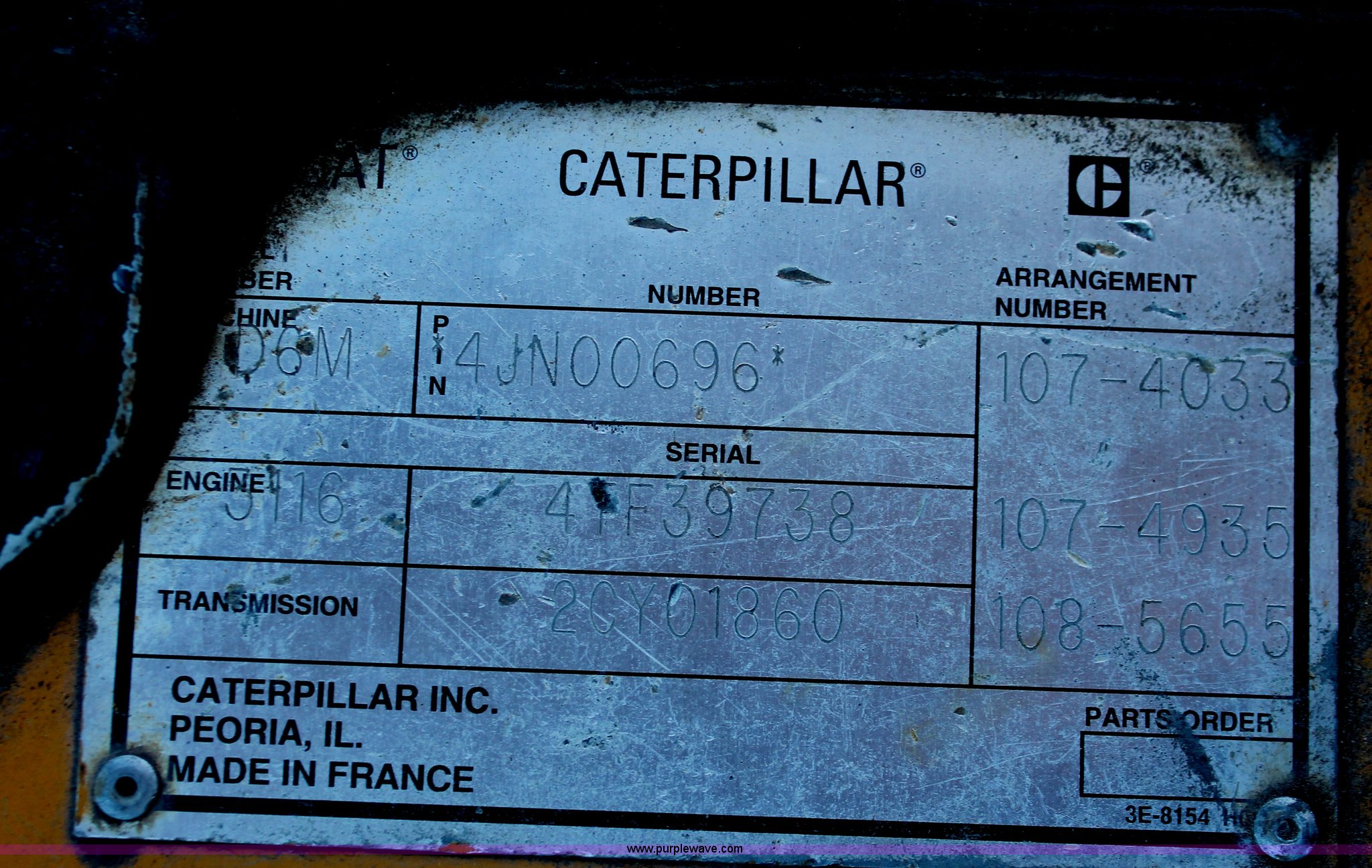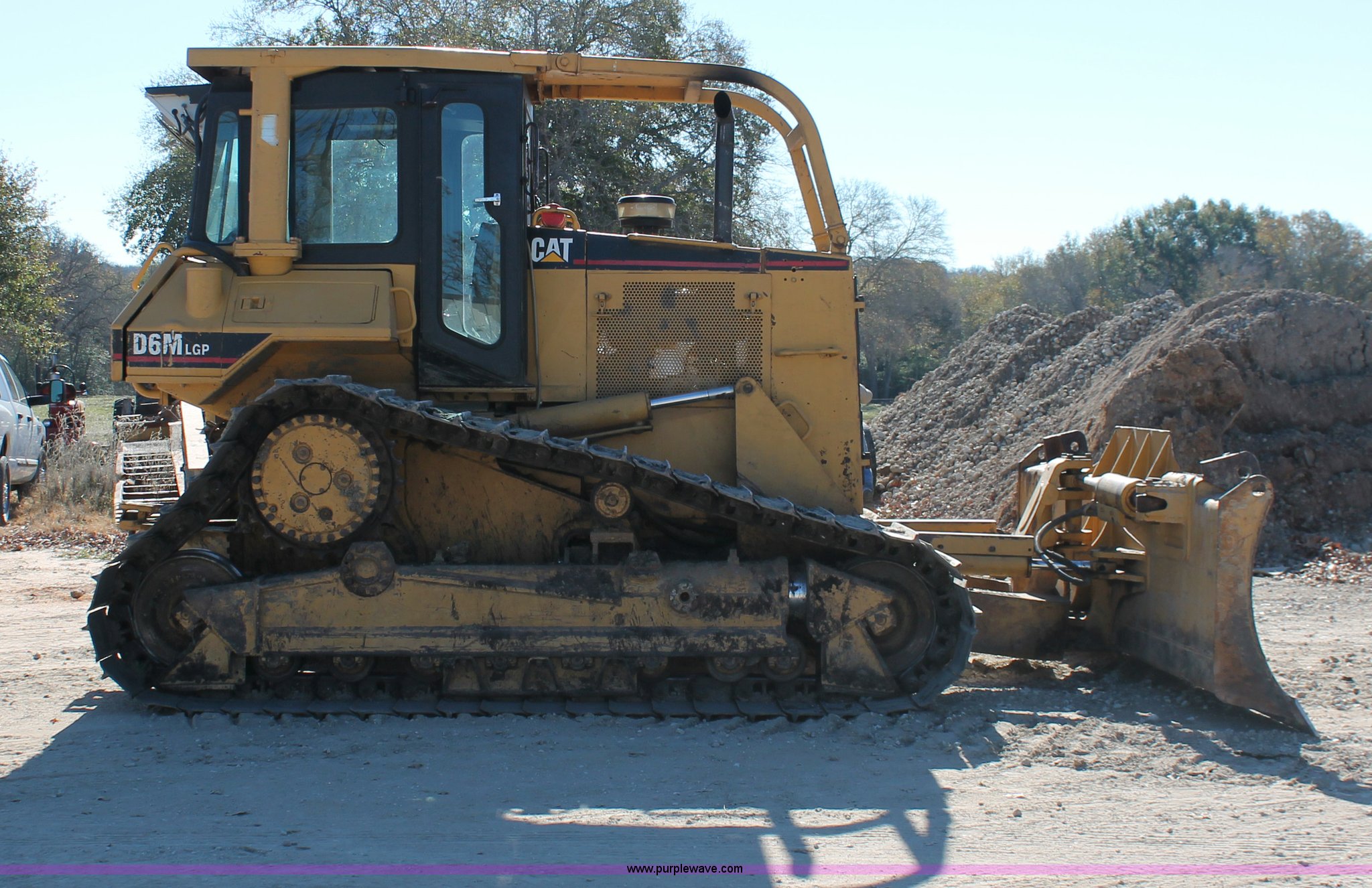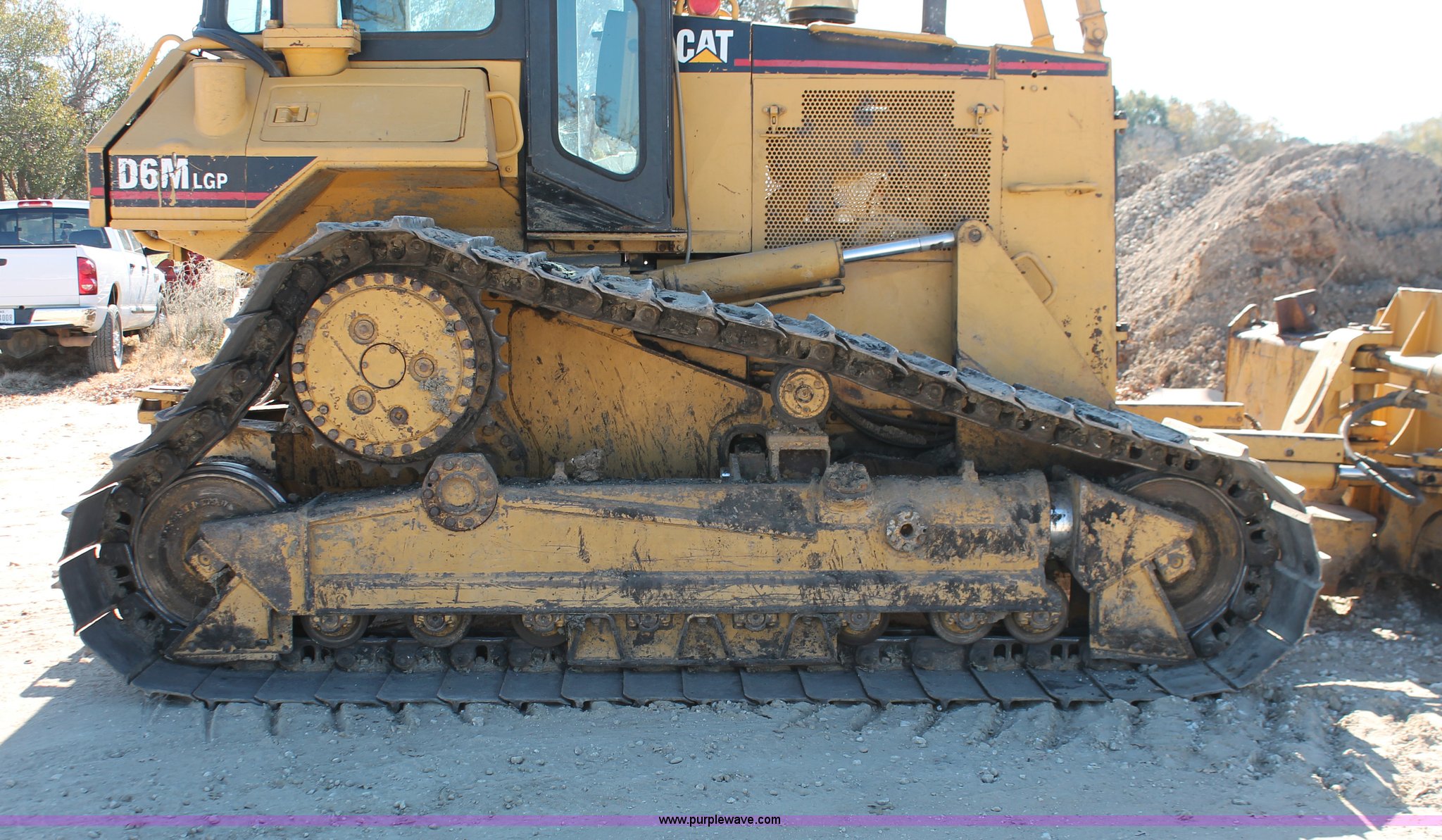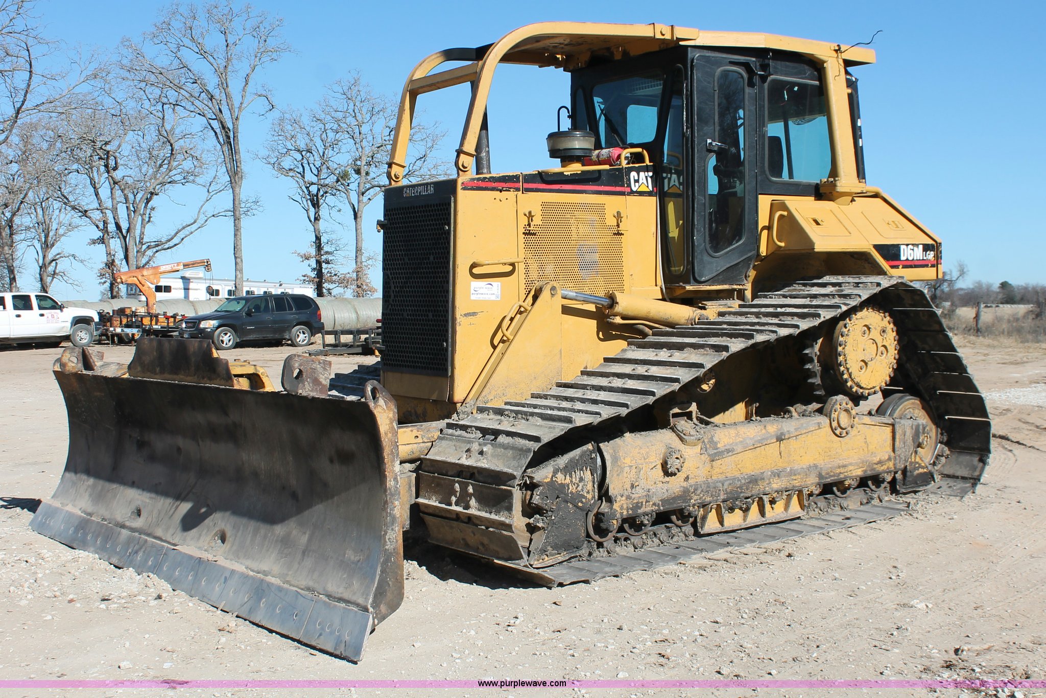 Purple Wave is selling a used Crawler Dozer in Texas. This item is a 1997 Caterpillar D6M LGP dozer with the following: 6,897 actual hours, Caterpillar 3116 6.6L six cylinder turbo diesel engine, 153 HP, Powershift transmission, 3F-3R gears, Enclosed cab, AC, AM/FM/cassette, Suspension seat, Front windshield wipers, Sweeps, Engine enclosures, Fingertip control steering, 160" S-dozer blade, Angle, Tilt, Rear draw bar, Caterpillar SALT undercarriage, (7) bottom rollers, 33.5"W single grouser tracks, 37,400 lbs. base operating weight, Recently replaced transmission, turbo, computer, DTAC AC system, sprockets, idlers, cutting edges, valves, sway bar, blade bushings, and re-calibration, Intermittent transmission between second and third gear, Serial 4JN00696