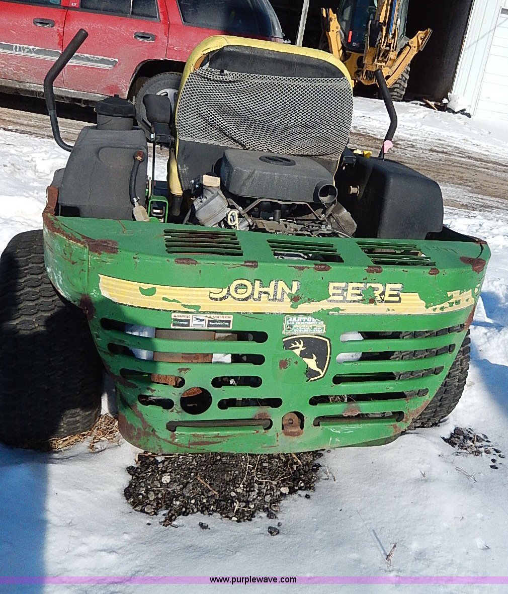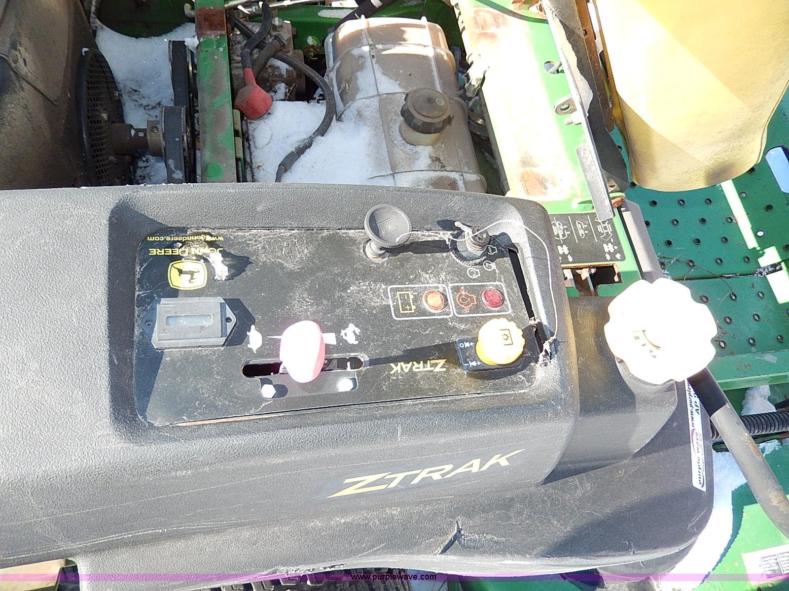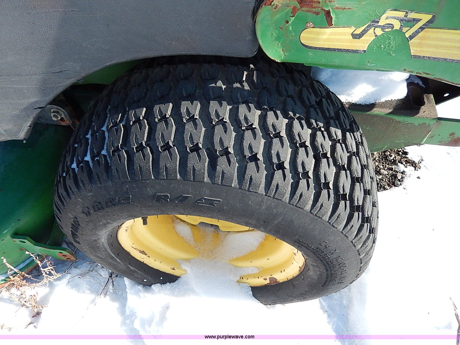 Purple Wave is selling a used Commercial Turf Mower in Kansas. This item is a John Deere 757 Ztrak lawn mower with the following: 5'W cut, Kawasaki V-twin 25 HP gas engine, Vinyl seat, 13 x 5.00-6 front tires, 24 x 12.00-12 rear tires