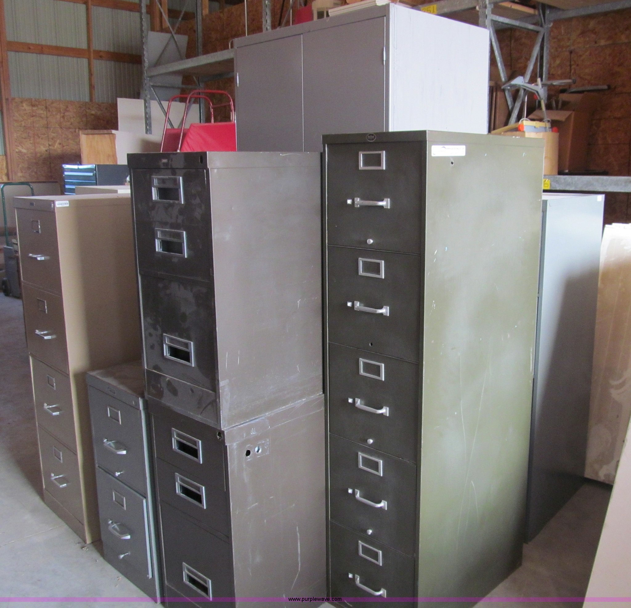 Purple Wave is selling a used Office Supplies and Equip. in Kansas. This item is a Assorted steel cabinets with the following: Four drawer lateral file cabinet, (2) four drawer legal file cabinets, Five drawer letter file cabinet, Four drawer letter file cabinet, Two drawer, (2) under desk file cabinets, Storage cabinet, 78"H