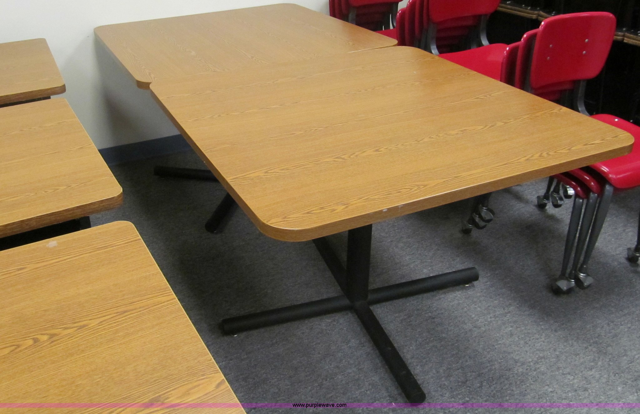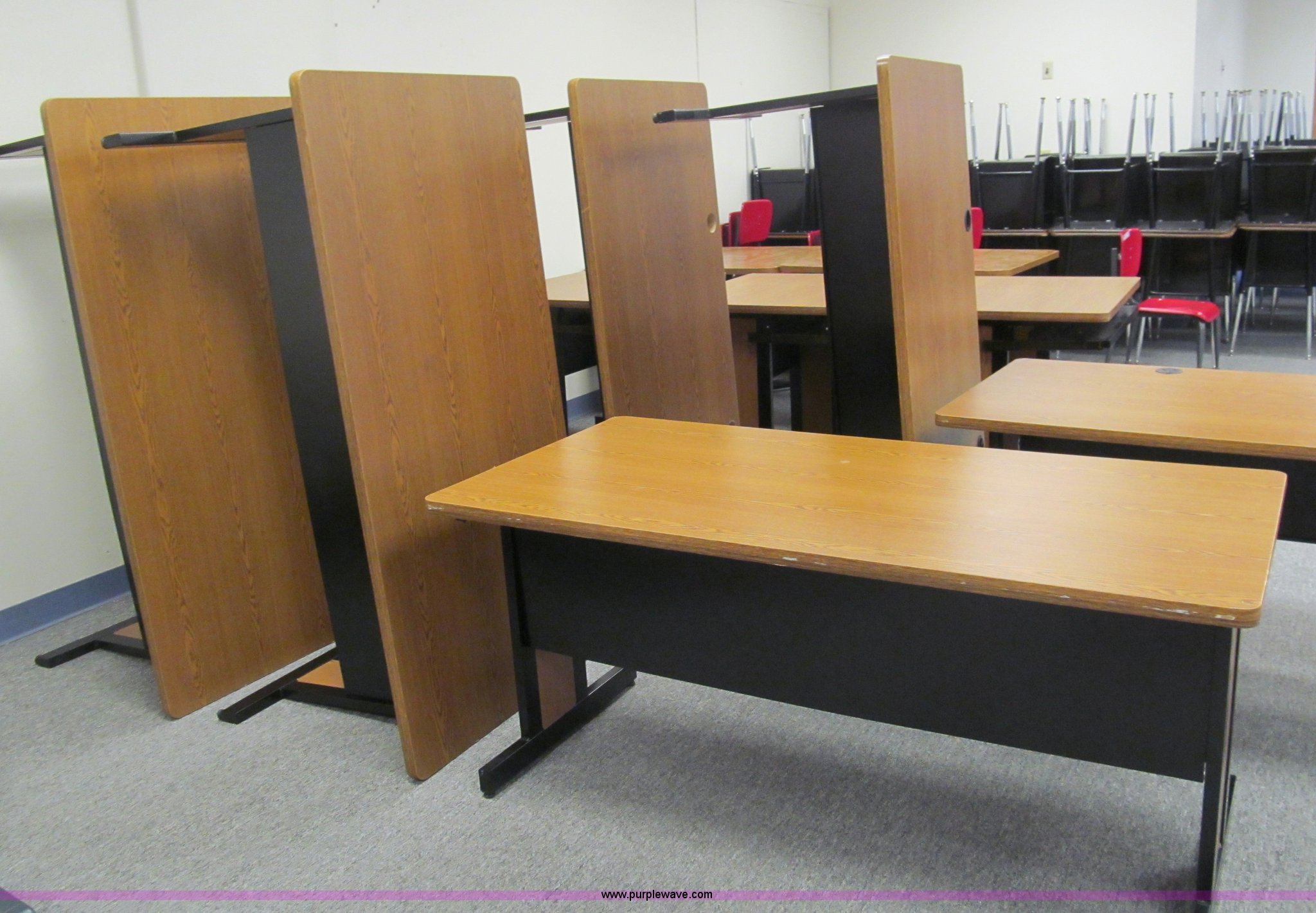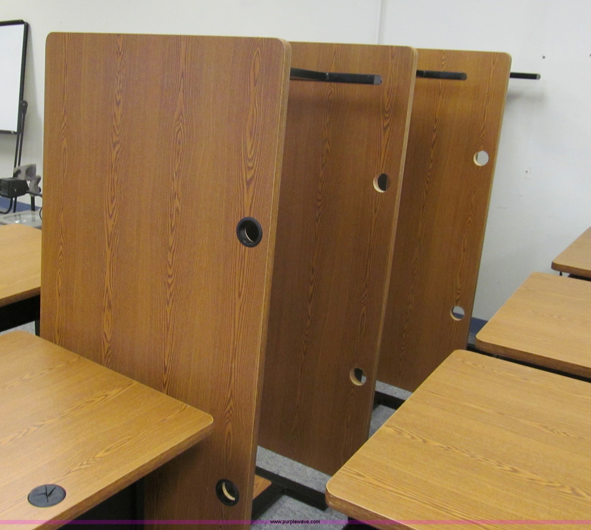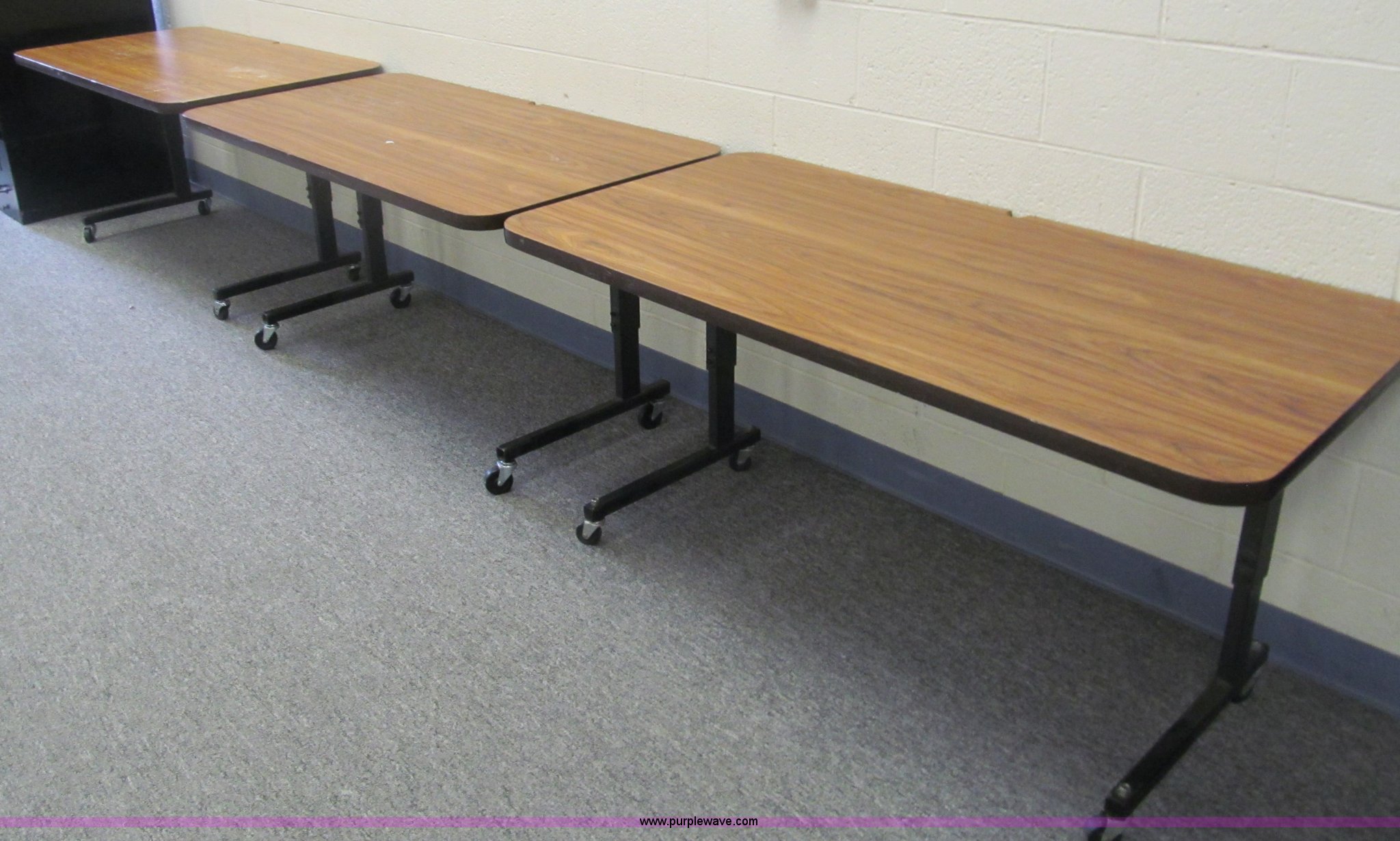Purple Wave is selling a used Furniture in Kansas. This item is a Assorted furniture with the following: (3) computer desks, 60"L x 30"W x 26"H, (4) computer desks, 60"L x 30"W x 26"H, Cable holes, (3) computer desks, 36"L x 30"W x 30"H, Cord holes, Keyboard tray, (2) wood tables, 42" x 42" x 29", (3) computer tables, 54" x 27" x 26", Casters, Four drawer metal file cabinet
