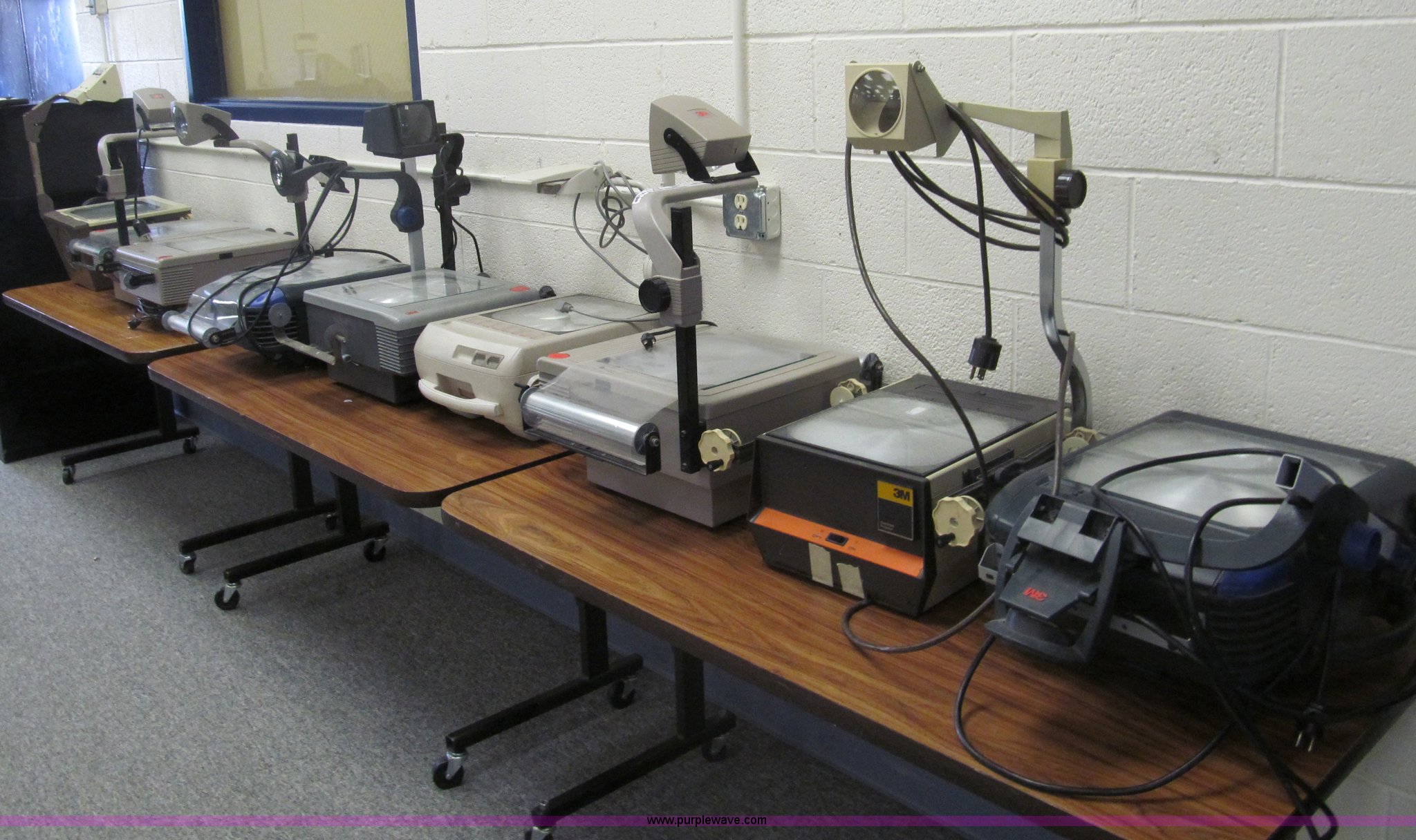 Purple Wave is selling a used Office Supplies and Equip. in Kansas. This item is a (12) assorted overhead projectors with the following: Brands include 3M and Apollo, Operational when removed from service, Bulbs removed, Tables are not included