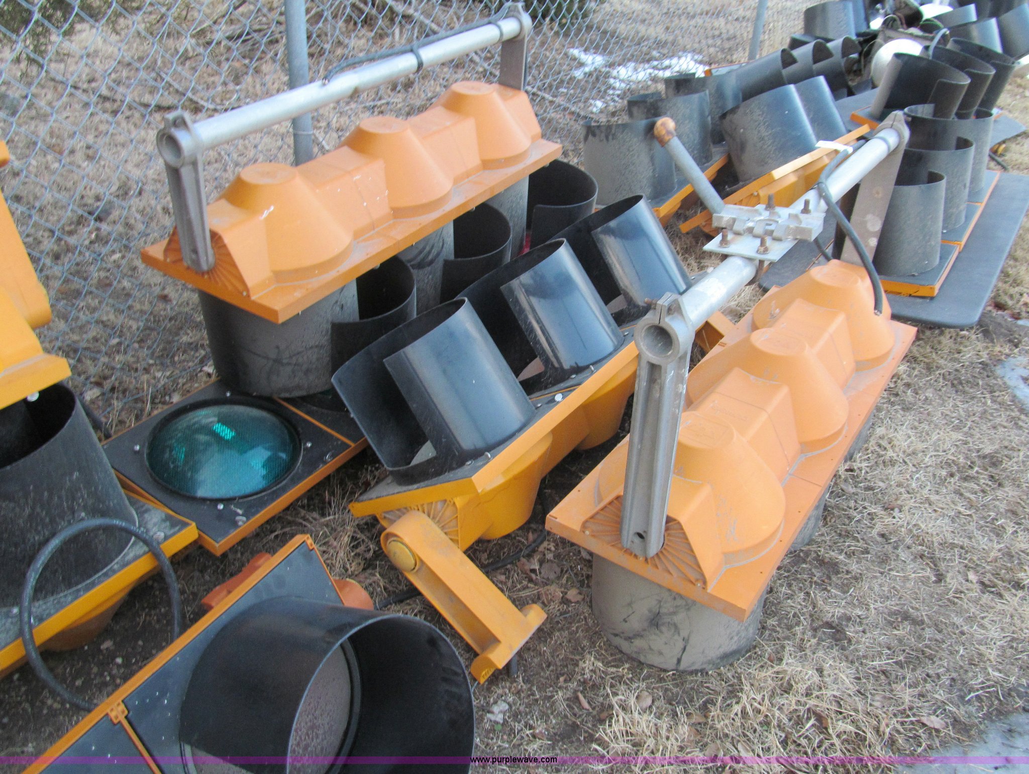 Purple Wave is selling a used Road Safety Equip. in Kansas. This item is a Assorted Durasig traffic lights with the following: (11) complete sets, (21) additional lights, Unknown operating condition, (2) Eagle signal traffic control boxes, No keys