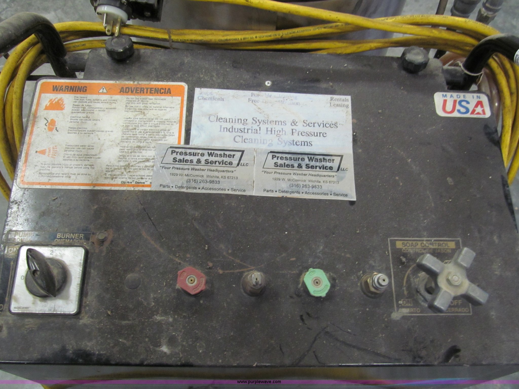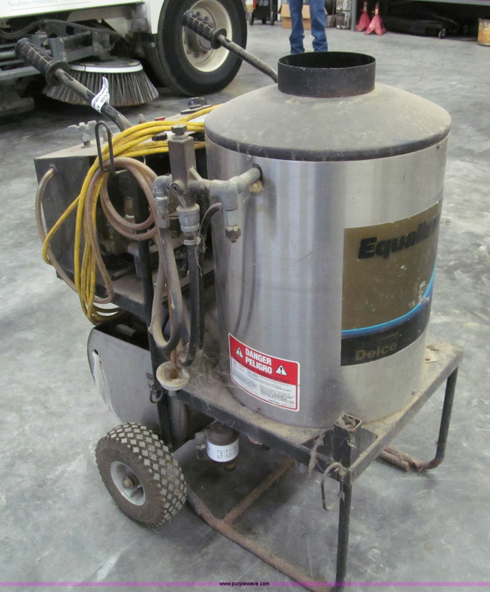 Purple Wave is selling a used Tools in Kansas. This item is a Delco Equalizer 385BD pressure washer with the following: 2 HP electric motor, Diesel fueled heater, Soap extractor tube with pump, 110V