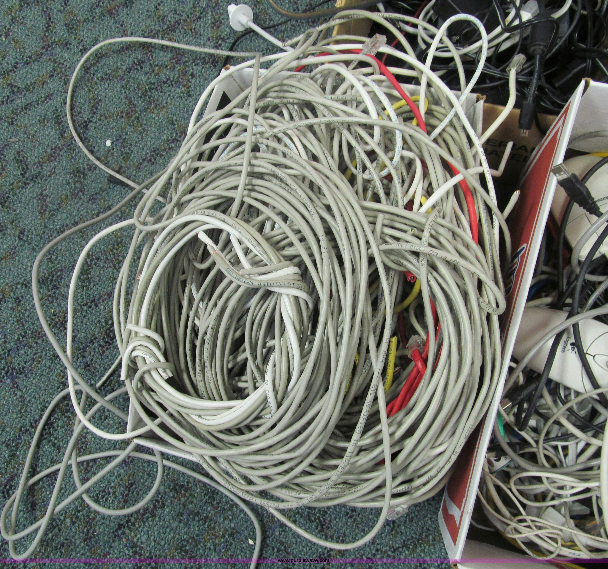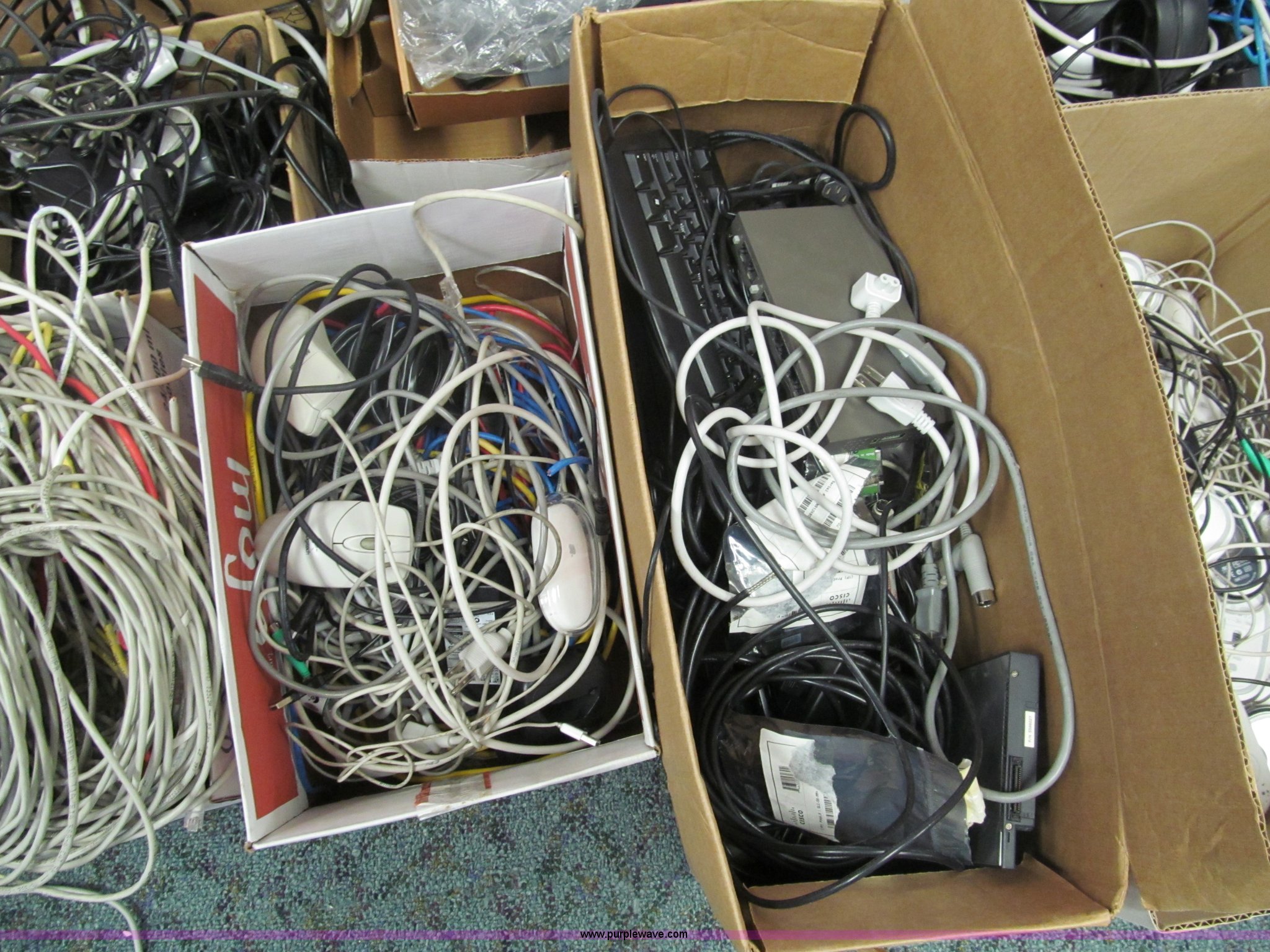 Purple Wave is selling a used Electronics in Kansas. This item is a Assorted cords with the following: Cable, ethernet, power, mouse and more