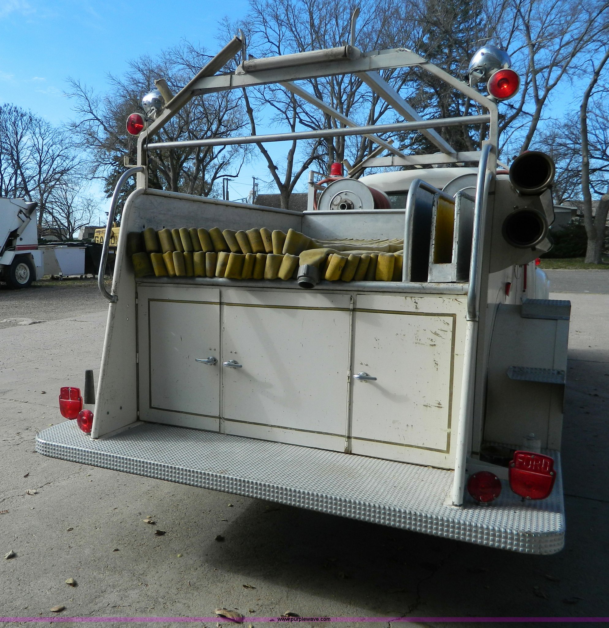 Purple Wave is selling a used Fire Truck or Emergency Vehicle in Kansas. This item is a 1955 Ford F500 fire truck with the following: 1,456 actual miles, Power King 132 gas engine, Four speed manual transmission, Heat, Front mount Barton American pump, Hose reels, Emergency light, Federal siren, 6:8 gear ratio, 7.50-20 tires, GVWR 14,000 lbs, Operator's manual, 2.5" hose not included, Former Wheat Ridge Fire Protection District, Denver, CO, One of Brewster Kansas first mechanical fire apparatus