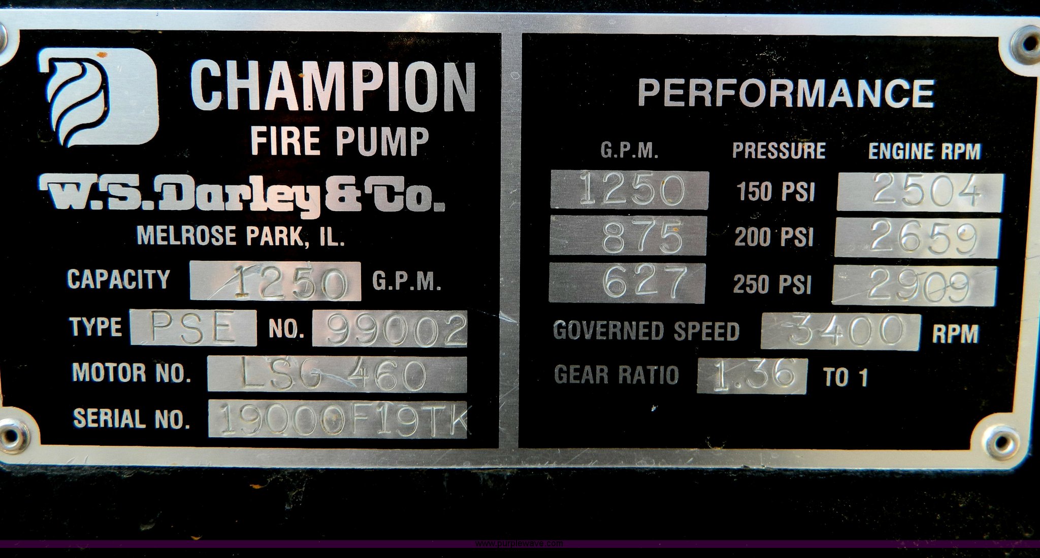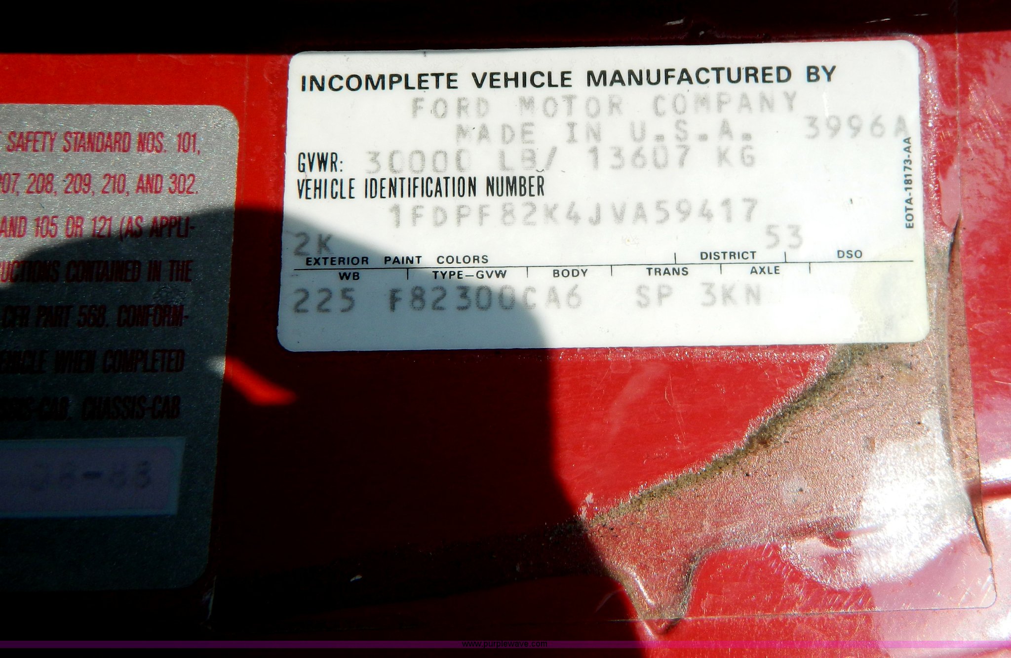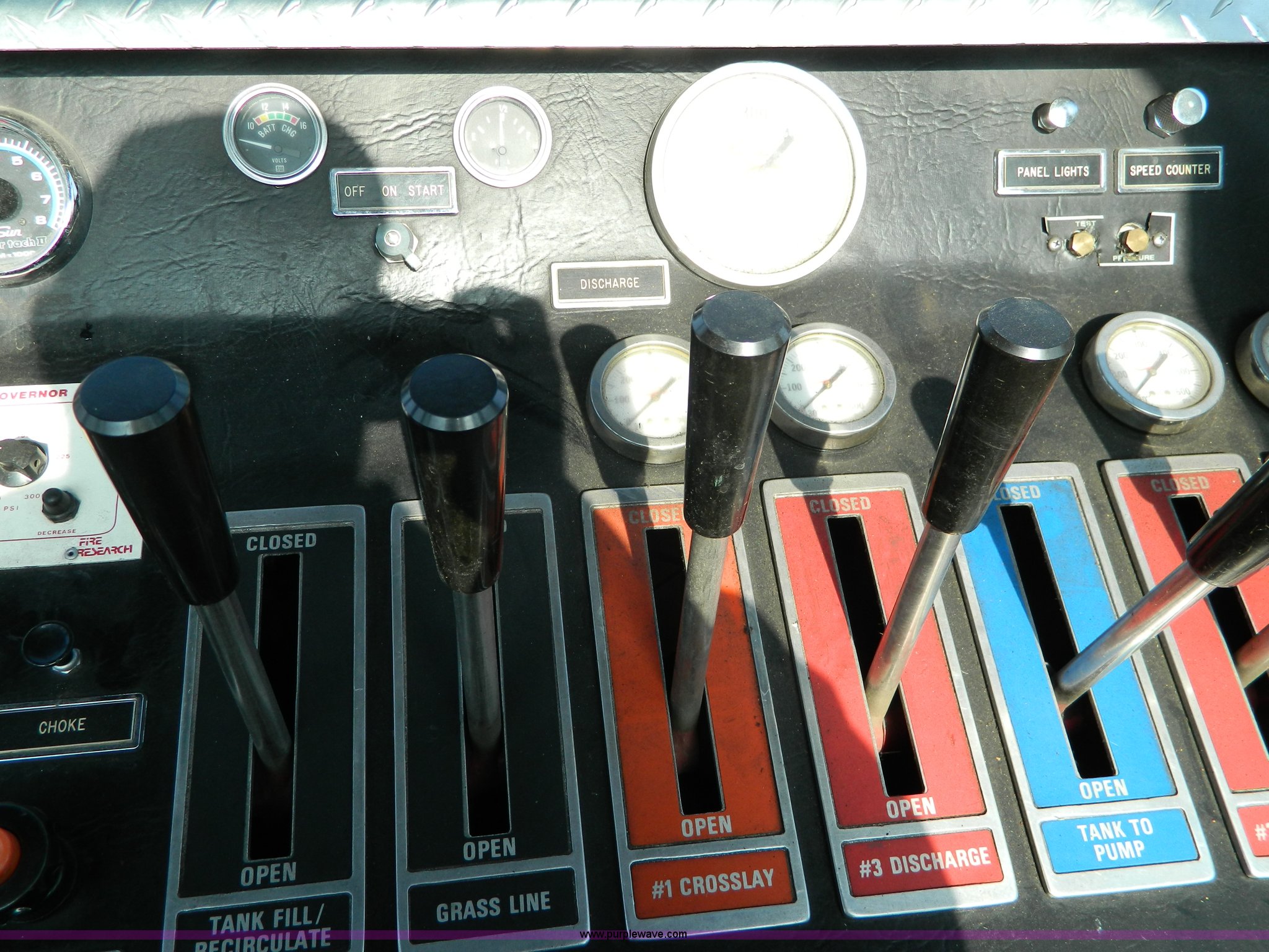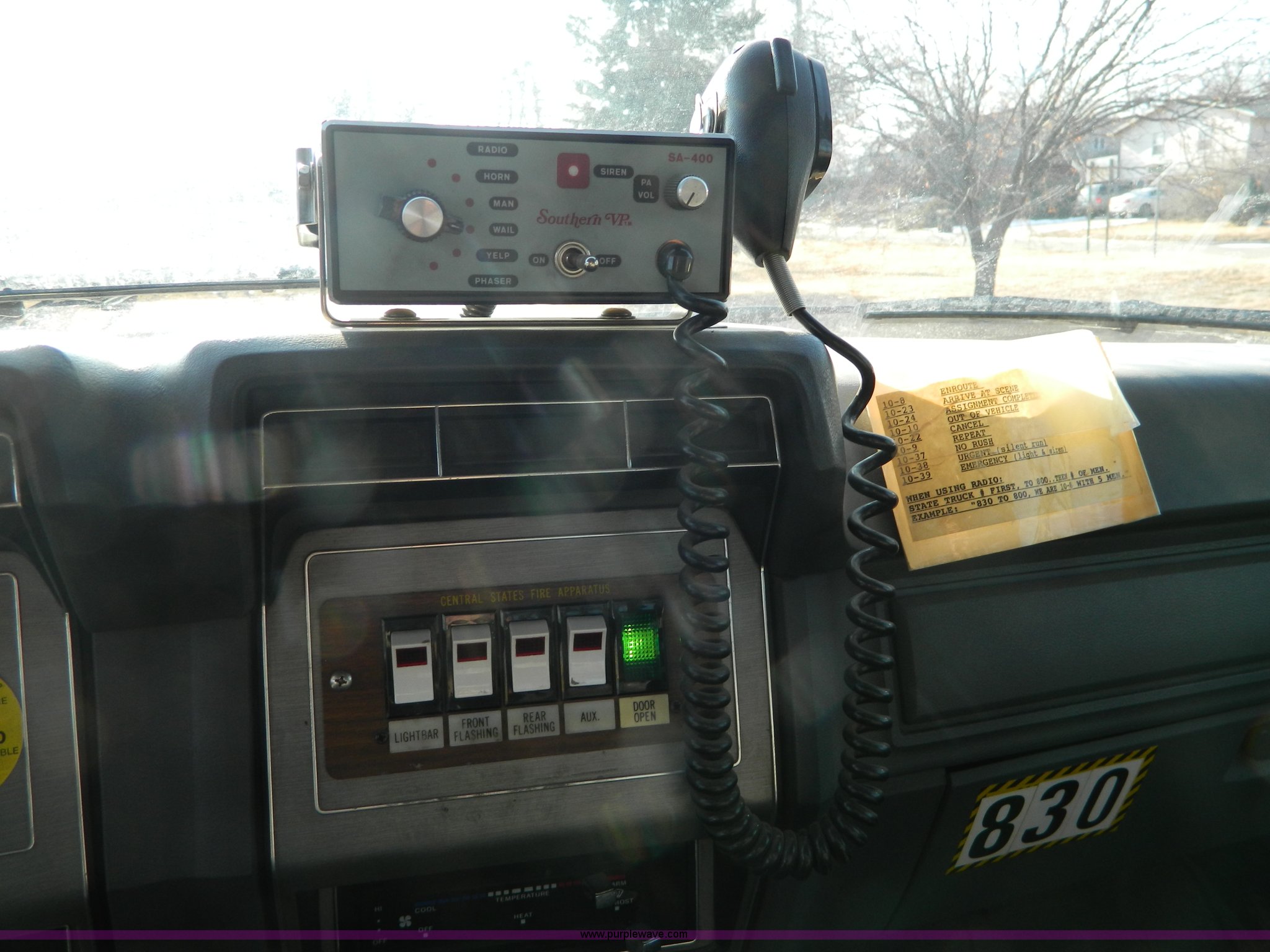 Purple Wave is selling a used Fire Truck or Emergency Vehicle in Kansas. This item is a 1988 Ford F800 pumper fire truck with the following: 4,149 miles on odometer, 7.0L V8 gas engine, Five speed manual transmission, Two speed rear end, Heat, Central States 29' body, Darley 1,250 gpm pump, Canopy cab 108" ground to top, Rear hose reel, Dyna Pro Gas 4500E generator, (2) 1.5" hose cross lays, (2) 6" steamer inlets, Deck monitor, Foam eductor, Electronic siren, Side and rear 2.5" discharge piping, Rear compartment 1.5" pre-connect hose, 1,000 gallon booster tank, Aluminum hose bed, Dupont Urethane paint, Force XL light bar, (2) post mount spotlights in cab, 225" wheelbase, 10.00-20 front tires, 11.00-20 rear tires, GVWR 30,000 lbs