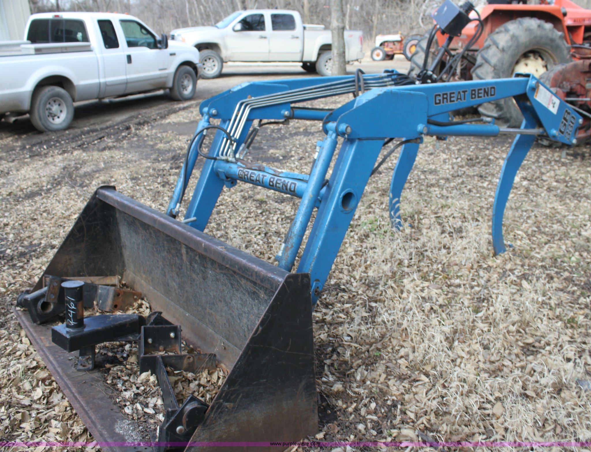 Purple Wave is selling a used Ag Tractor Loader or Attach. in Kansas. This item is a Great Bend 330 loader with the following: 6' bucket, Quick pin latches, Joystick controls, Brackets included, Removed from Ford 3930 tractor, Serial 332882