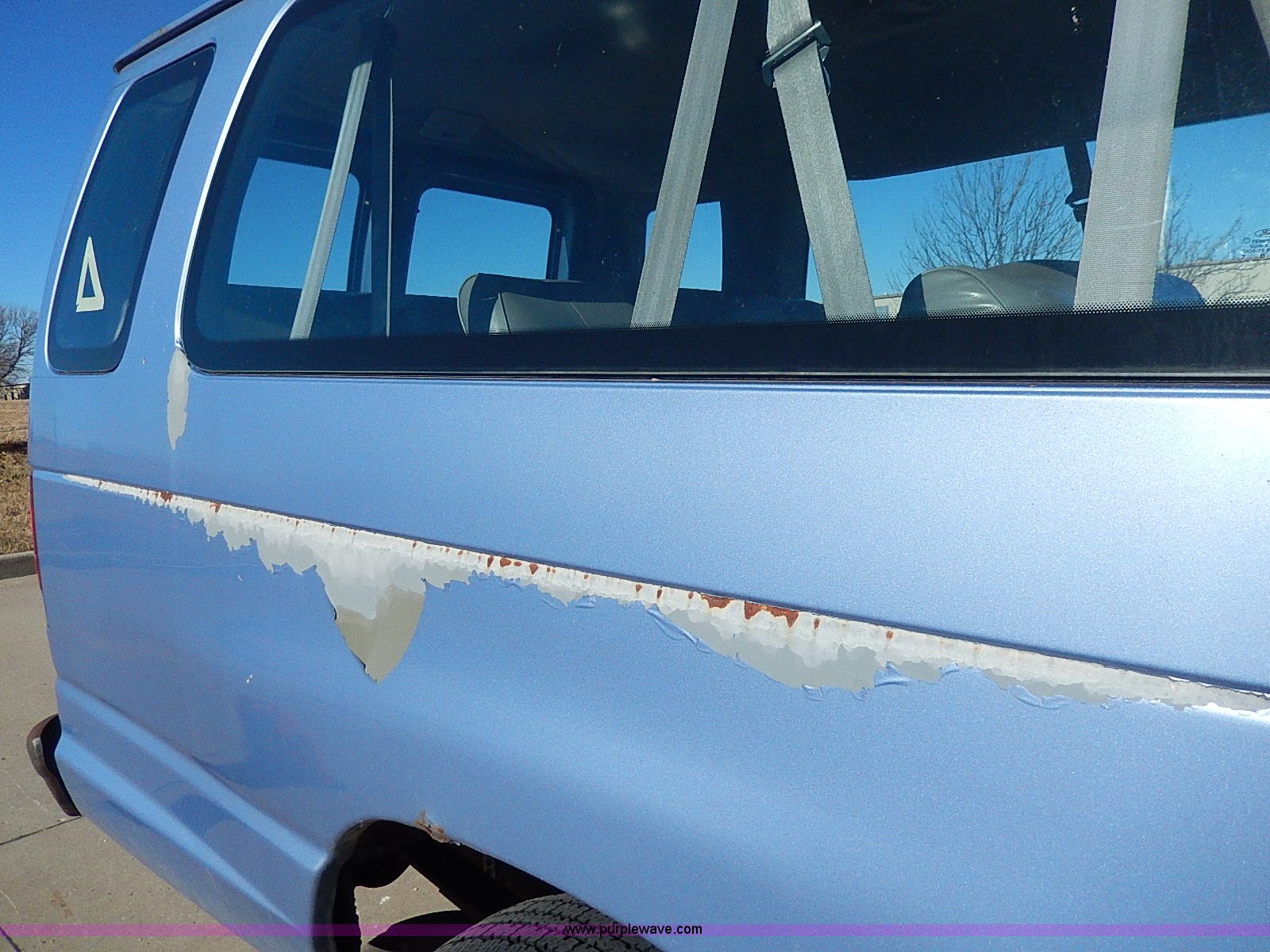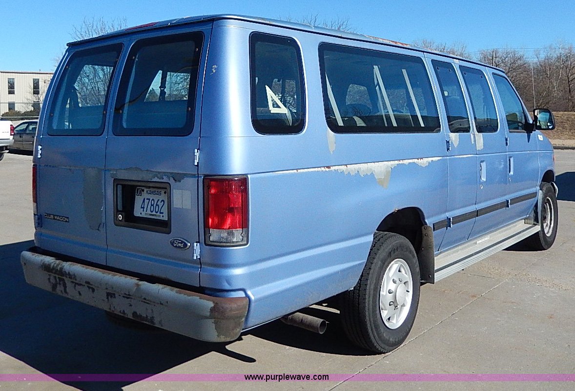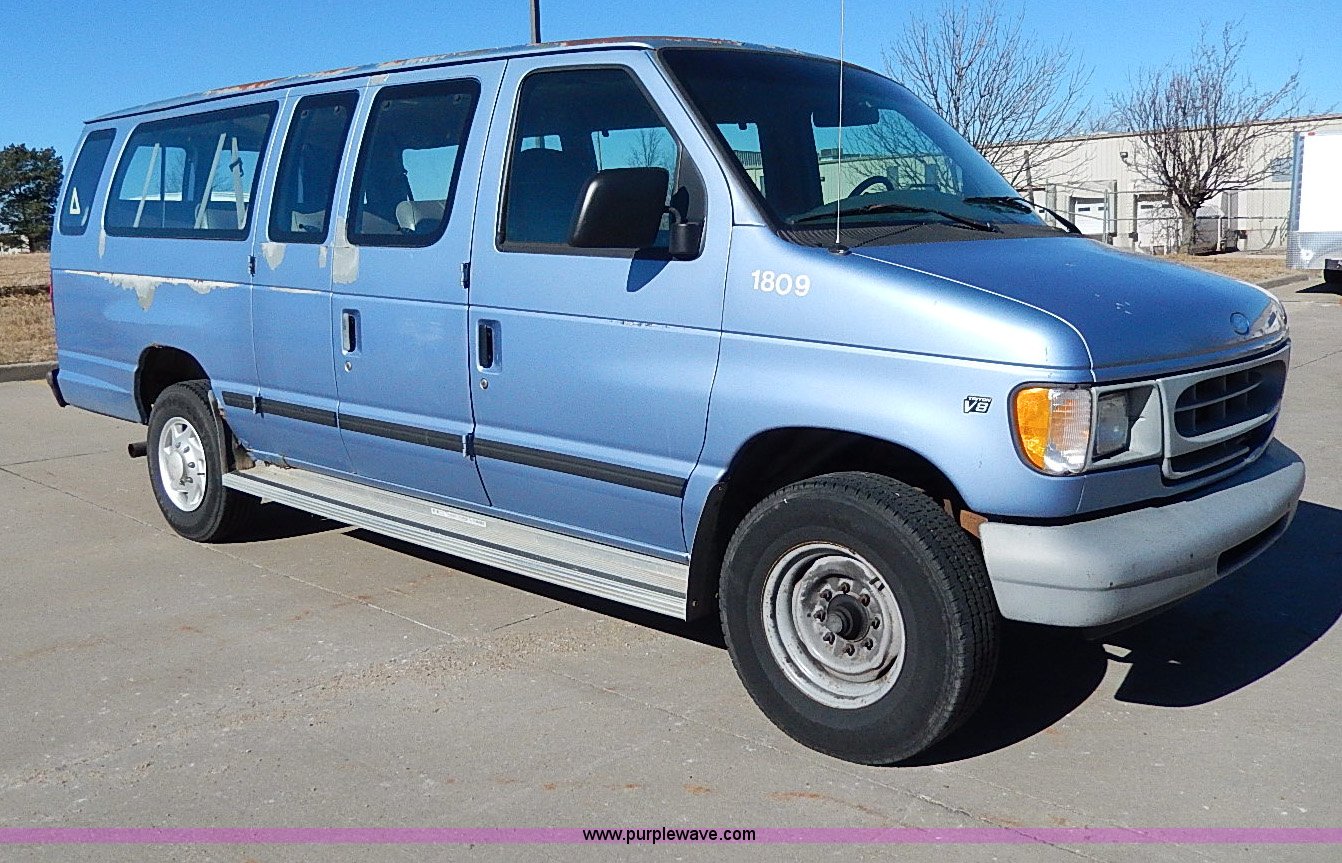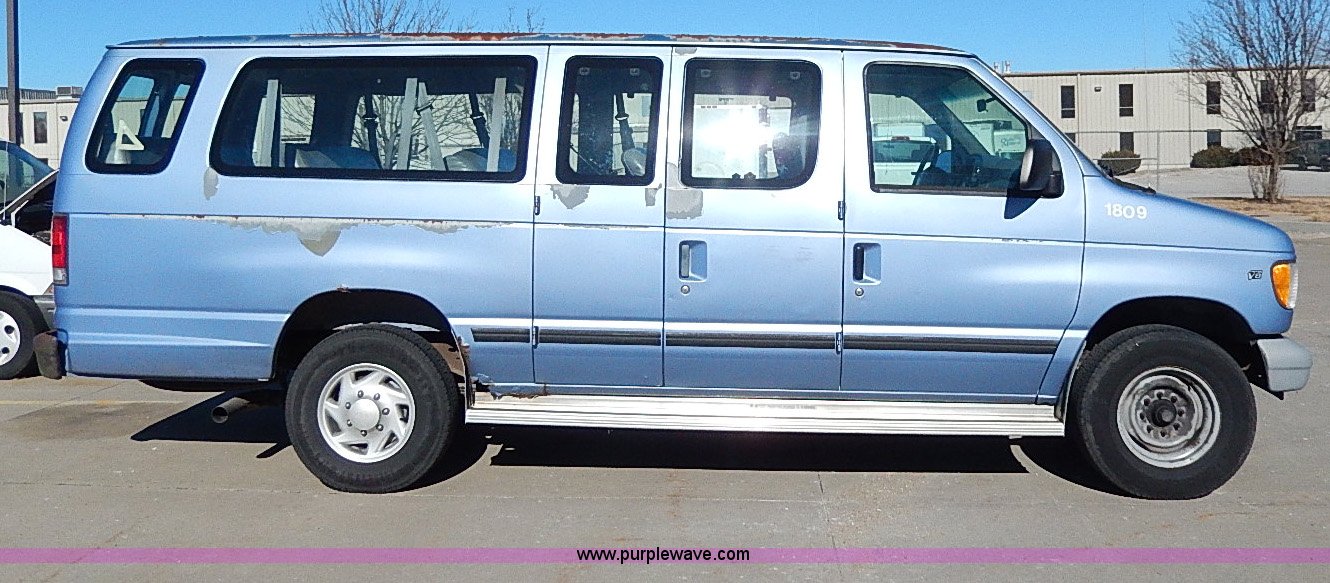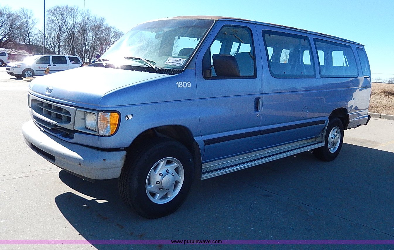 Purple Wave is selling a used Passenger Vehicle in Kansas. This item is a 1997 Ford Club Wagon bus with the following: 159,811 miles on odometer, 5.4L V8 SOHC 16V gas engine, Automatic transmission, AC and heat, Tilt, Cruise, AM/FM, Manual windows and locks, Vinyl interior, Backup alarm, 245/75R16 tires, Cosmetic damage, Rust, Paint peeling, Cracked grill, Minor cosmetic damage to driver's seat and first row seat, Unit# MNH1809/3815