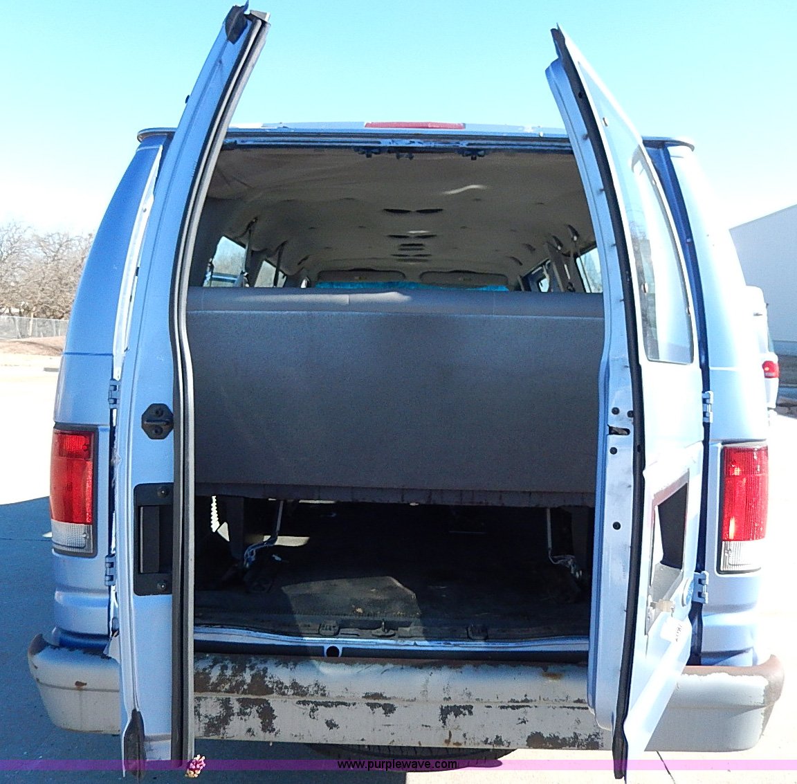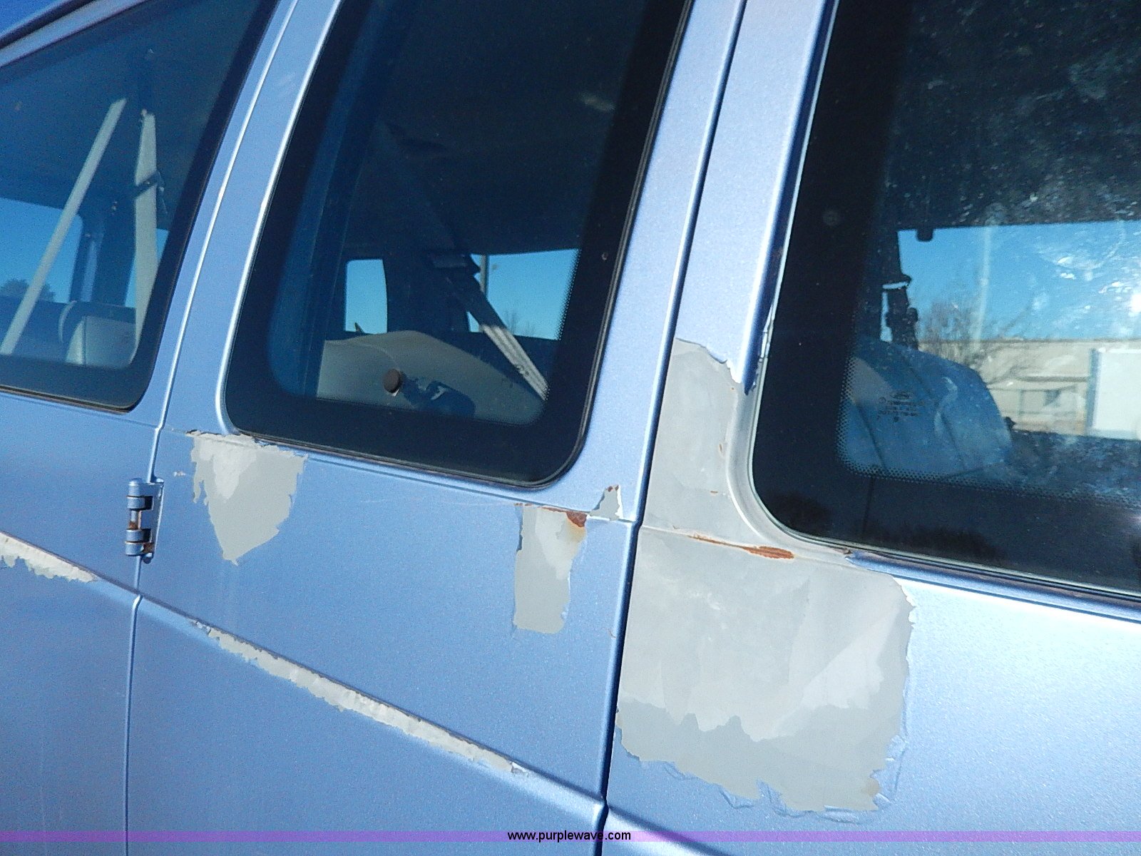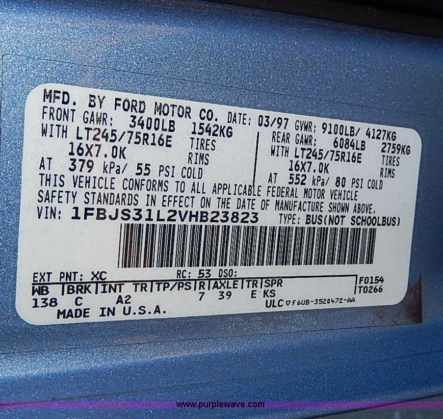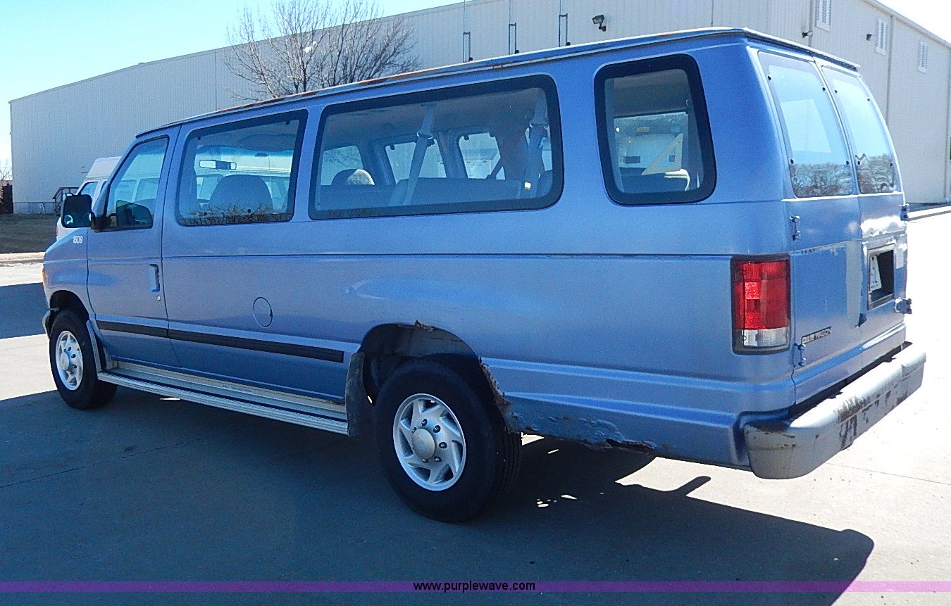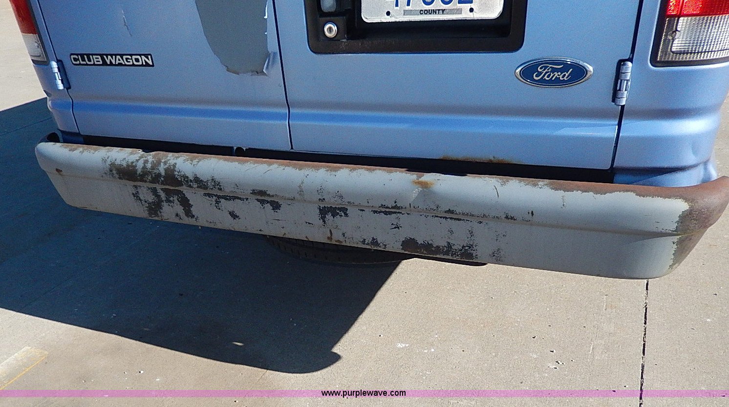 Purple Wave is selling a used Passenger Vehicle in Kansas. This item is a 1997 Ford Club Wagon bus with the following: 159,811 miles on odometer, 5.4L V8 SOHC 16V gas engine, Automatic transmission, AC and heat, Tilt, Cruise, AM/FM, Manual windows and locks, Vinyl interior, Backup alarm, 245/75R16 tires, Cosmetic damage, Rust, Paint peeling, Cracked grill, Minor cosmetic damage to driver's seat and first row seat, Unit# MNH1809/3815