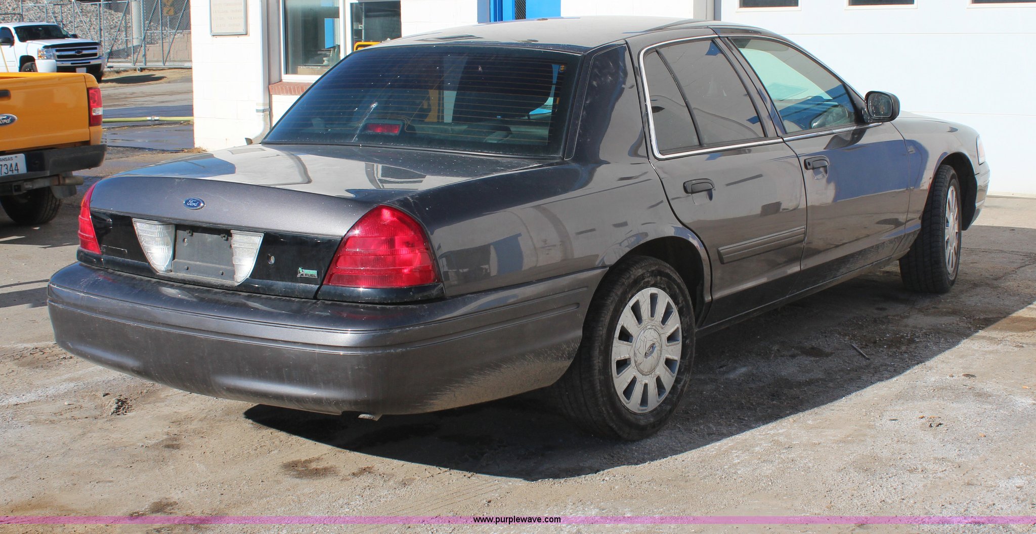 Purple Wave is selling a used Passenger Vehicle in Kansas. This item is a 2001 Ford Crown Victoria Police Interceptor with the following: 106,282 miles on odometer, 4.6L V8 SOHC 16V FFV gas engine, Automatic transmission, AC and heat, Tilt, Cruise, AM/FM, Power windows, locks, mirrors, and seats, Cloth interior, Adjustable foot pedals, 235/55R17 tires