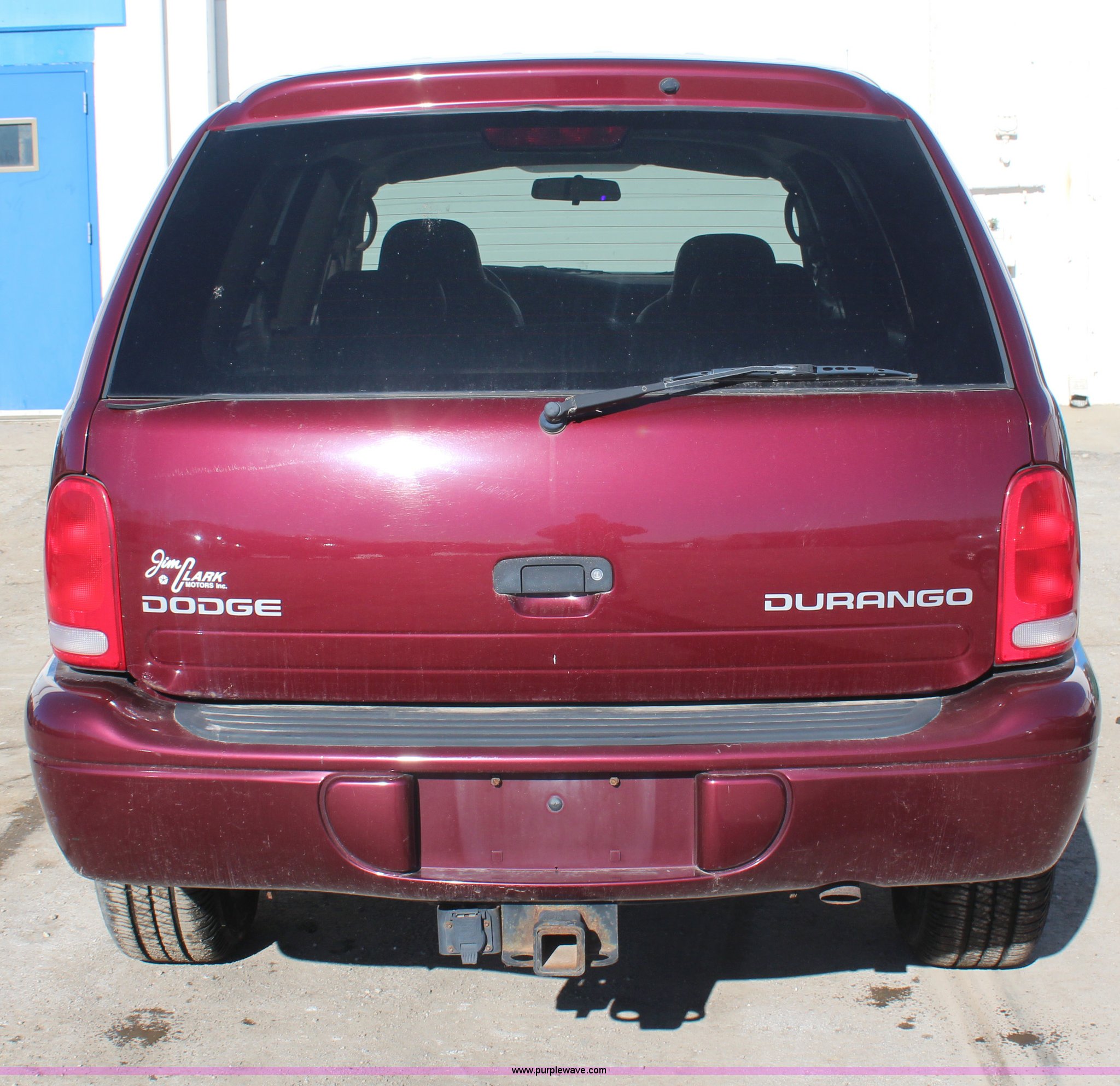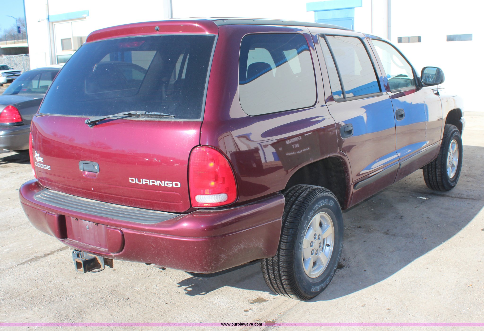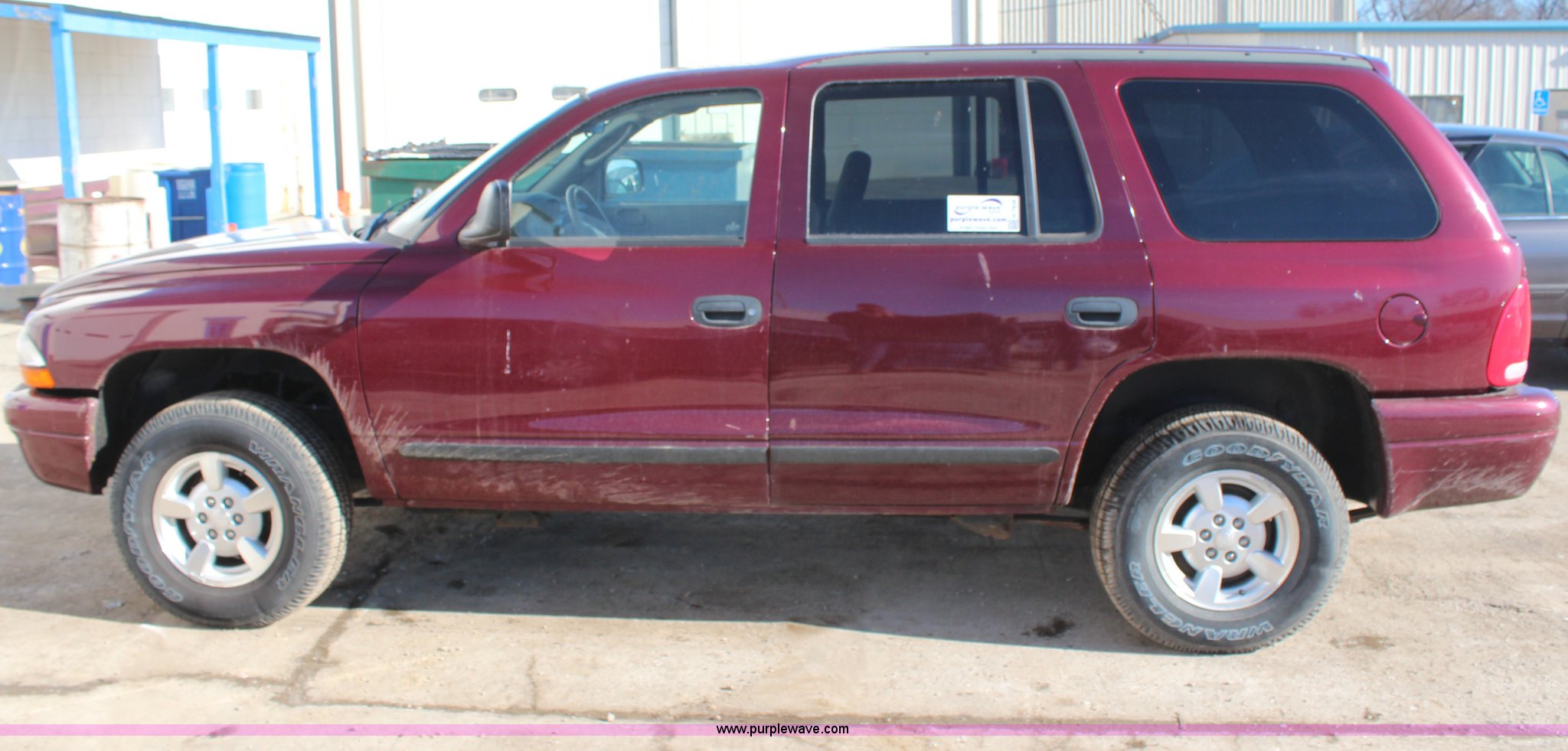 Purple Wave is selling a used Passenger Vehicle in Kansas. This item is a 2002 Dodge Durango SUV with the following: 85,558 miles on odometer, 4.7L V8 SOHC 16V gas engine, Automatic transmission, Four wheel drive, AC and heat, Tilt, Cruise, AM/FM/cassette, Power windows, locks, and mirrors, Cloth interior, Receiver hitch, 235/75R15 tires, Brake issues