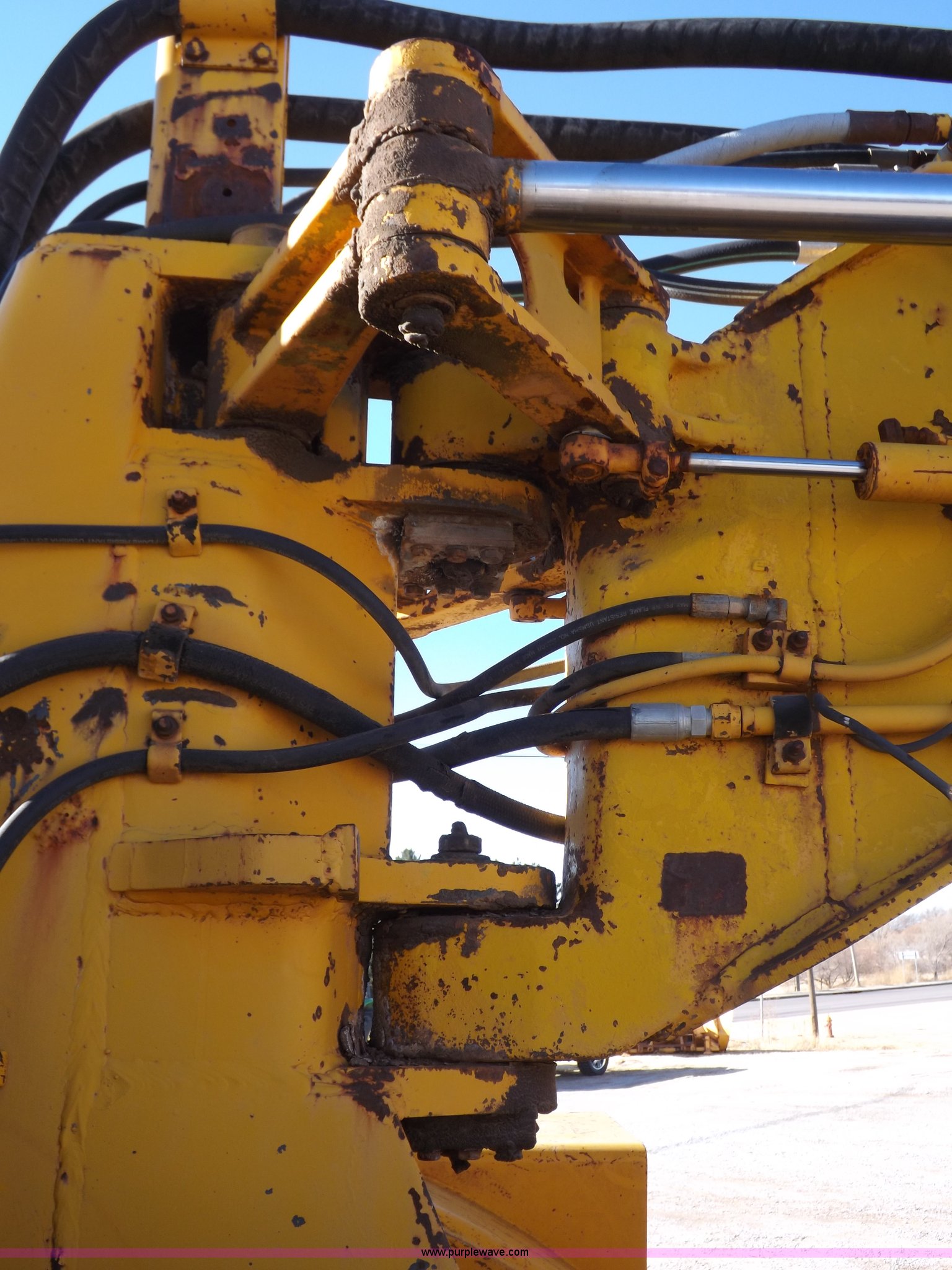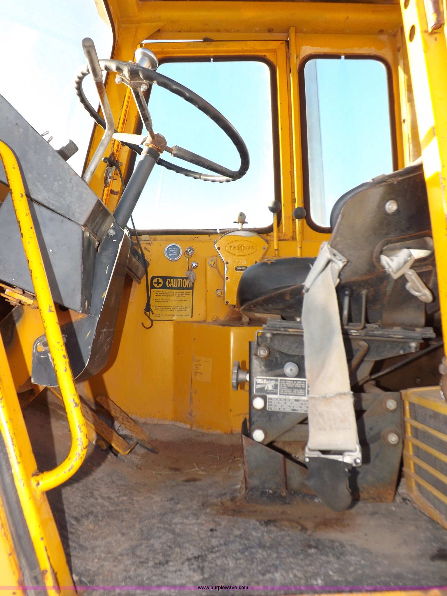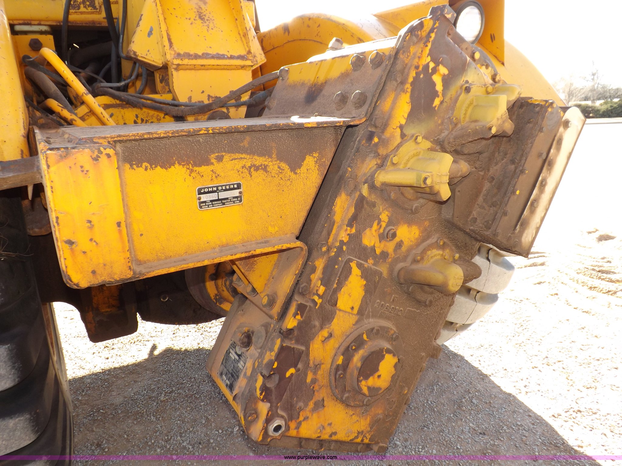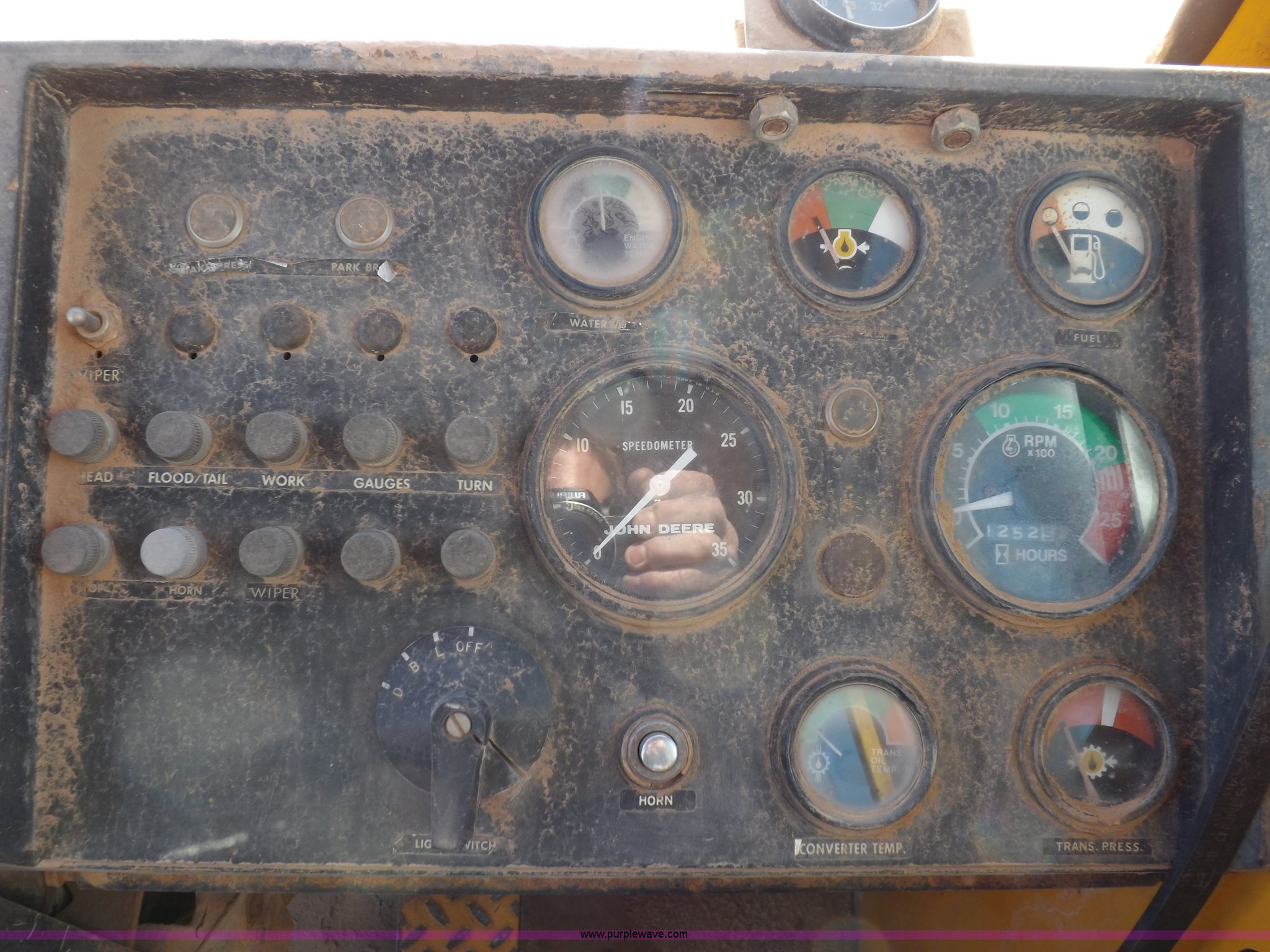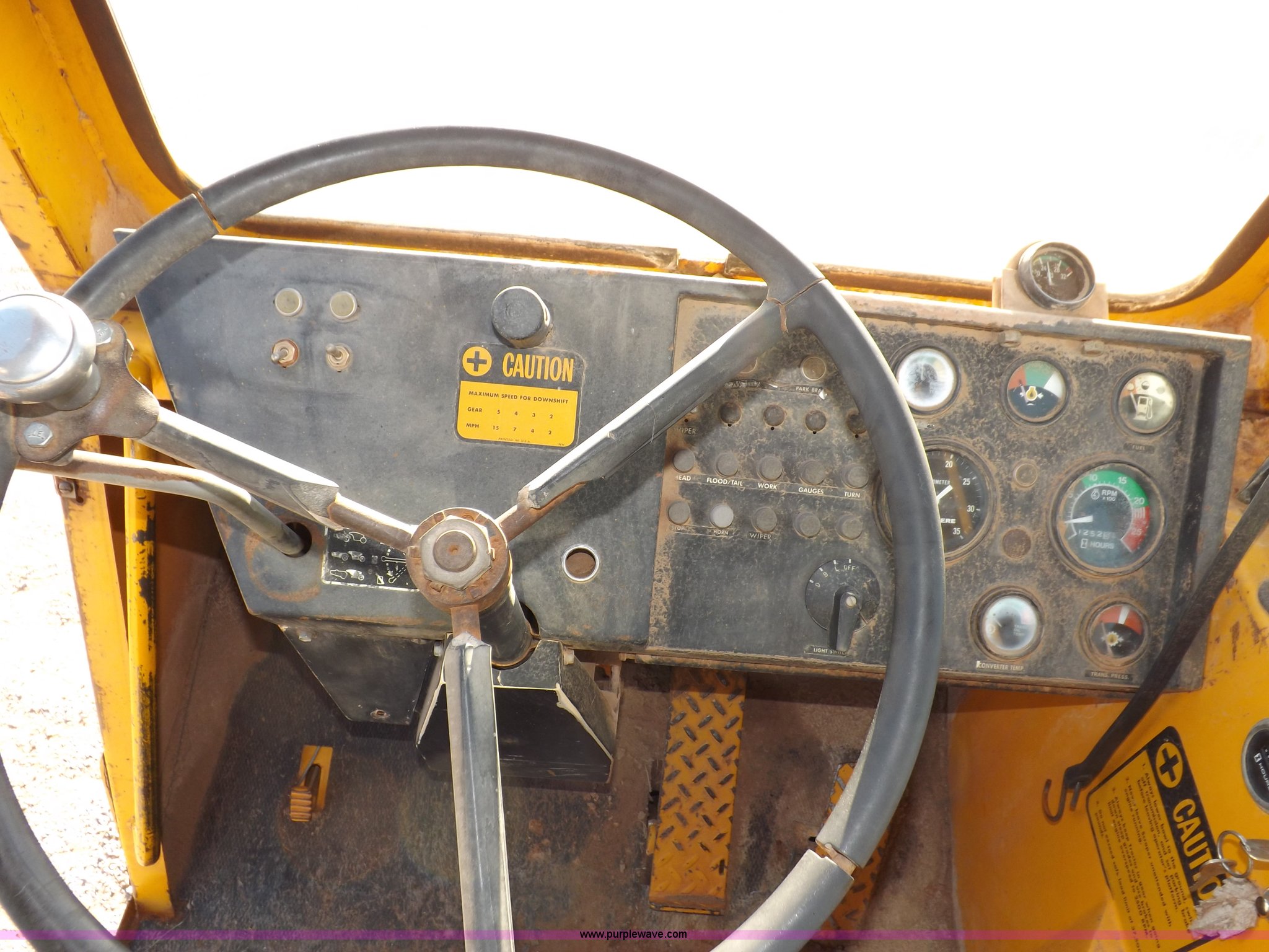 Purple Wave is selling a used Elevating Scraper in Oklahoma. This item is a 1971 John Deere 860 elevating scraper with the following: 1,252 hours on first hour meter, 840 hours on second hour meter, Detroit 6057N six cylinder diesel engine, Powershift transmission, 5F-1R gears, Differential lock, Heat, Air suspension seat, 15 cu. yd. capacity, 8'9"W three section reversible cutting edge, Hydraulic lift, gate, and elevator controls, Elevator reverse, Hydraulic brakes, 16.5-25 tires, Recently replaced three tires, 42,300 lbs. base operating weight, 36'L x 9.5'W x 11'2"H overall, Recently replaced batteries, Turn cylinder mounts repaired, Ritto bowl arm repaired, Elevator chains not in sync, Lights damaged, Cracked door glass, Rust, Sheet metal damage, Serial 000555T